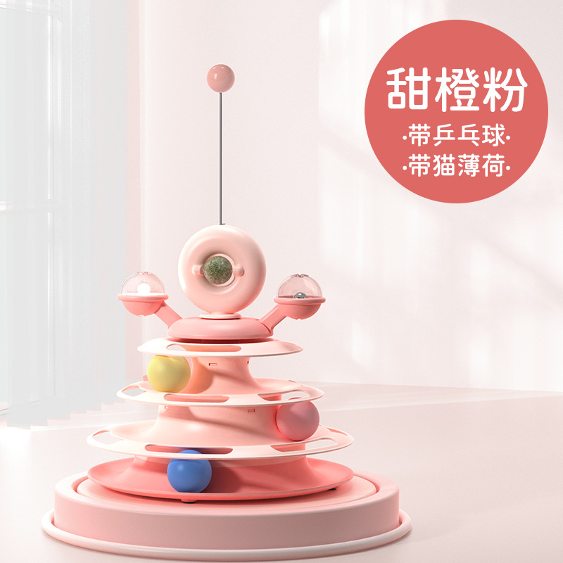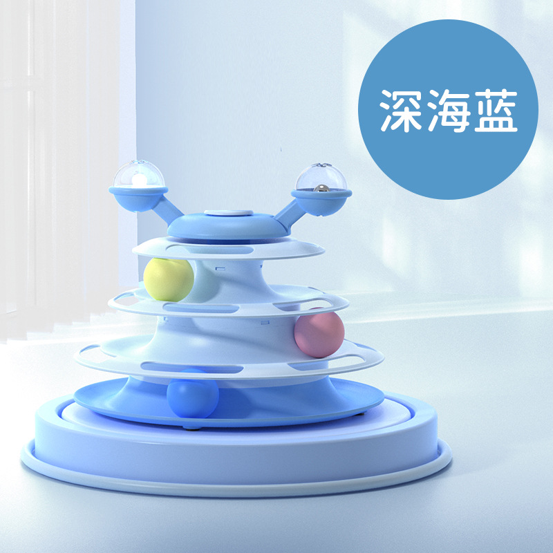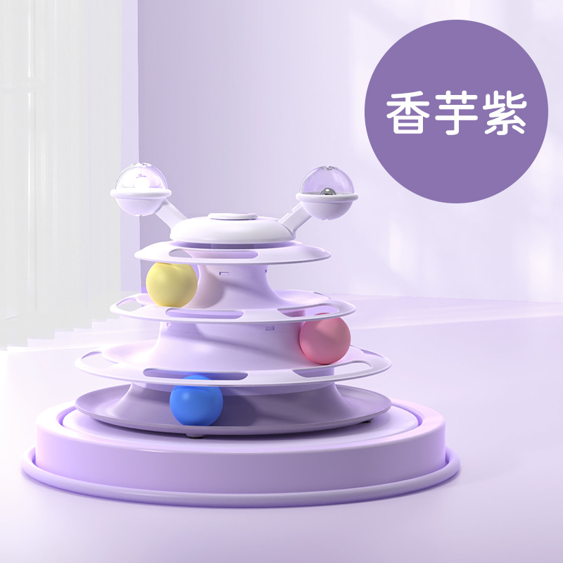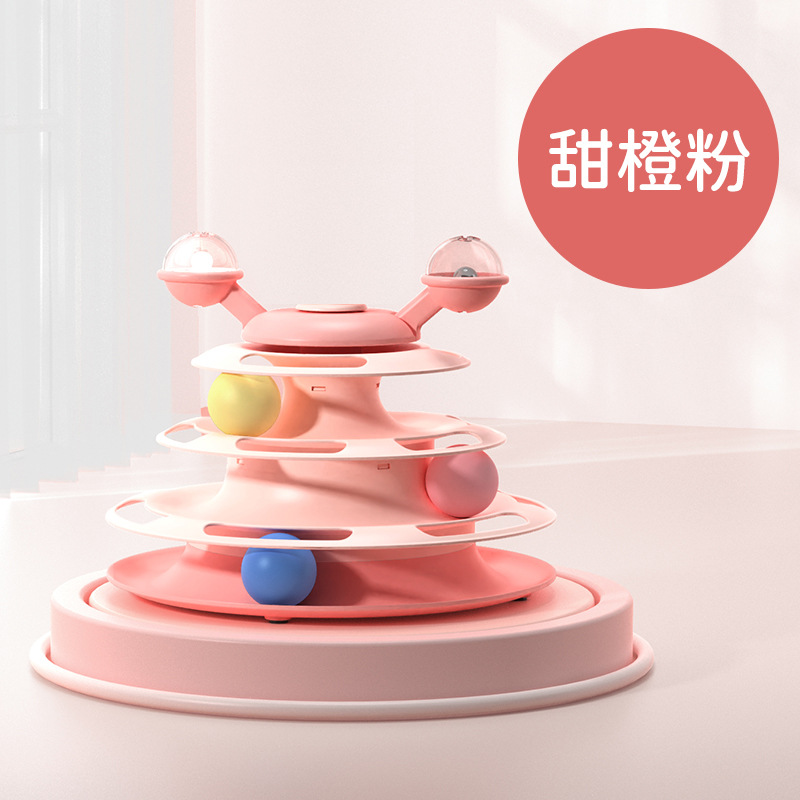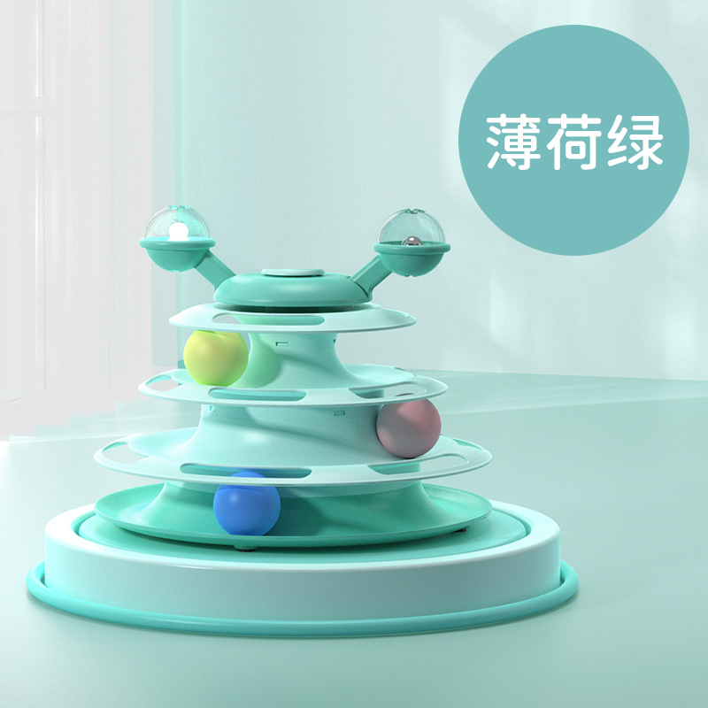 猫玩具四层轨道猫转盘羽毛逗猫棒太空塔游戏盘宠物用品亚马逊爆款