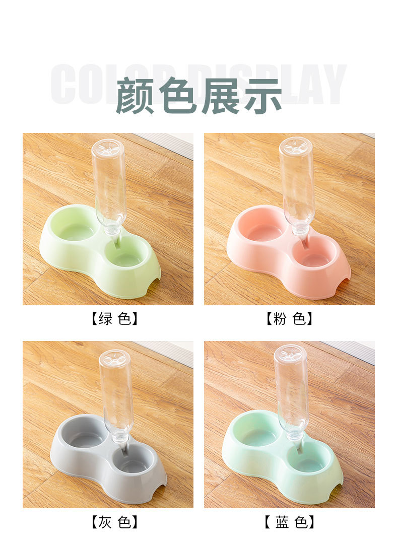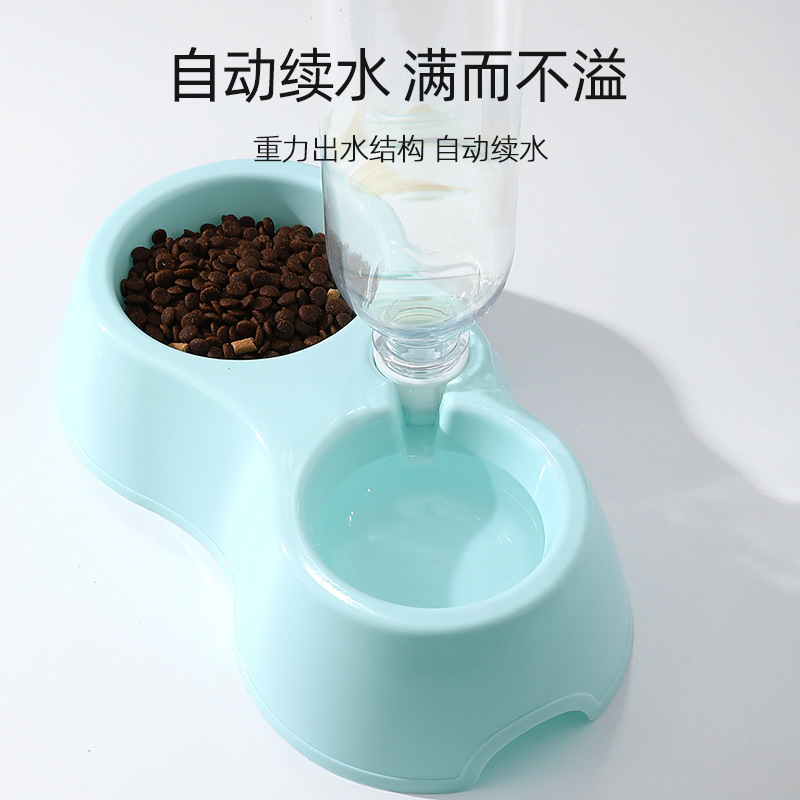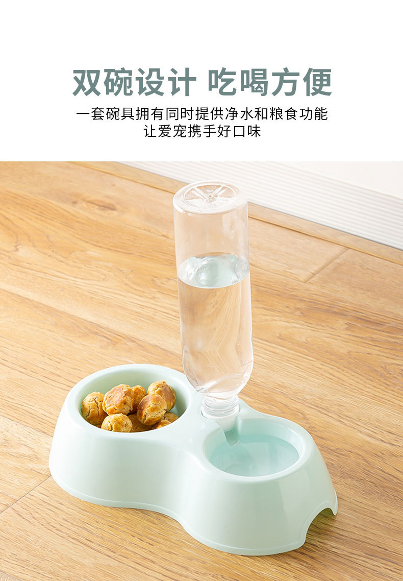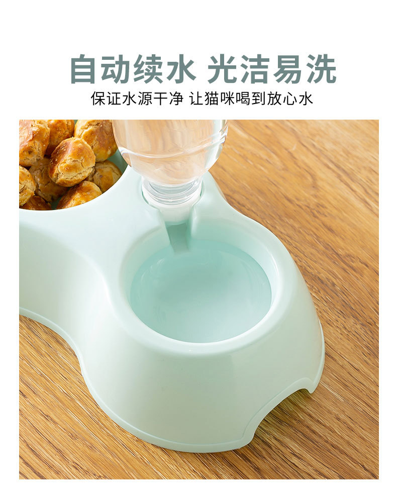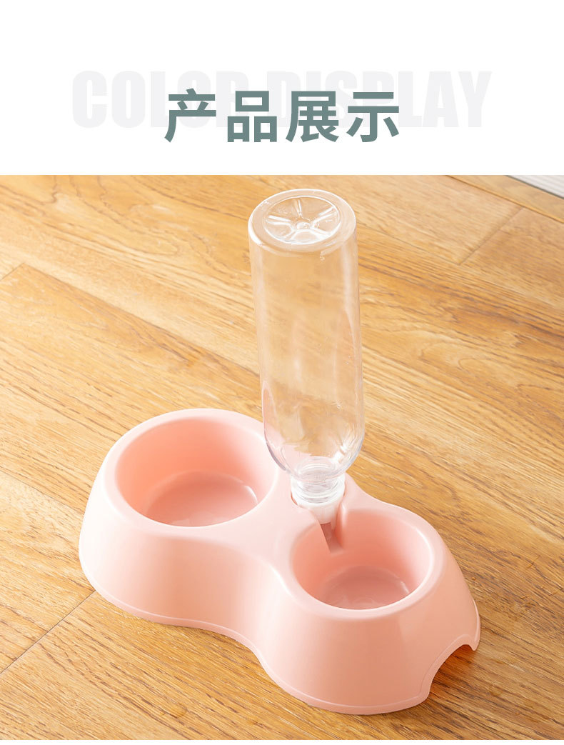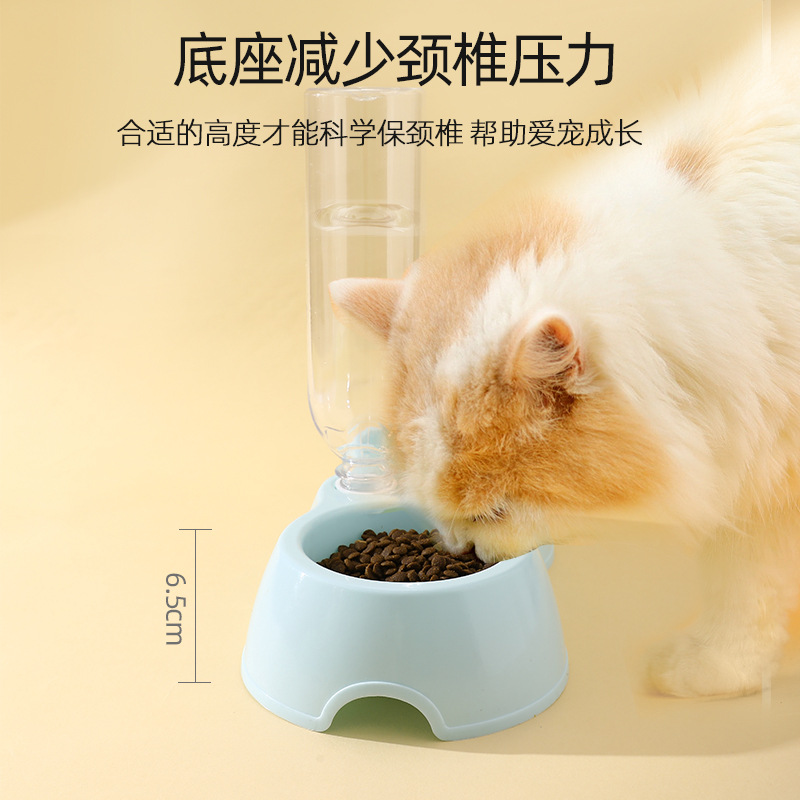 工厂现货外贸爆款宠物双碗带水瓶圆形塑料猫咪喂水喂食一体碗猫碗