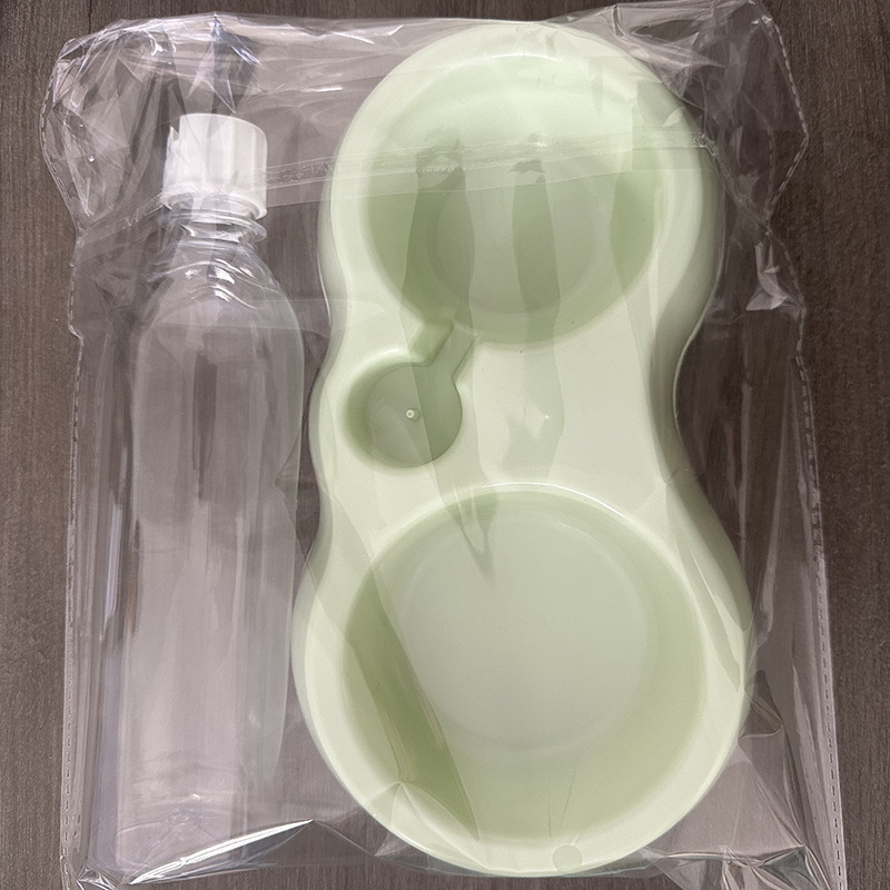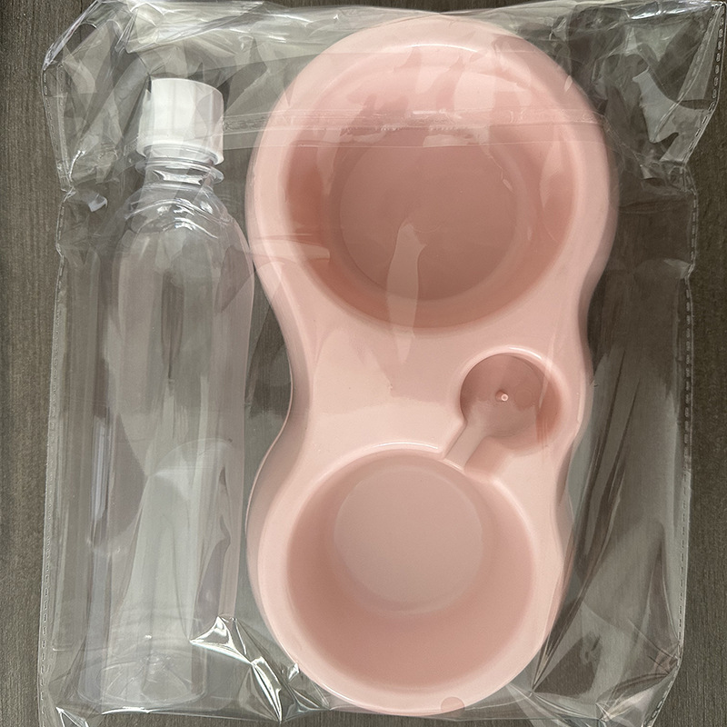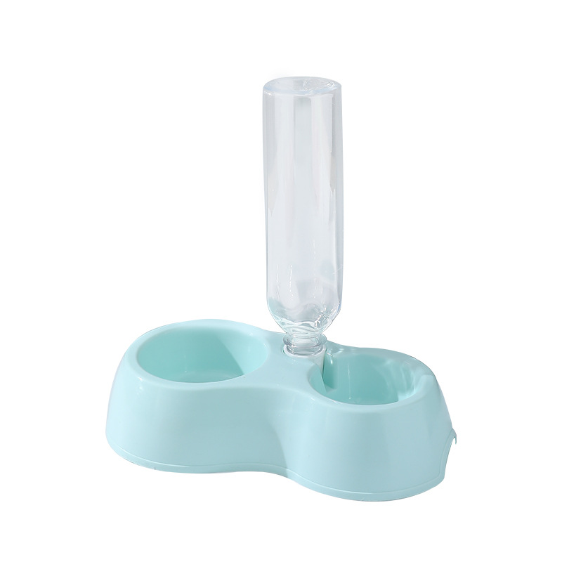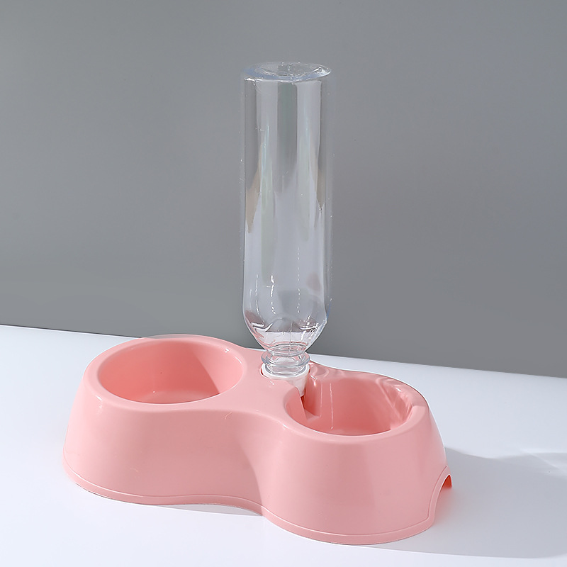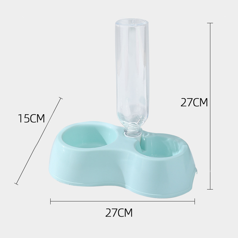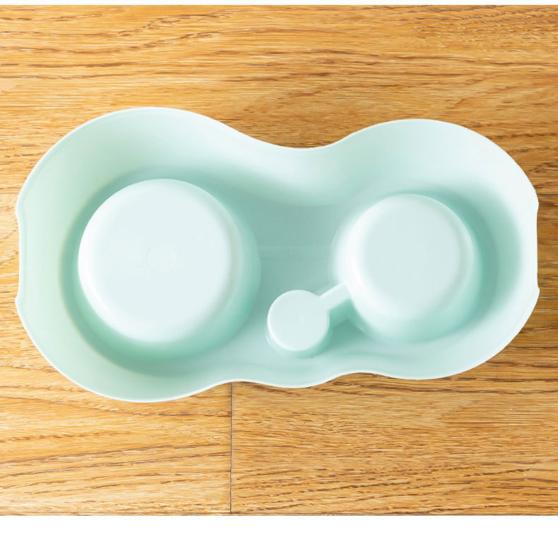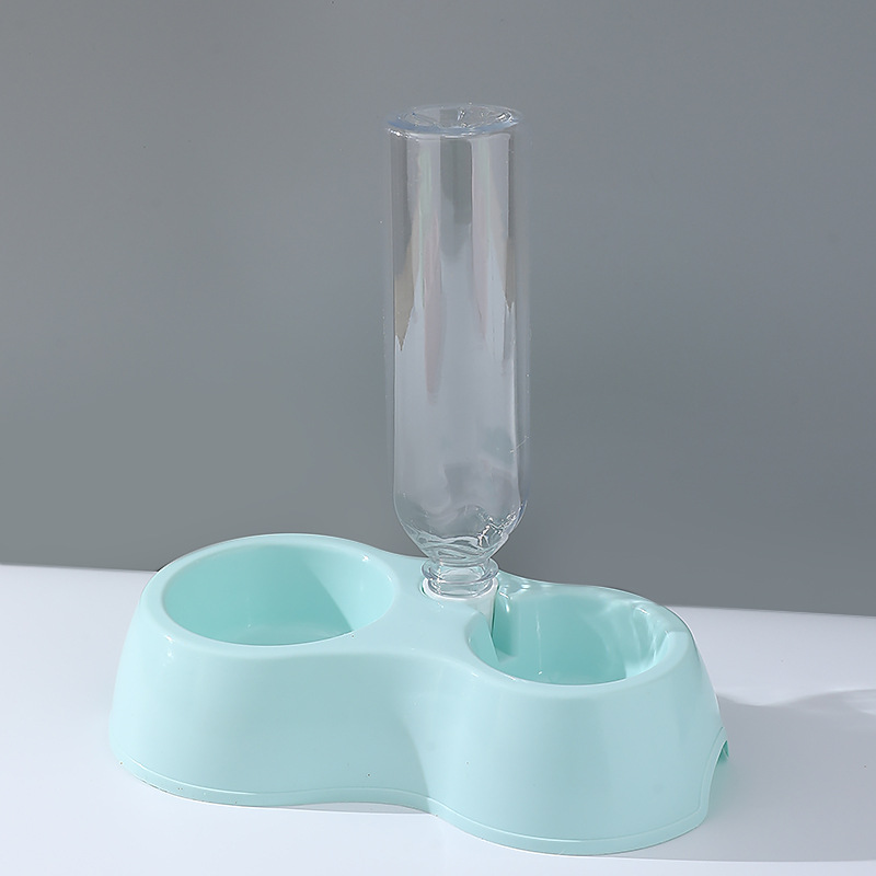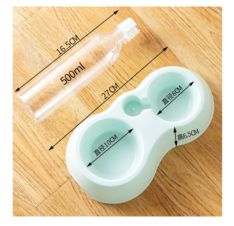 工厂现货外贸爆款宠物双碗带水瓶圆形塑料猫咪喂水喂食一体碗猫碗
