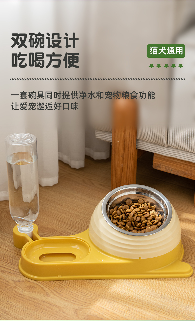 新款不锈钢狗碗狗盆慢食碗宠物饮水器猫粮双碗防打翻水粮一体猫碗