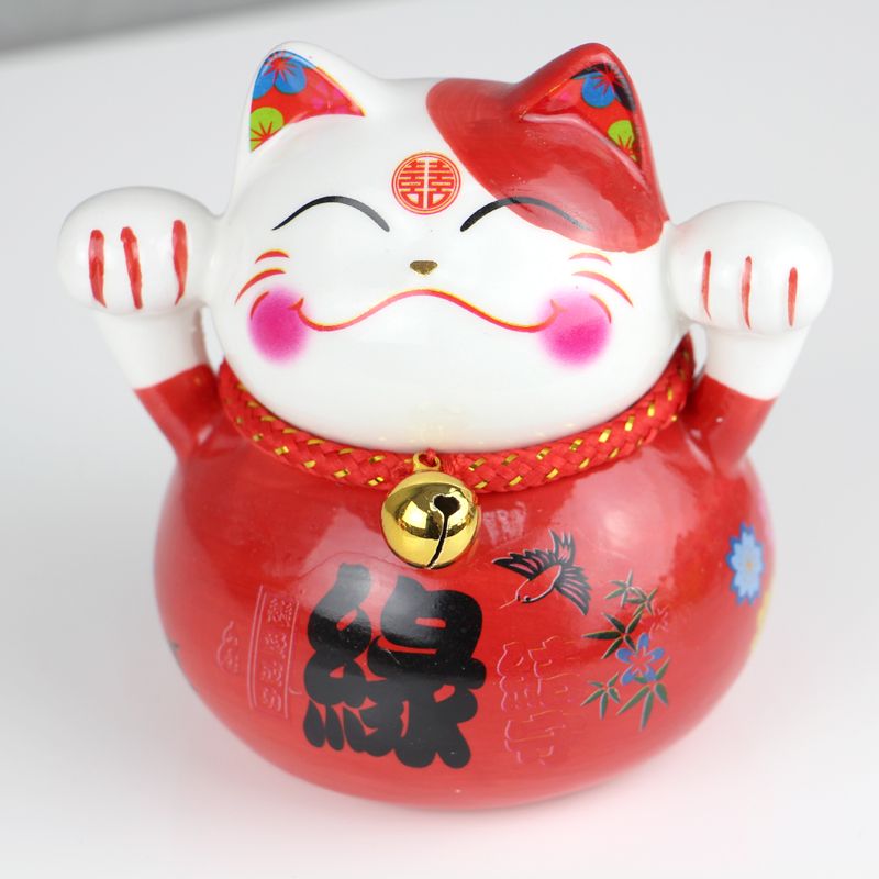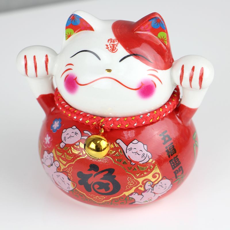 招财猫小摆件卧室陶瓷创意办公室开业礼品可爱招财礼物家居装饰品