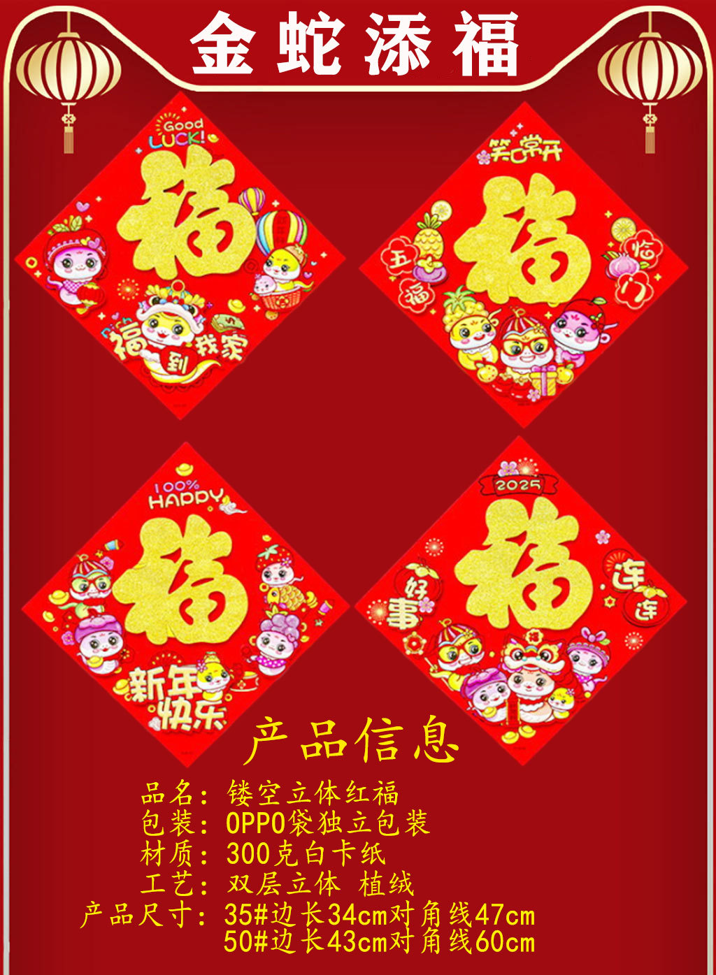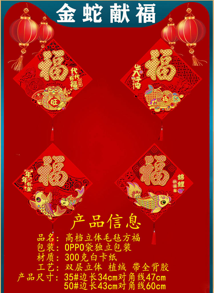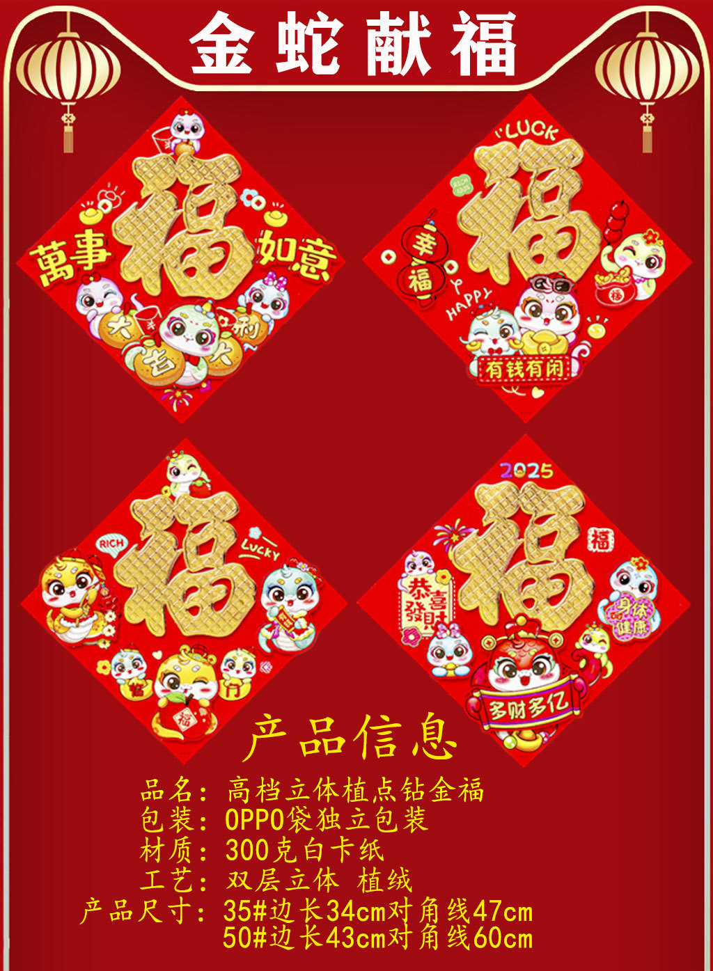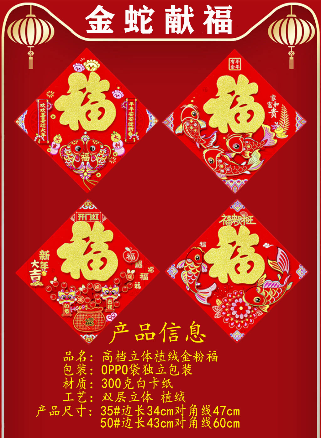 蛇年新款高档植绒立体生肖金粉福字门贴 新年卡通春节装饰品批发