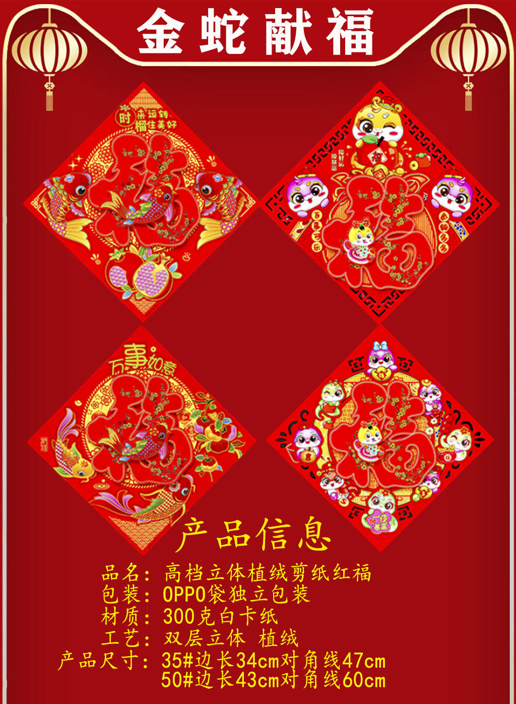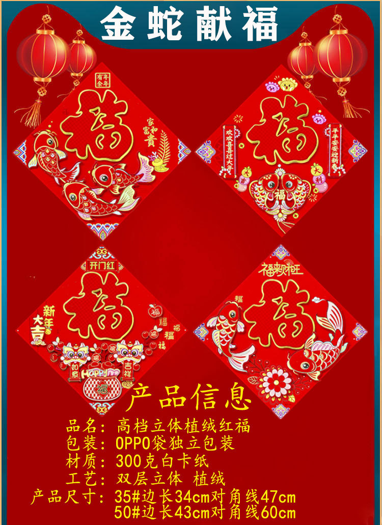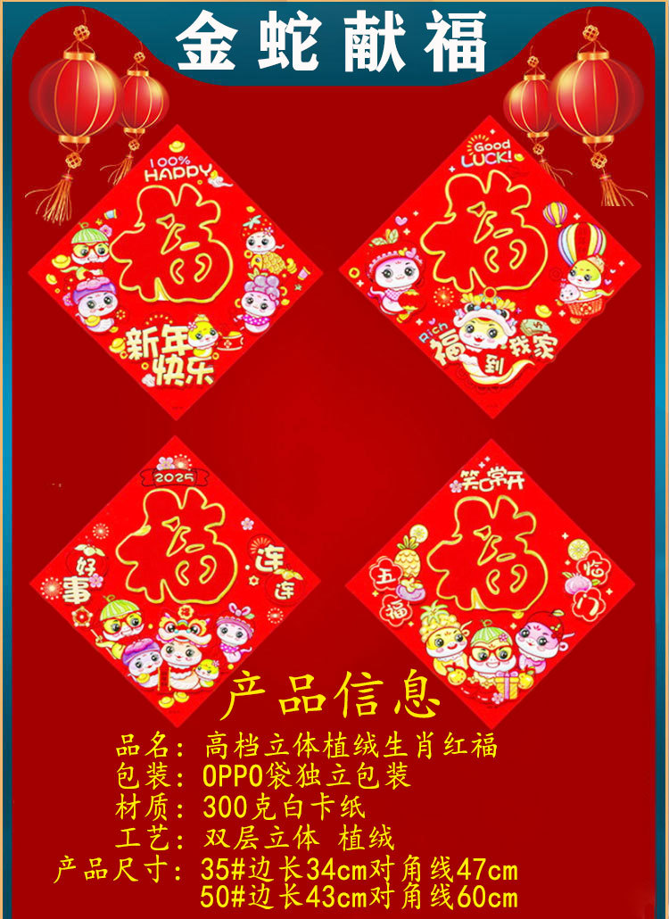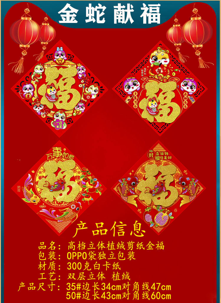 蛇年新款高档植绒立体生肖金粉福字门贴 新年卡通春节装饰品批发