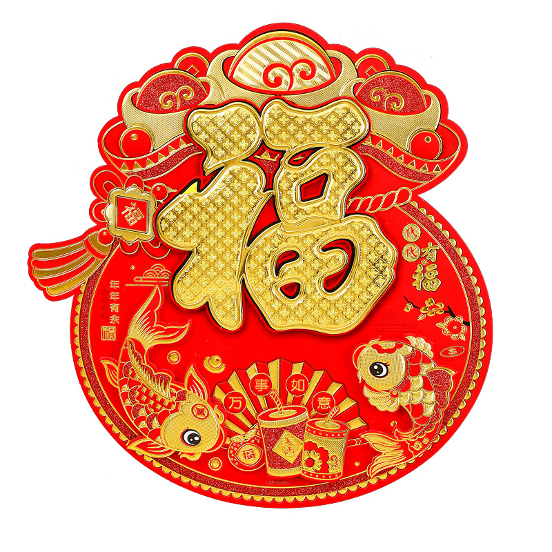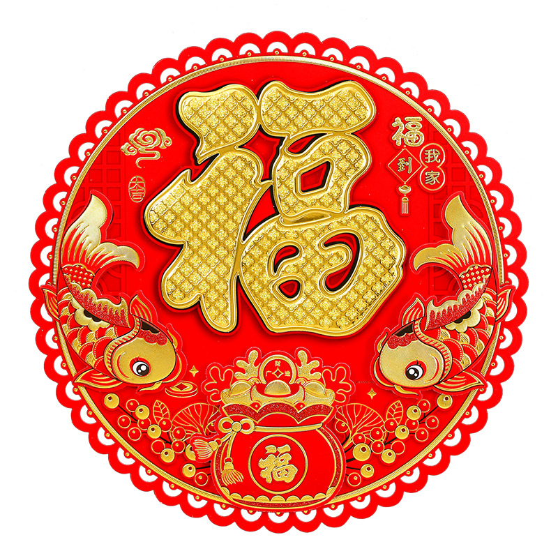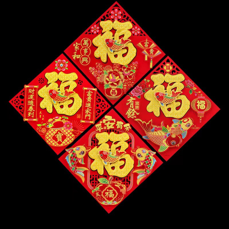 2025蛇年新款立体植绒福字贴全背胶自粘福字 春节装饰厂家批发