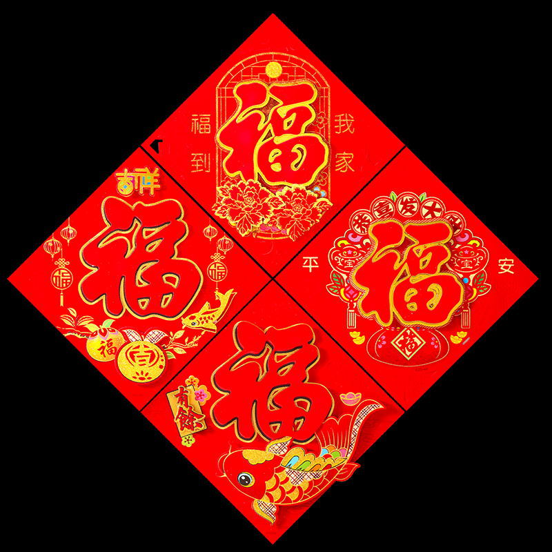 高档植绒平面福,剪纸窗花 等等年货用品