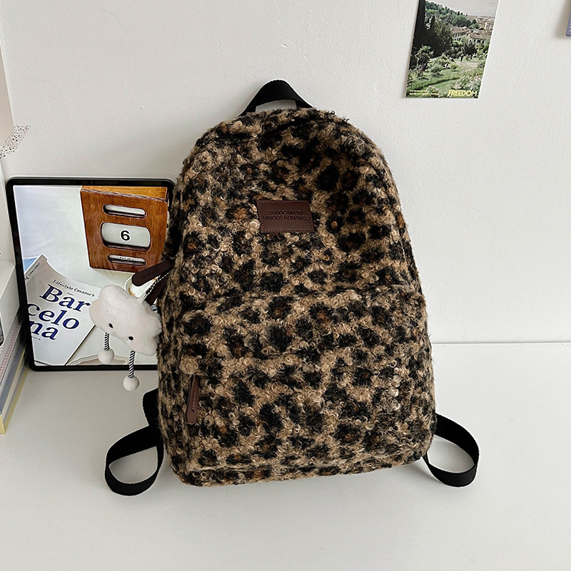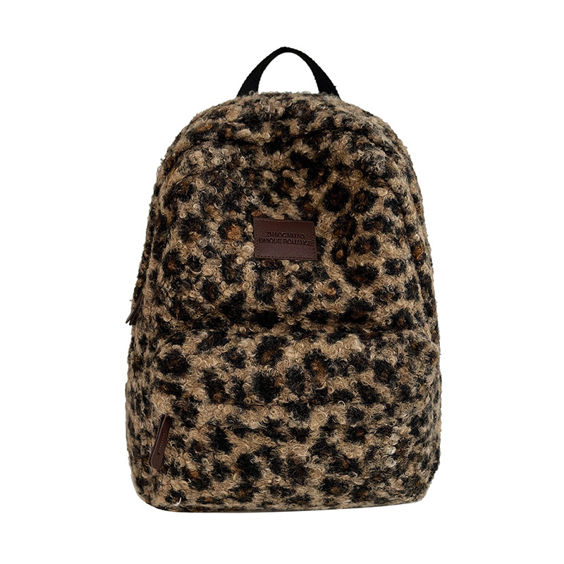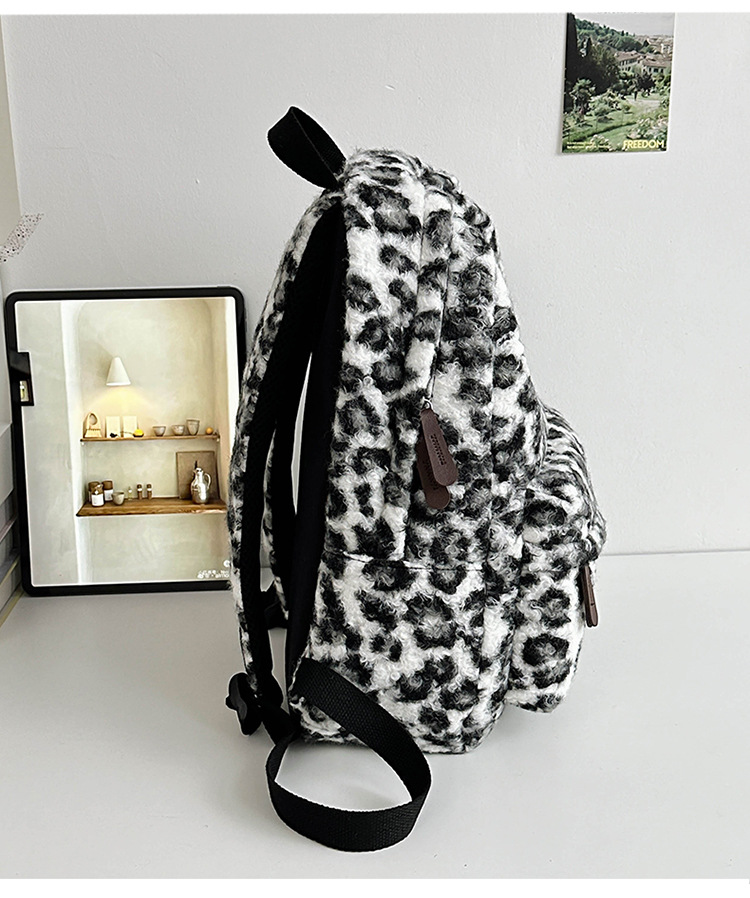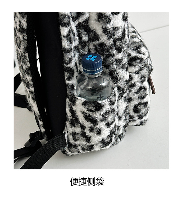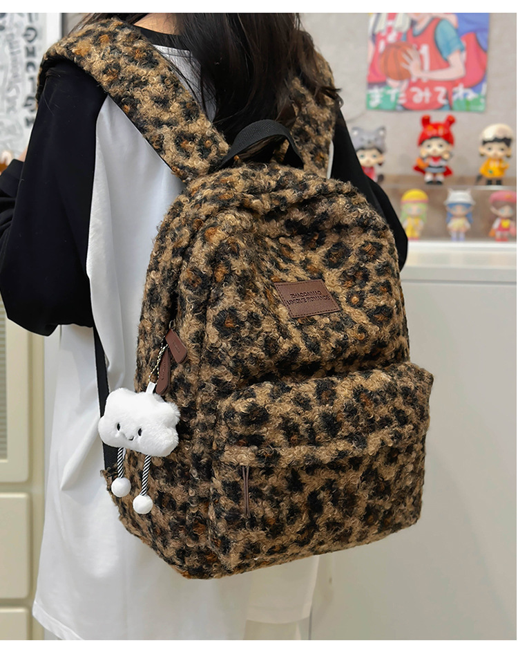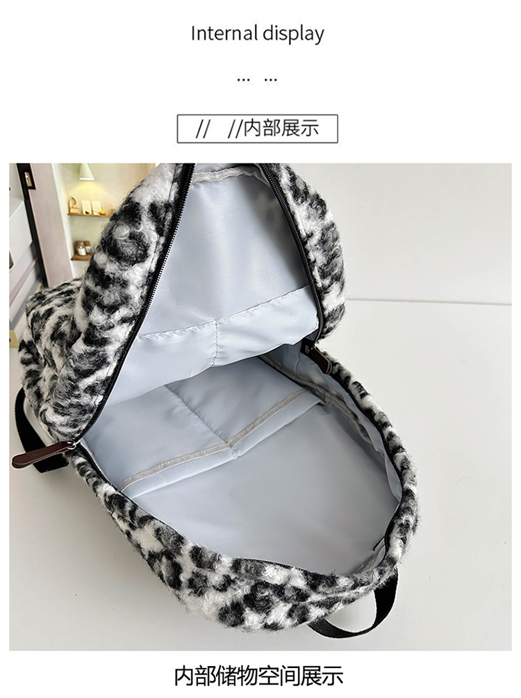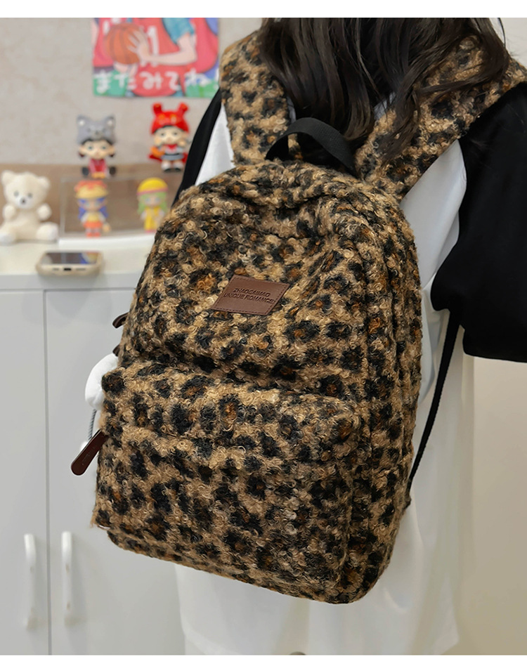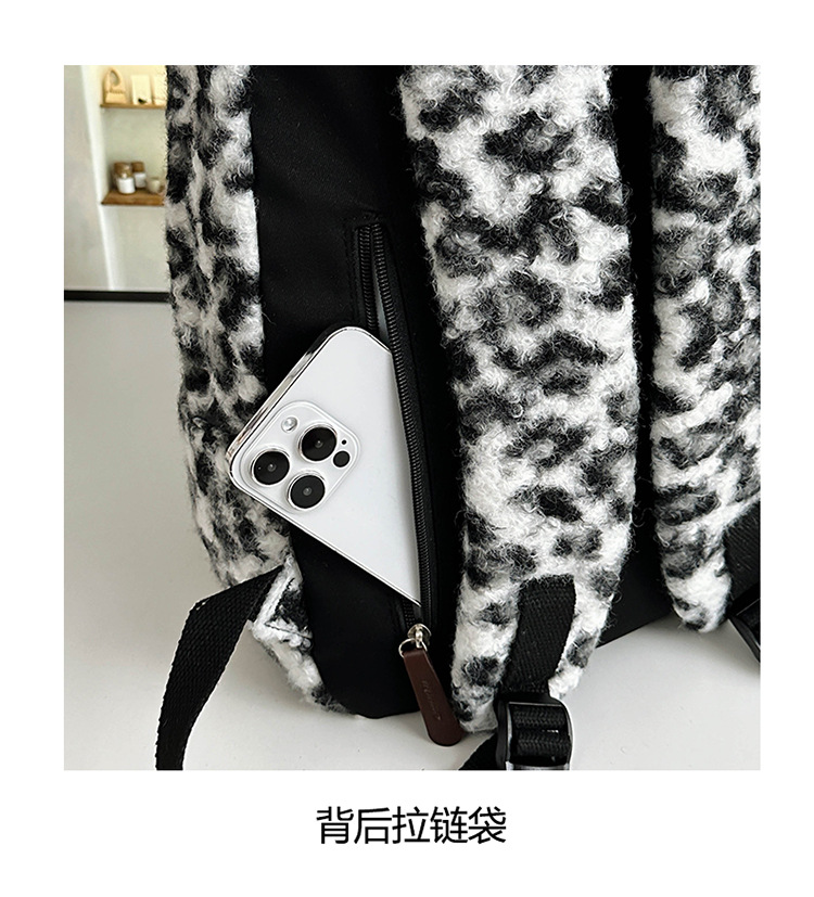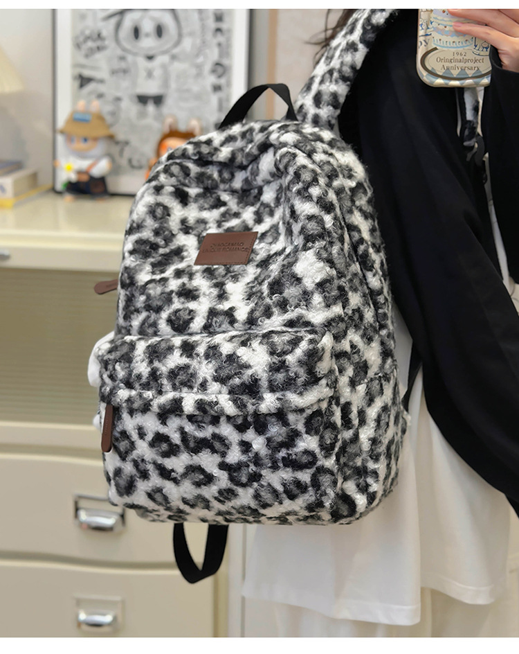 毛绒豹纹双肩包女2024背包学生通勤书包