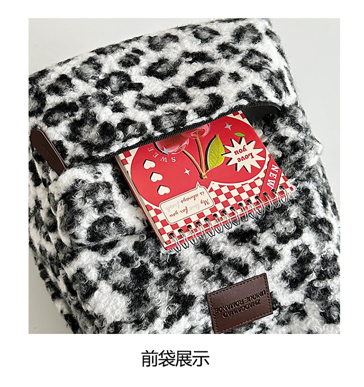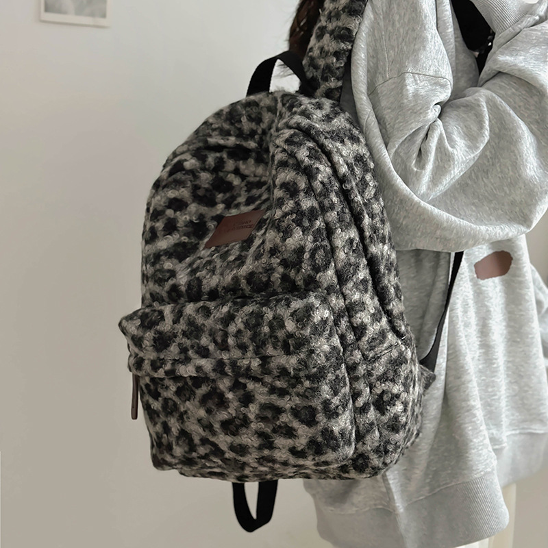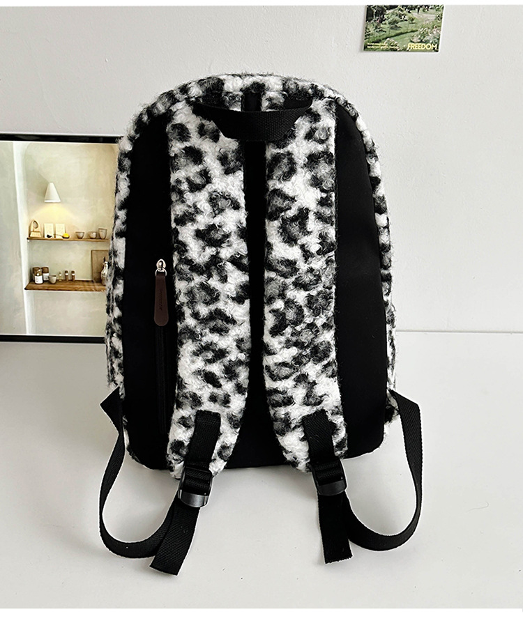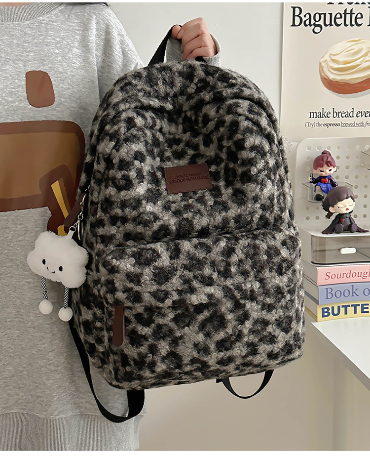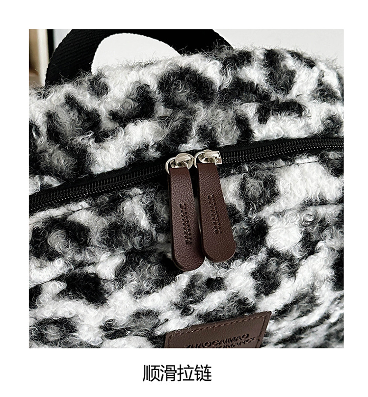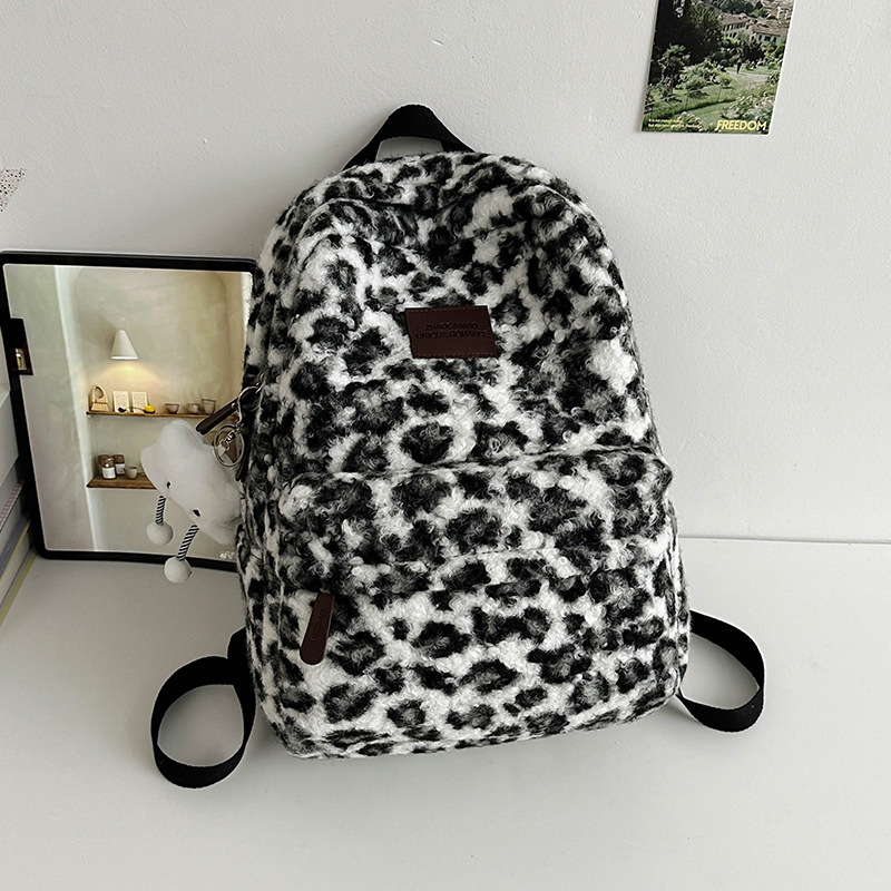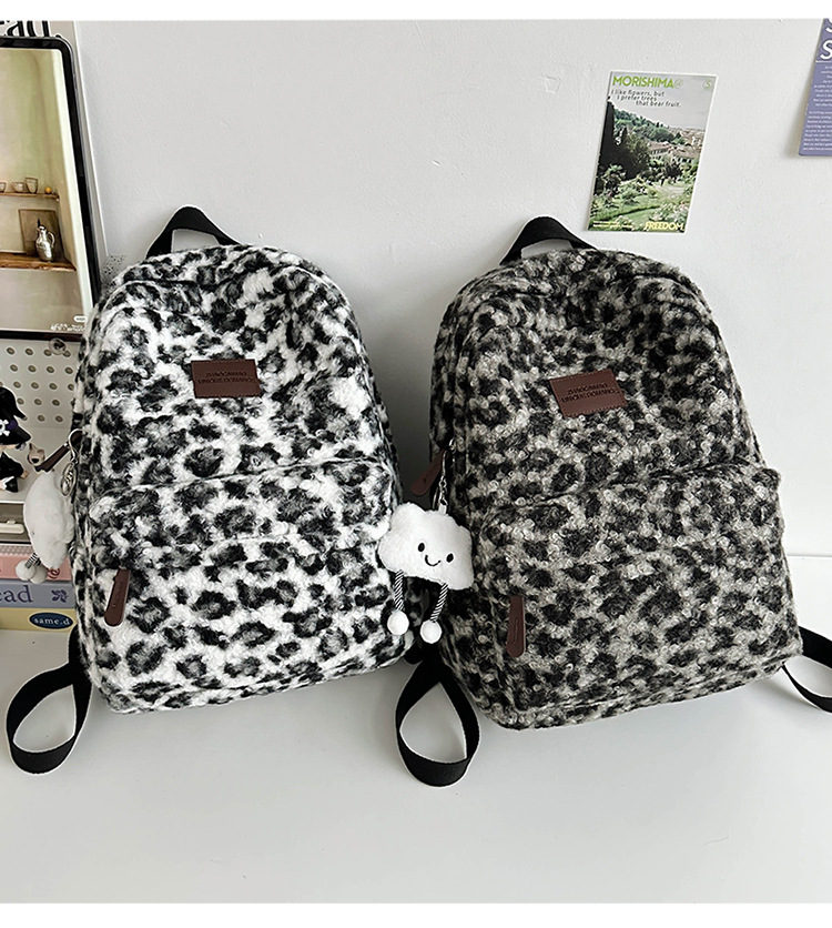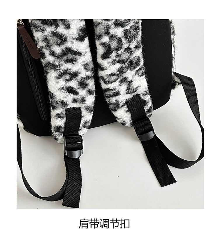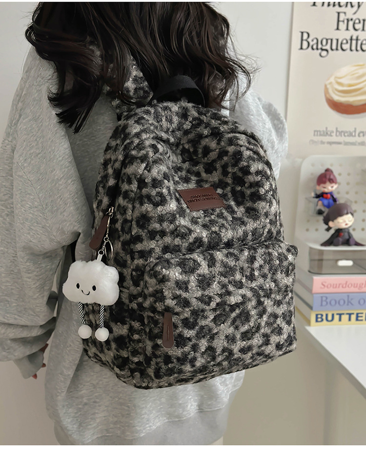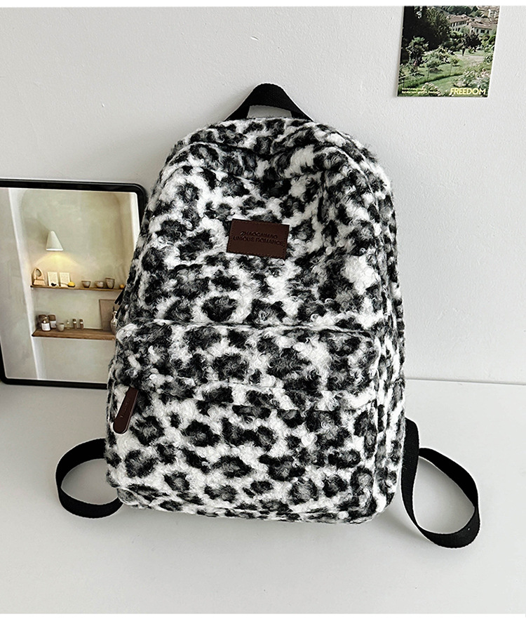 毛绒豹纹双肩包女2024背包学生通勤书包