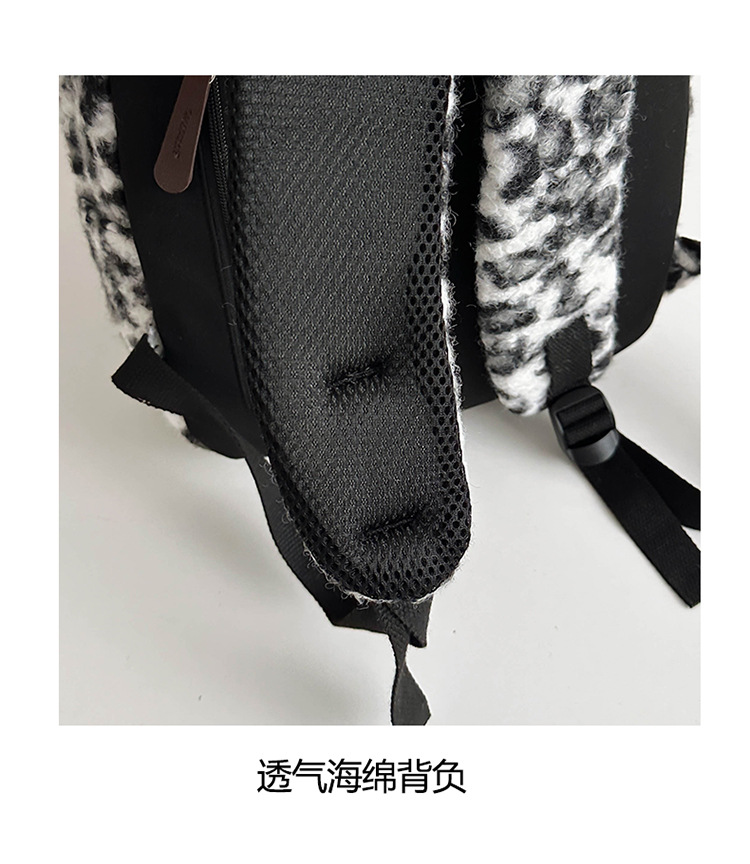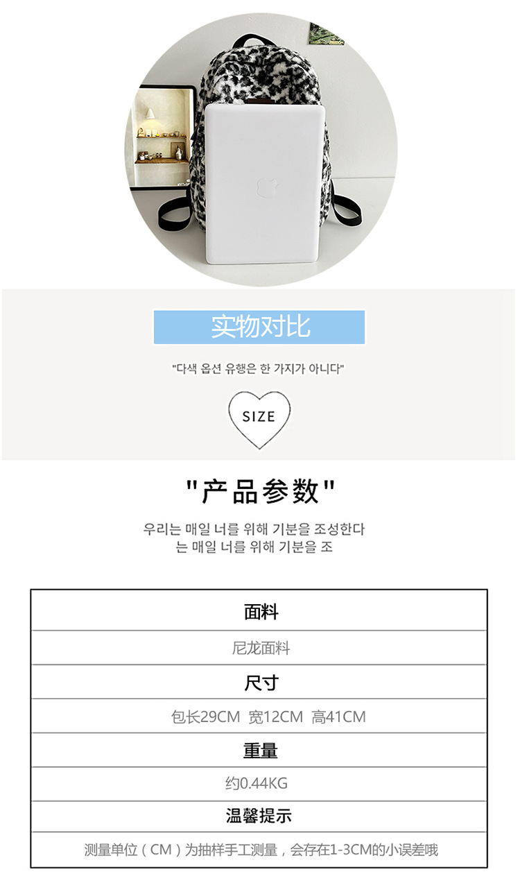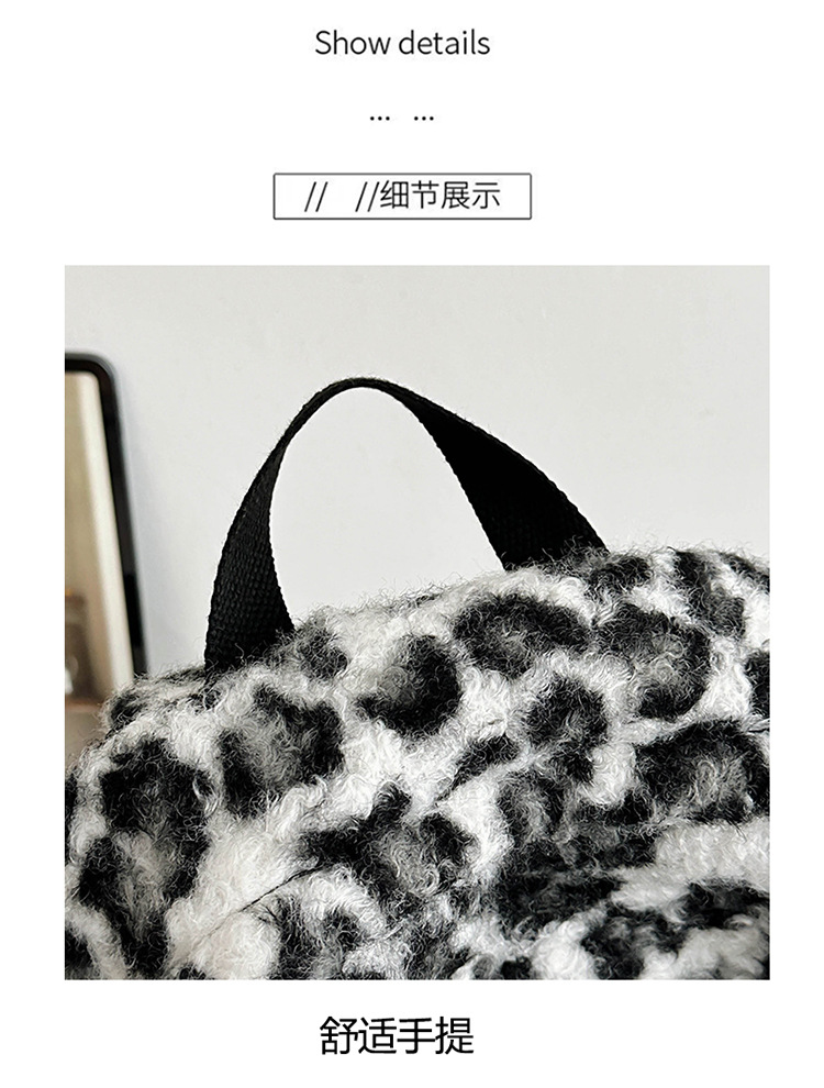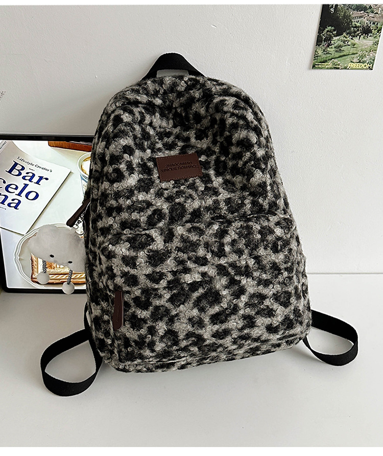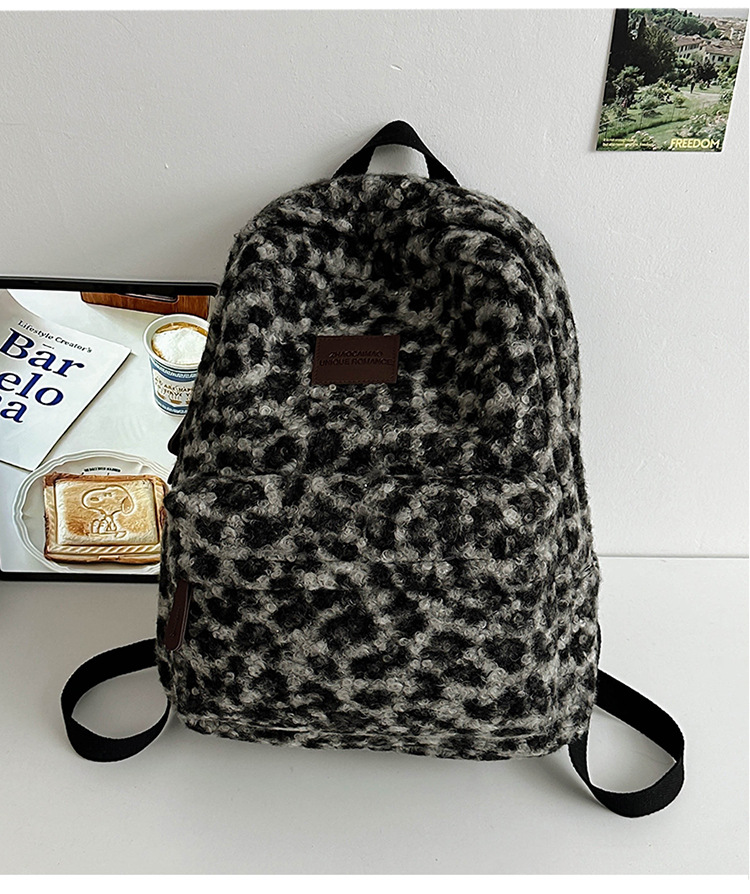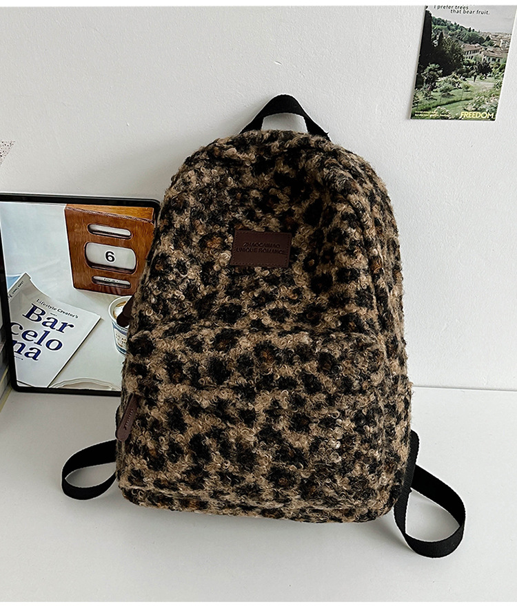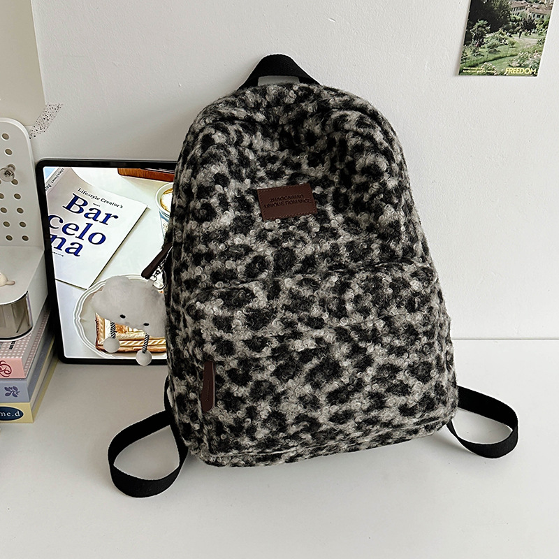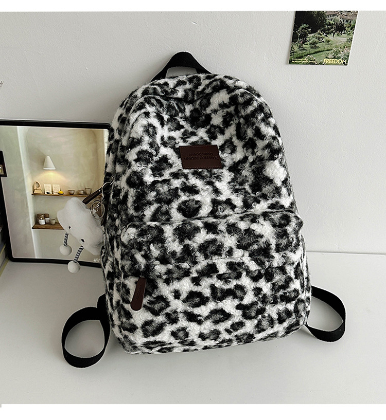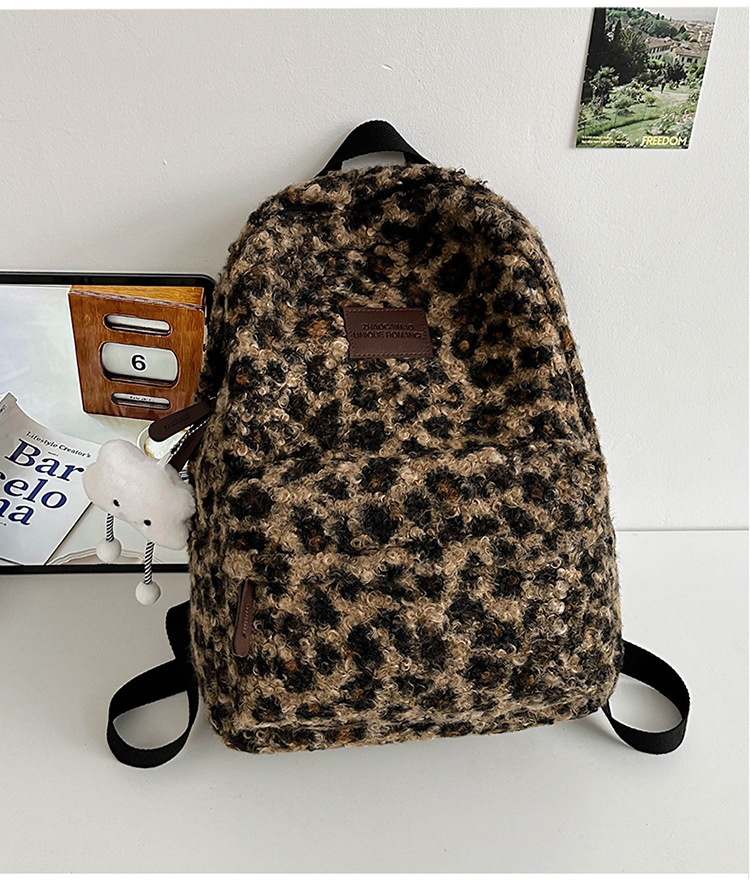 毛绒豹纹双肩包女2024背包学生通勤书包