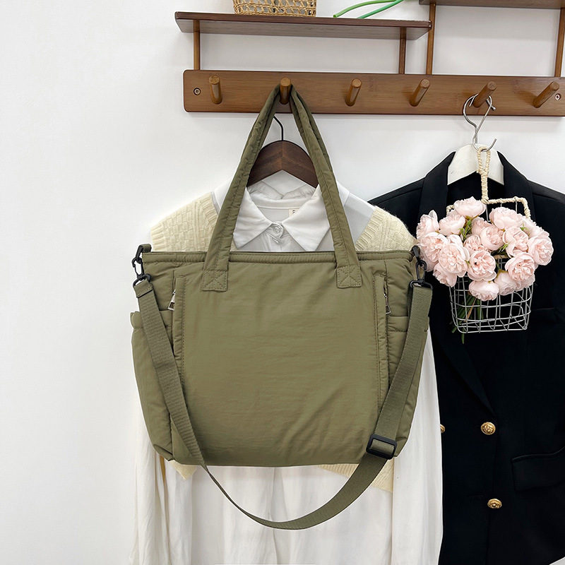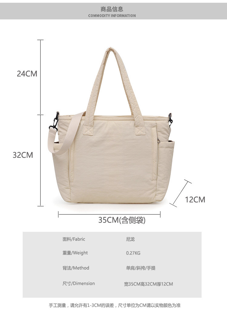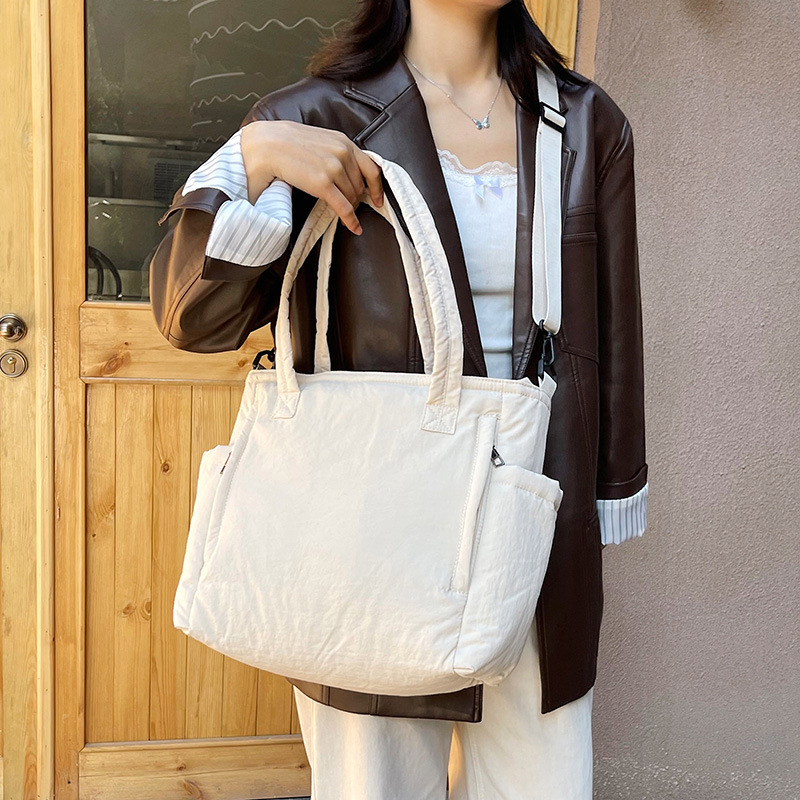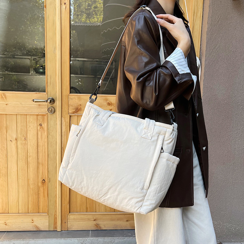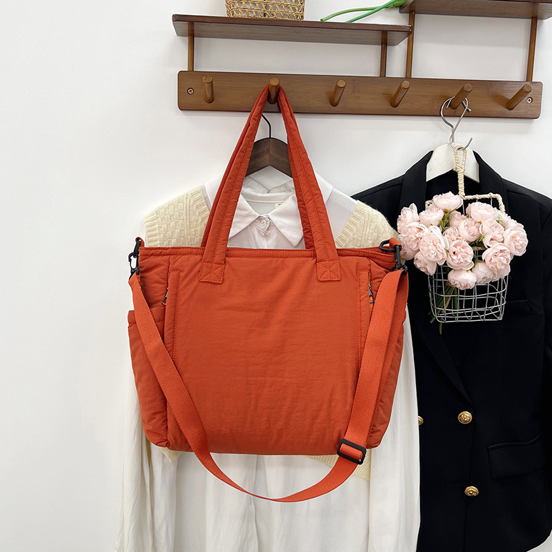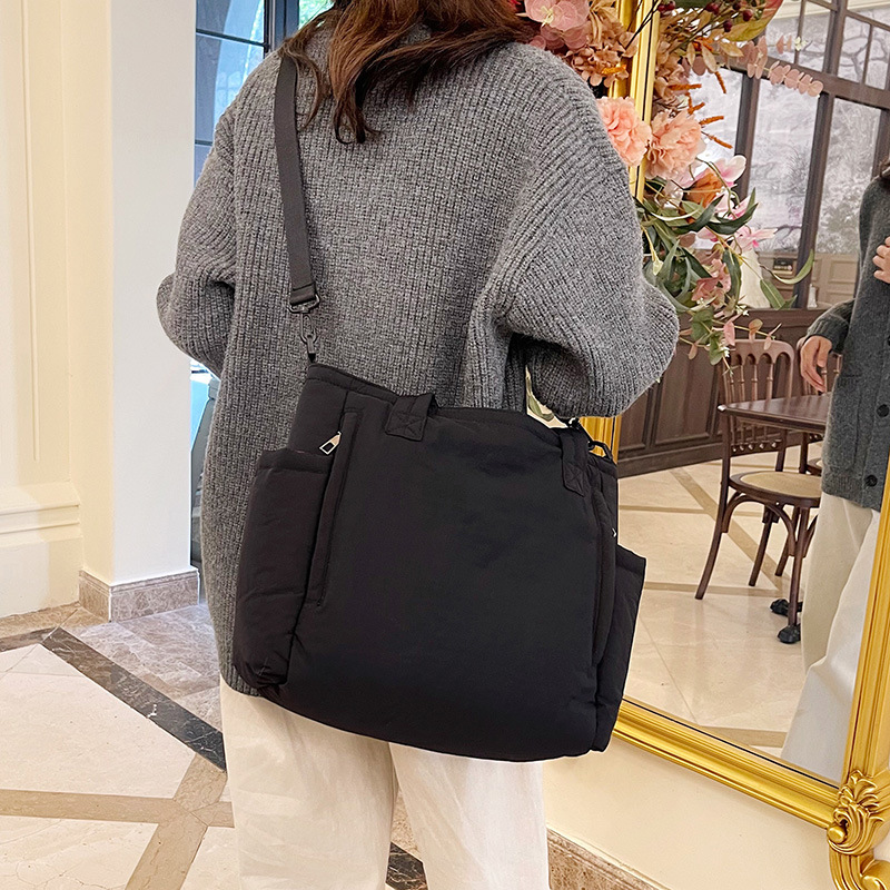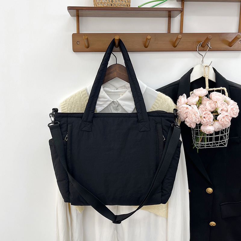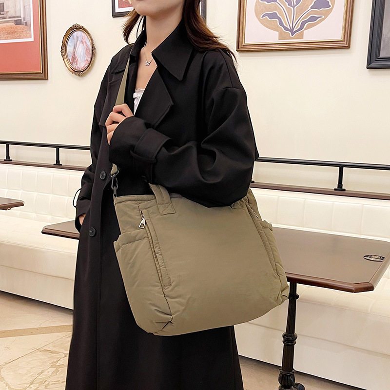 通勤托特包2024新款充棉软糯单肩包棉服斜挎手提包