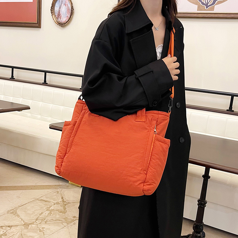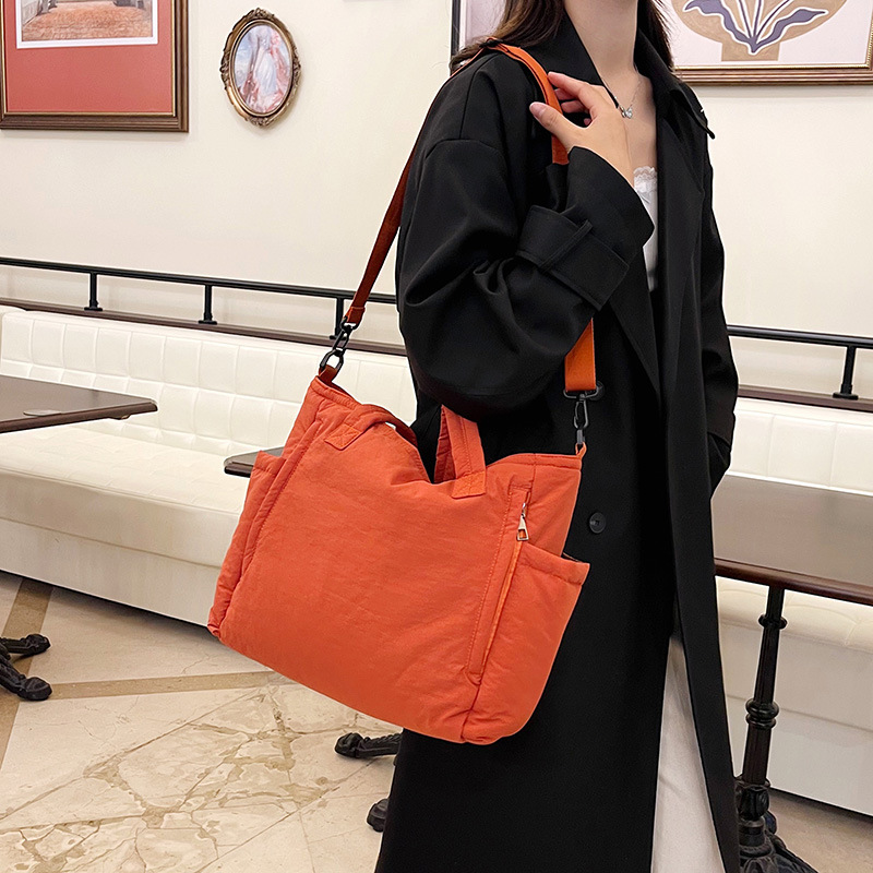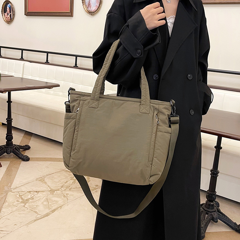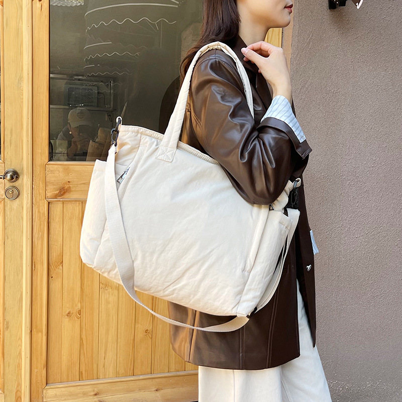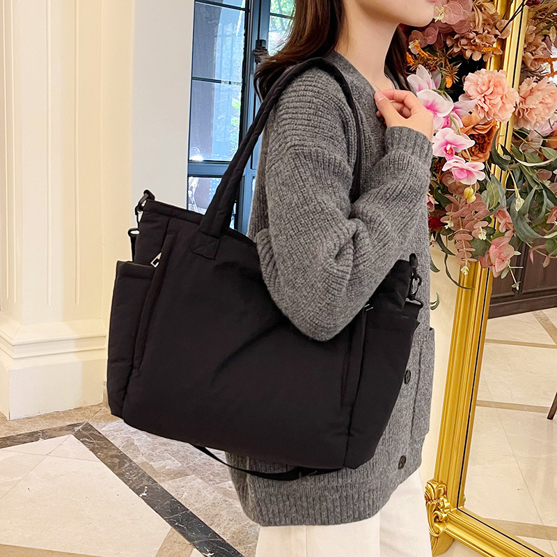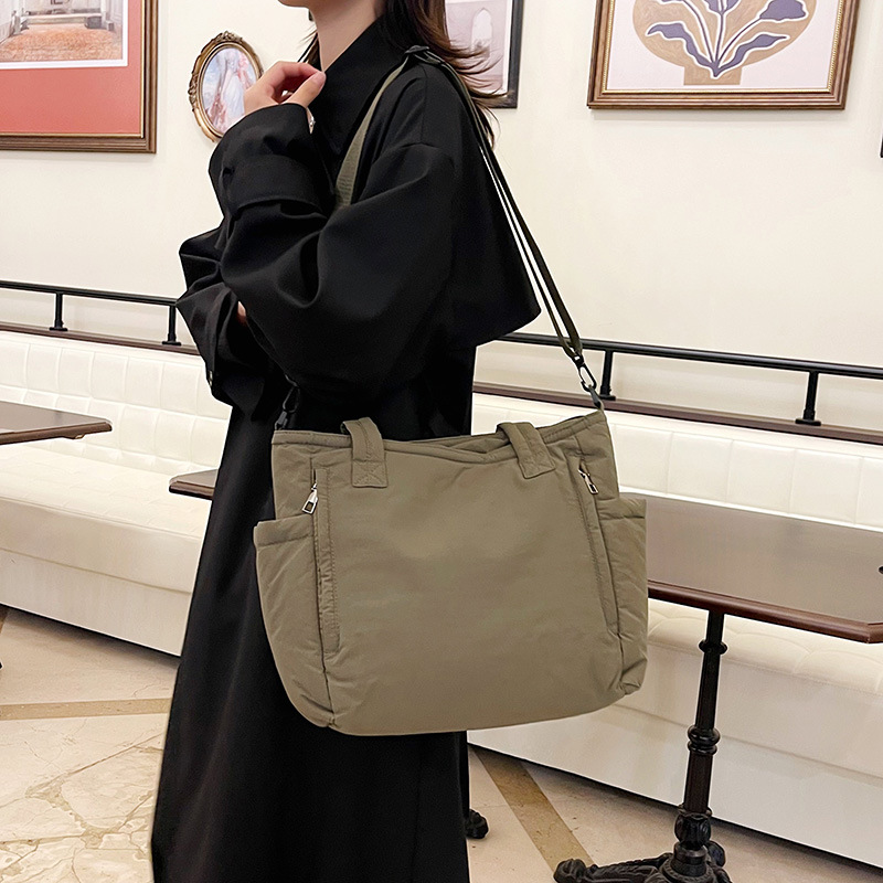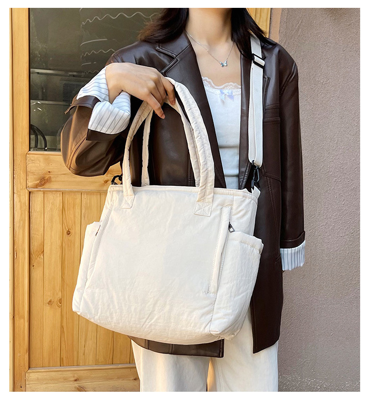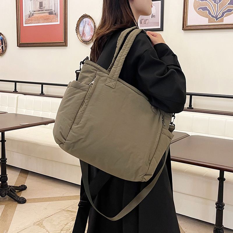 通勤托特包2024新款充棉软糯单肩包棉服斜挎手提包