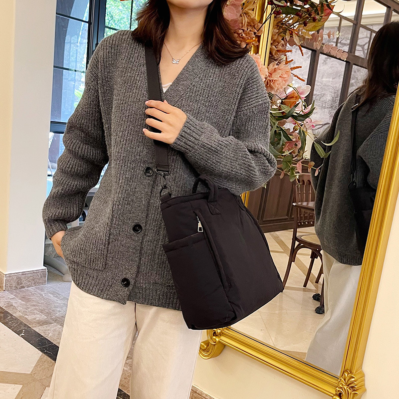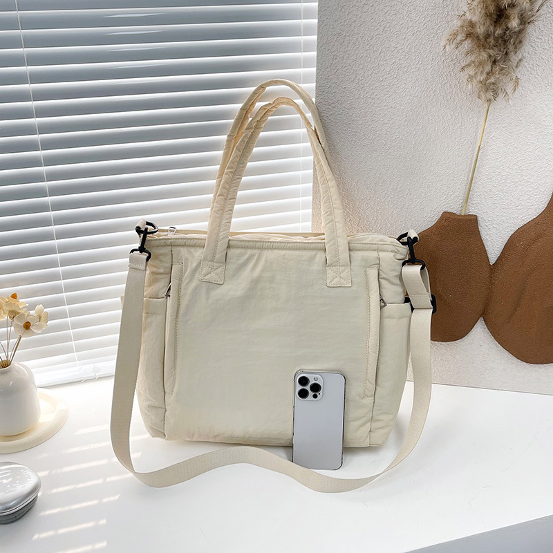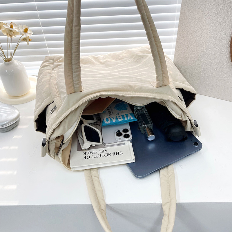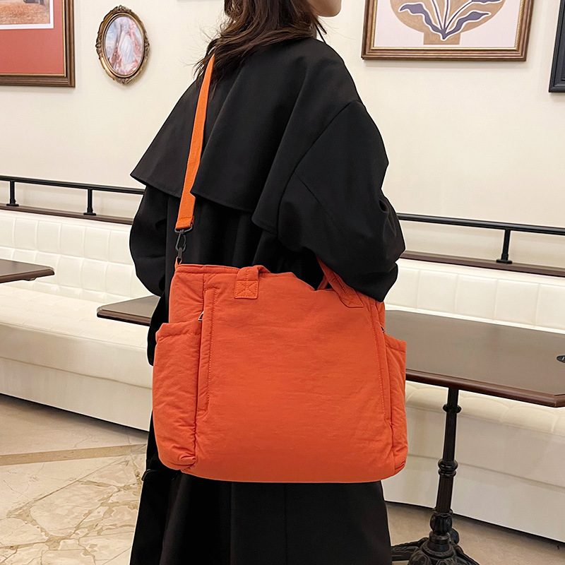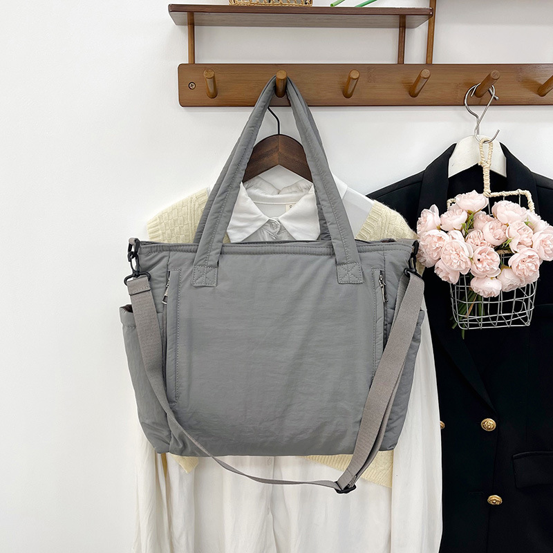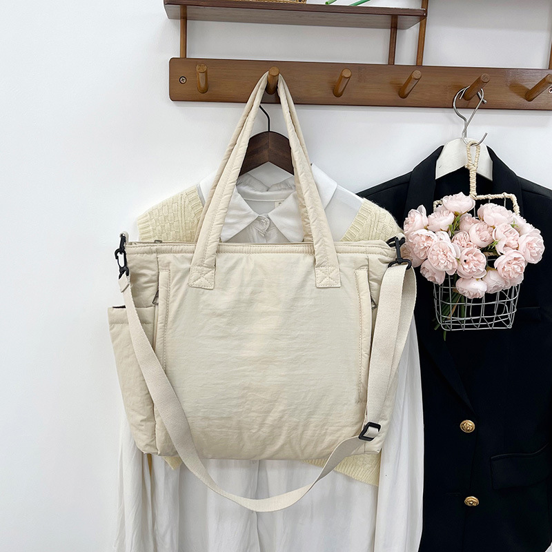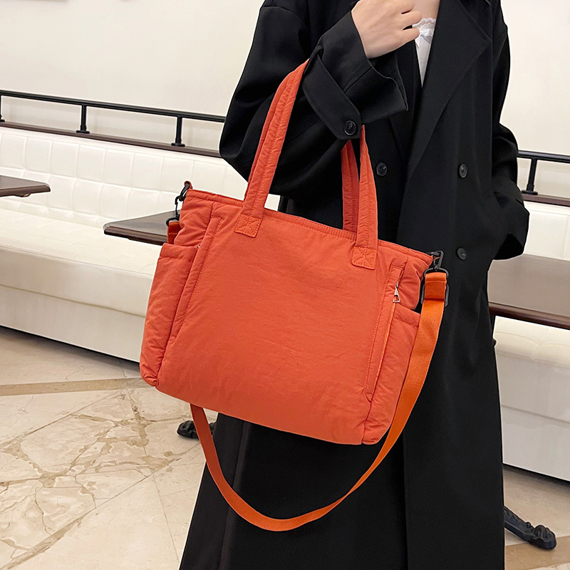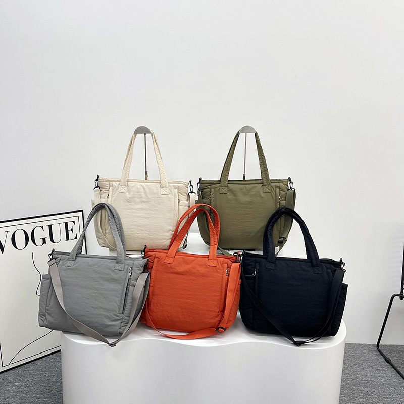 通勤托特包2024新款充棉软糯单肩包棉服斜挎手提包