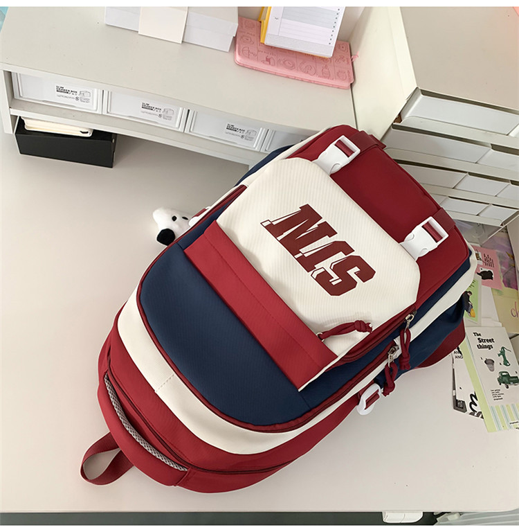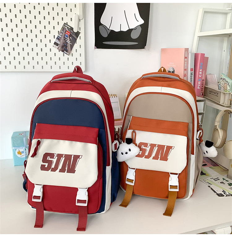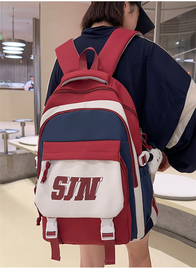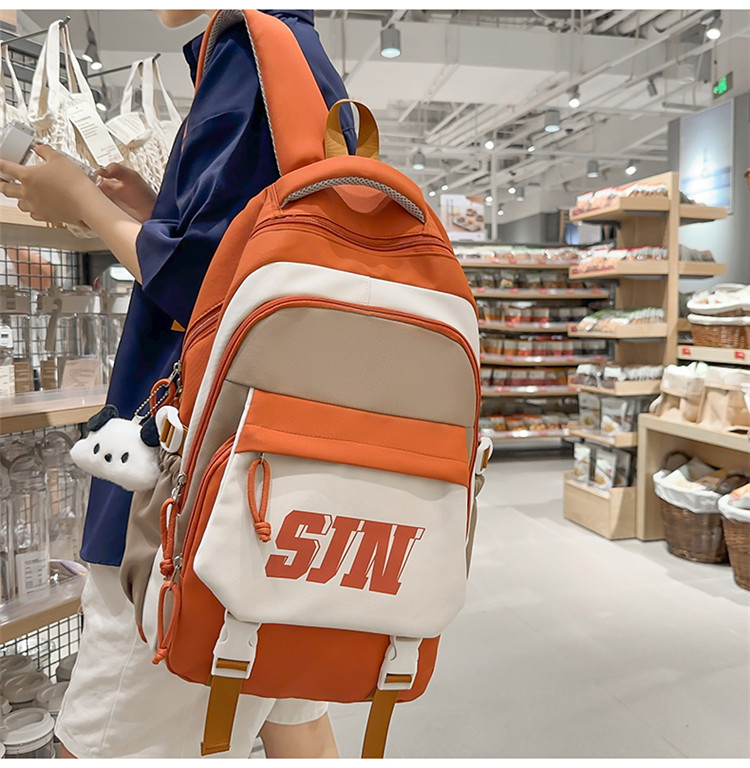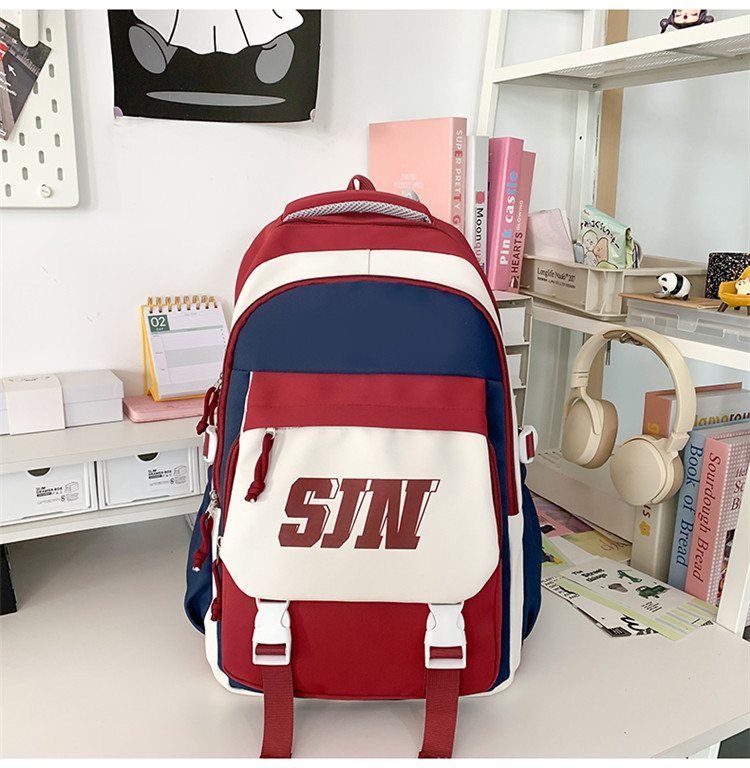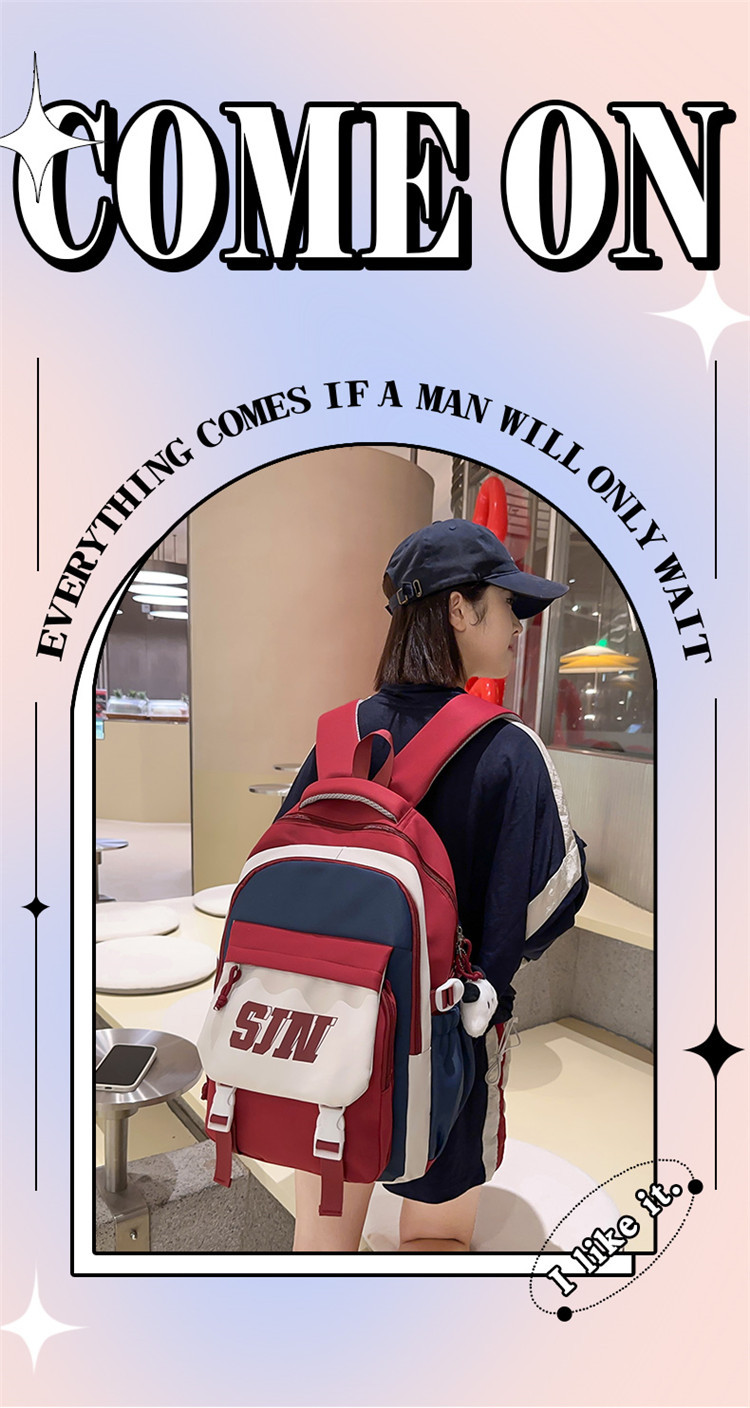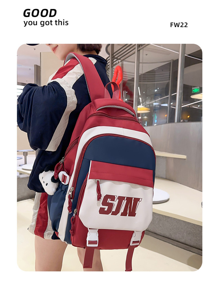 撞色书包小众设计休闲双肩包轻便防水耐磨背包