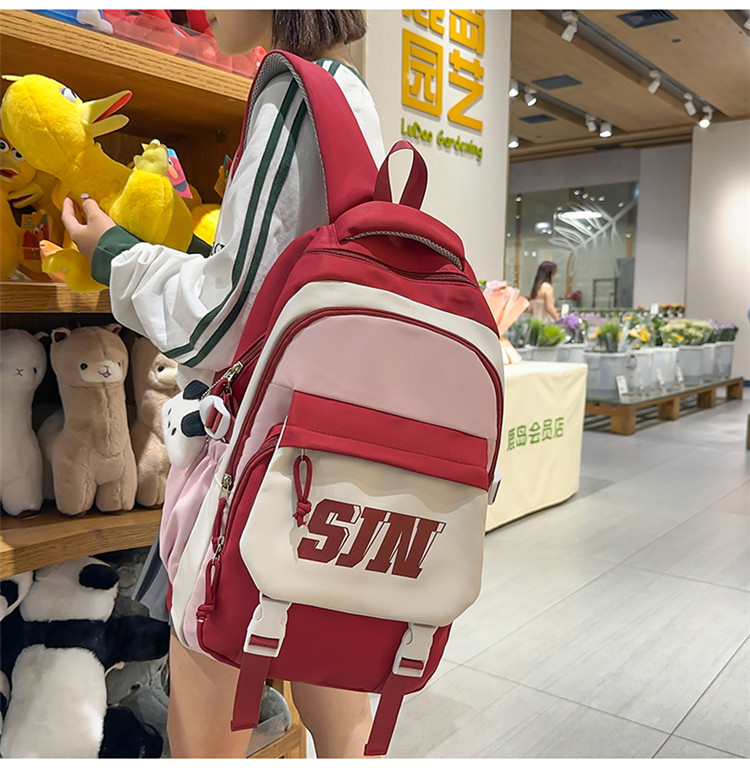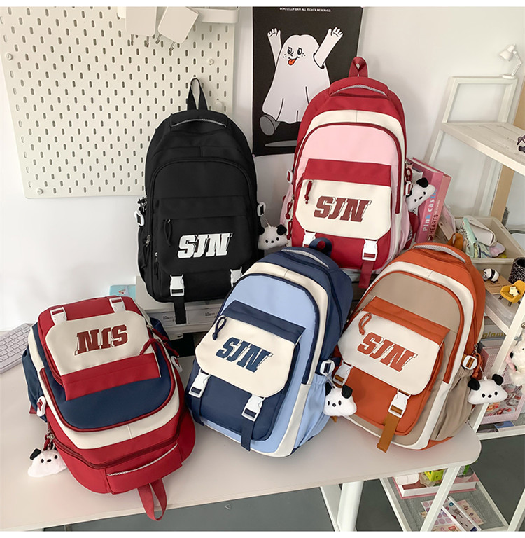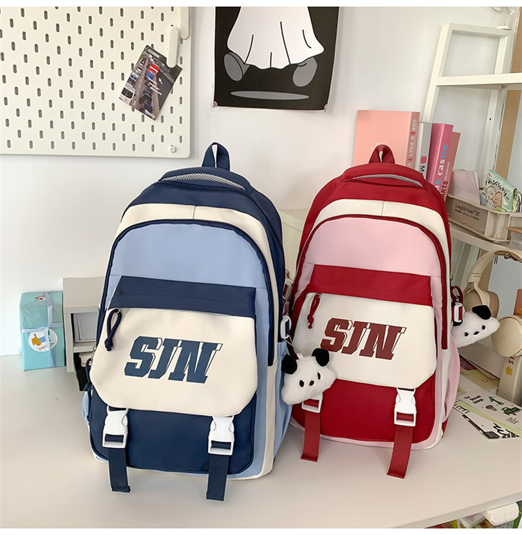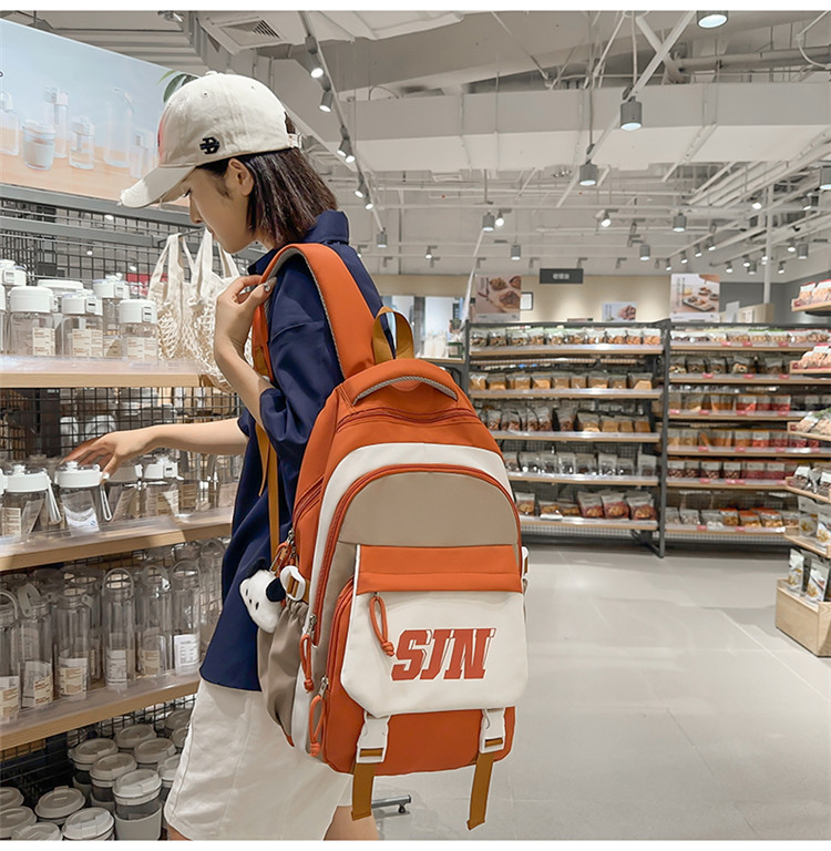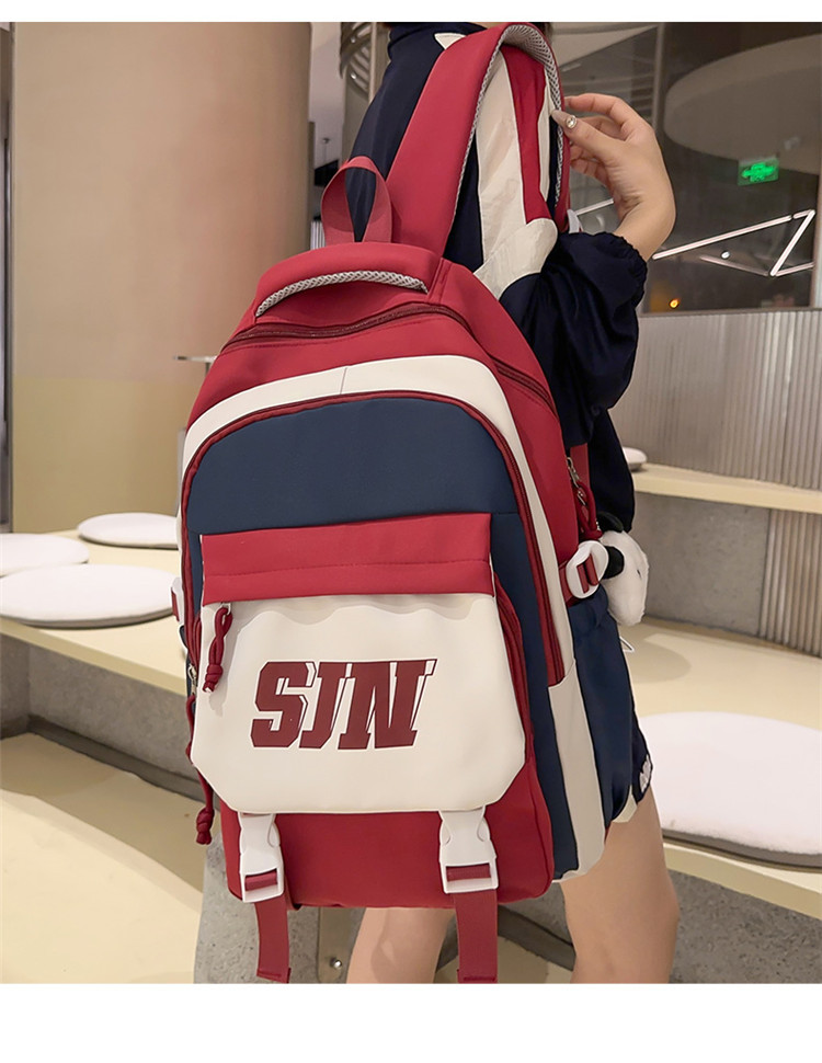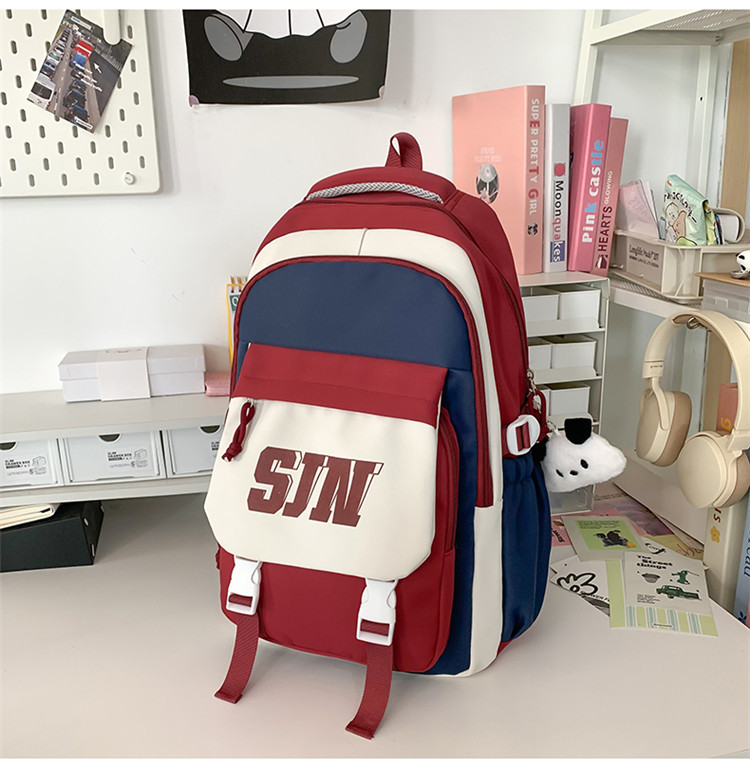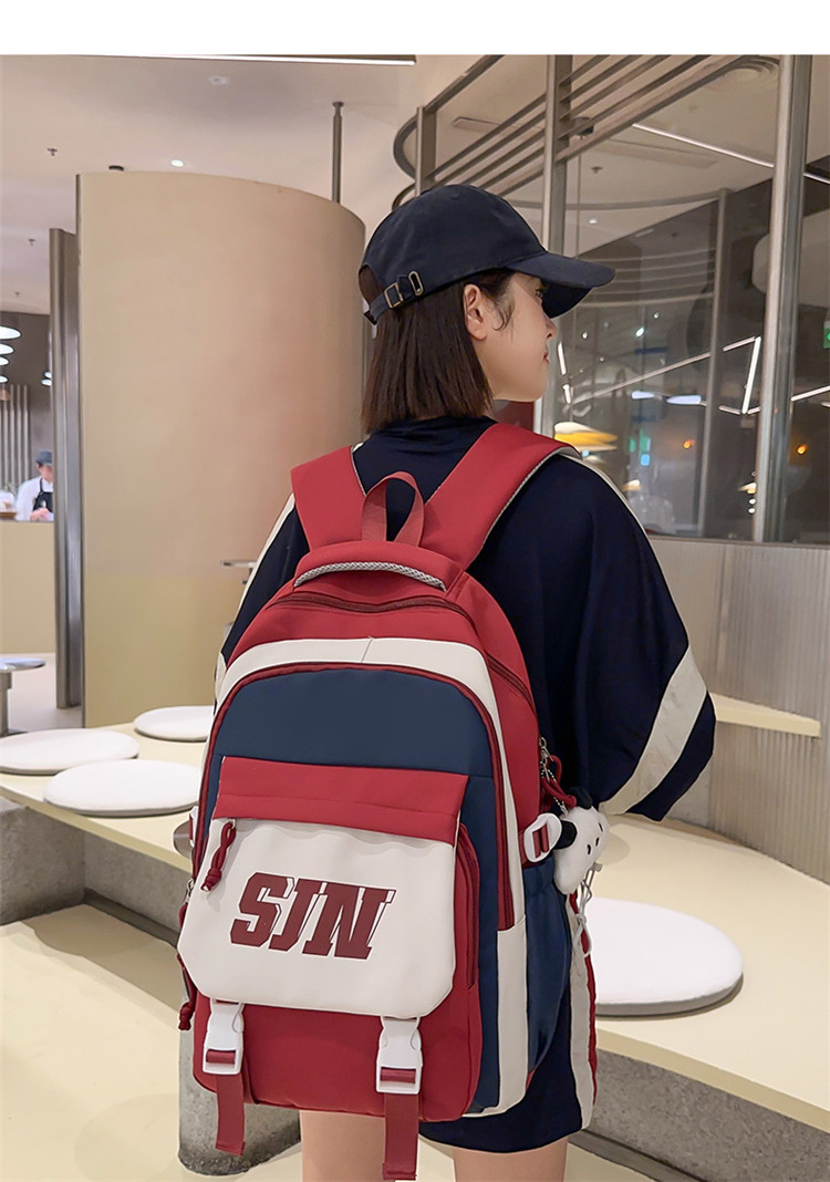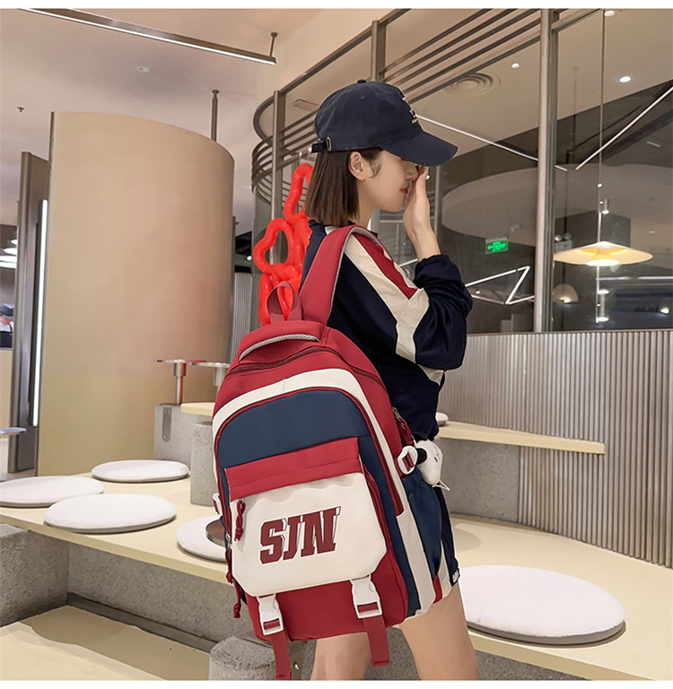 撞色书包小众设计休闲双肩包轻便防水耐磨背包