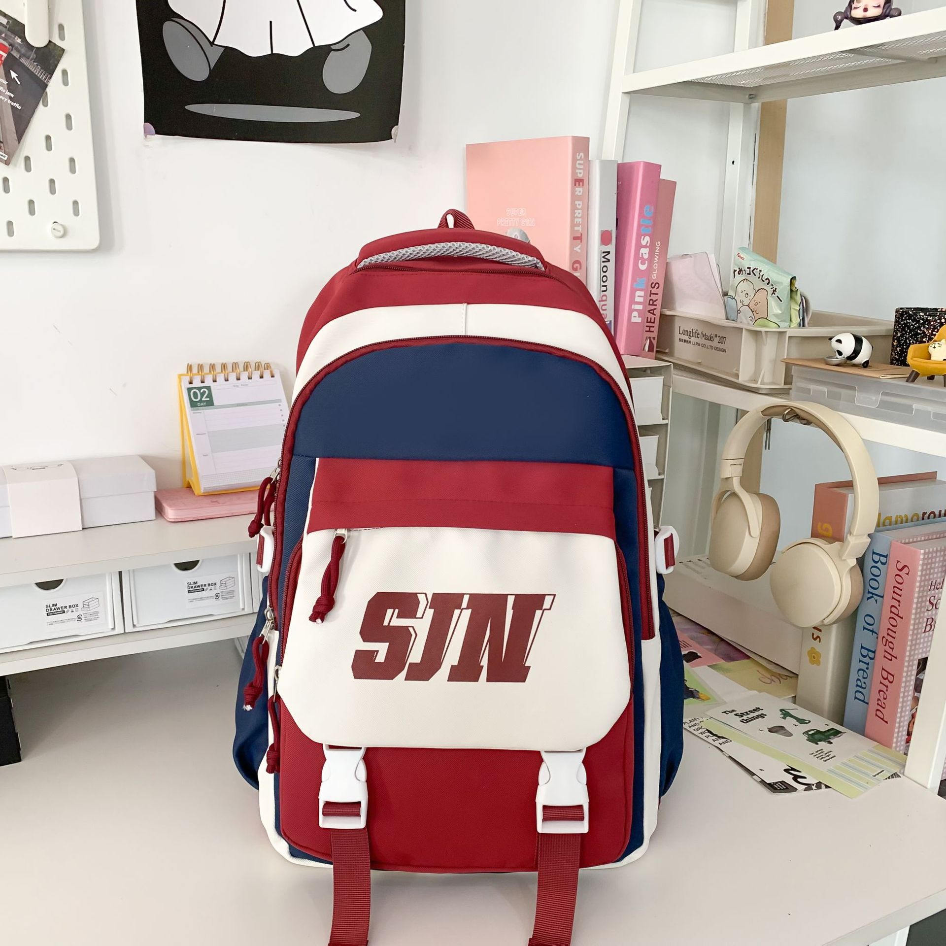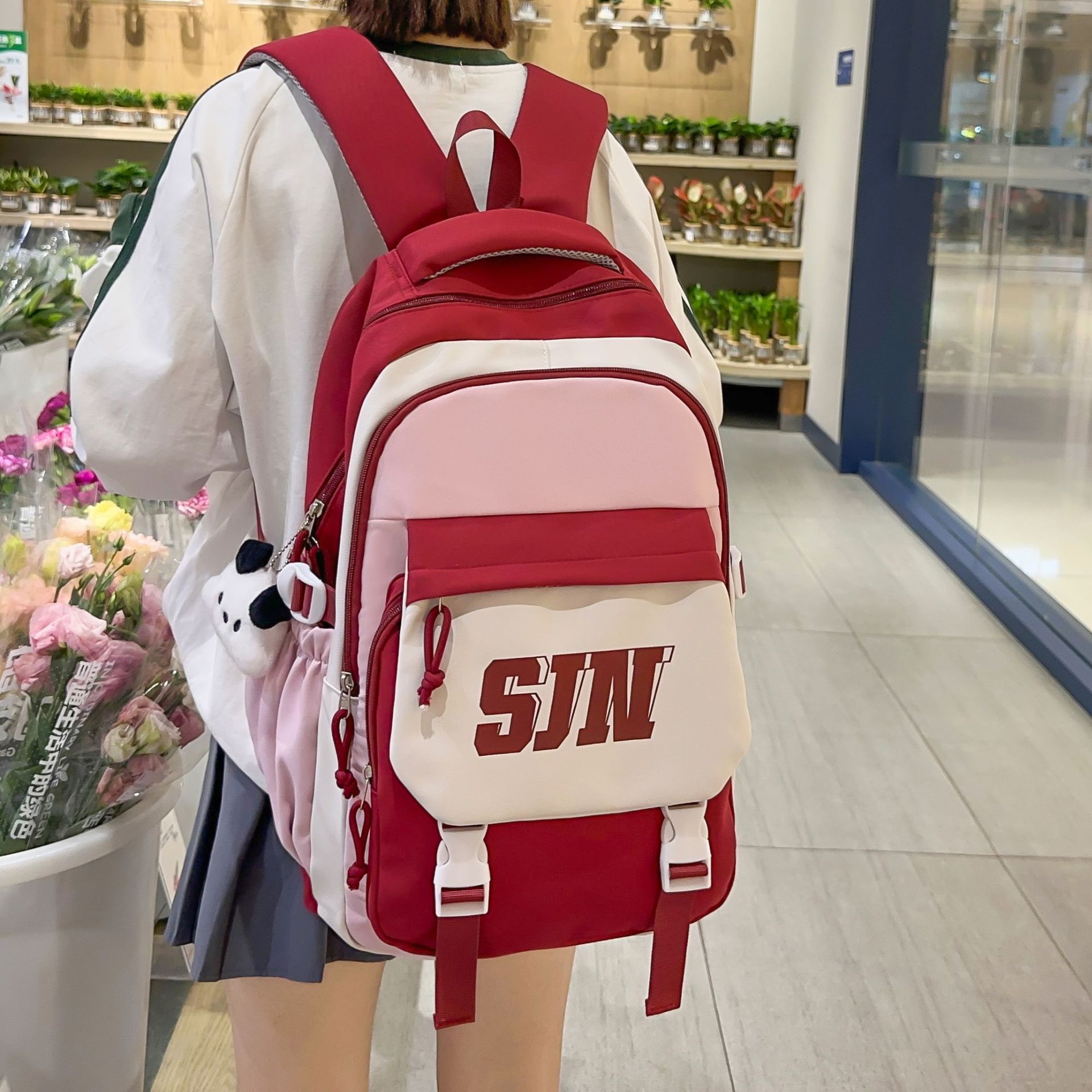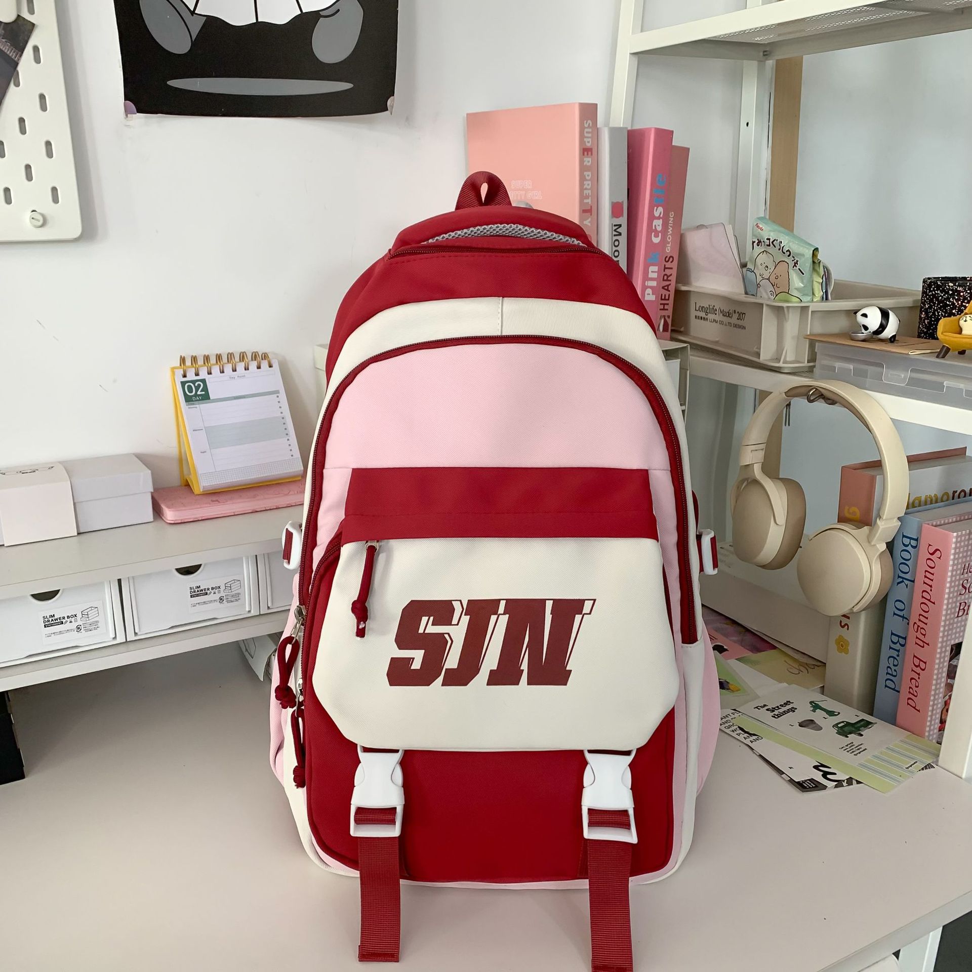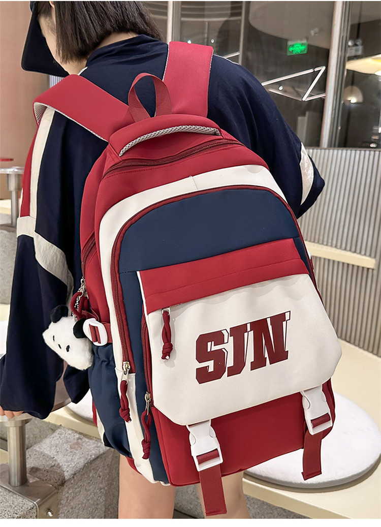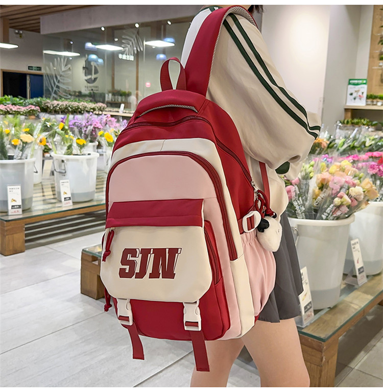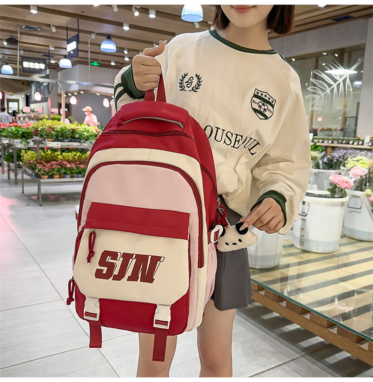 撞色书包小众设计休闲双肩包轻便防水耐磨背包