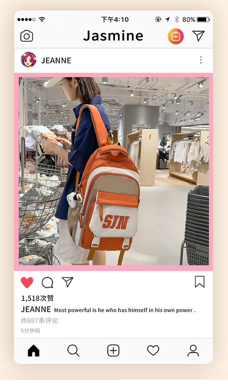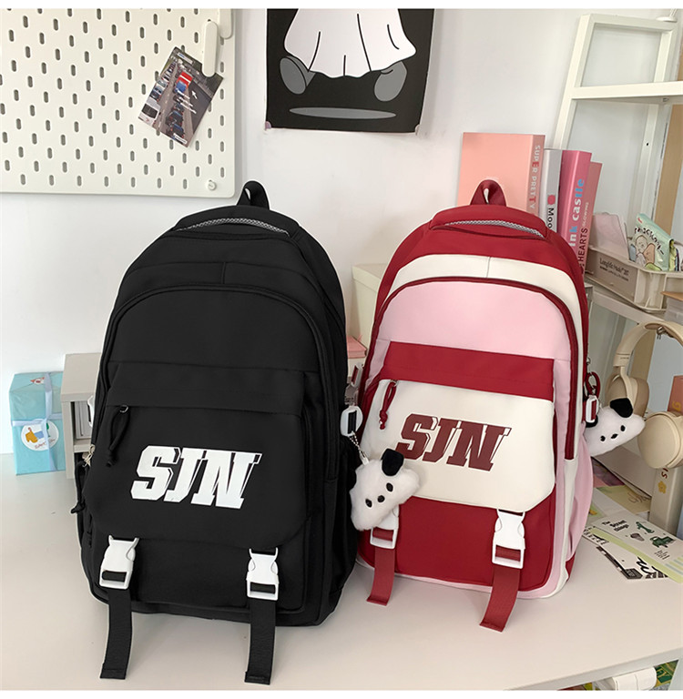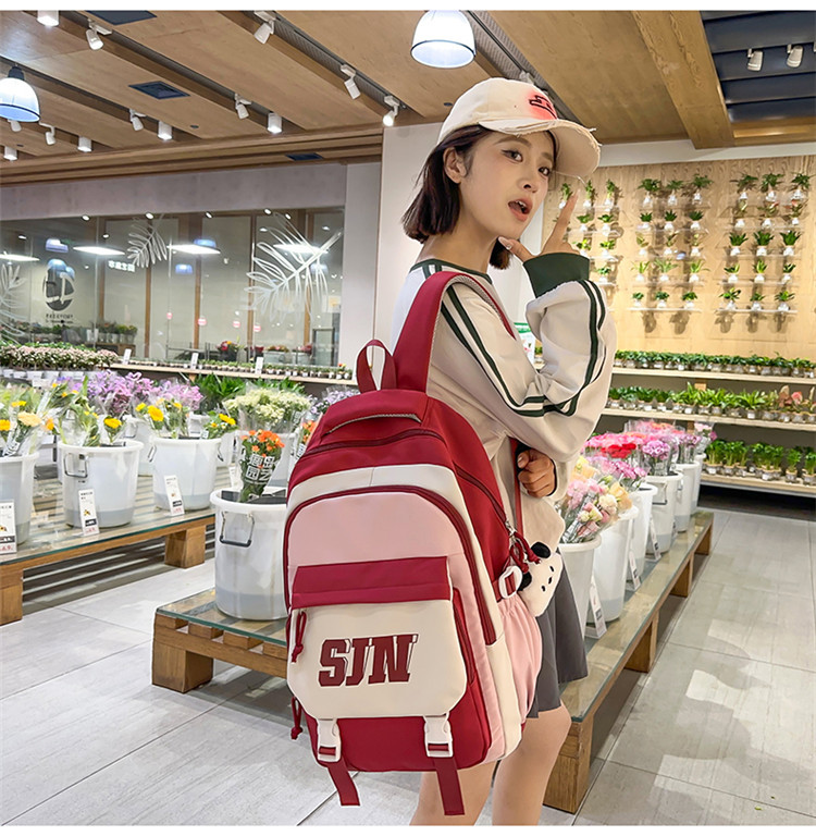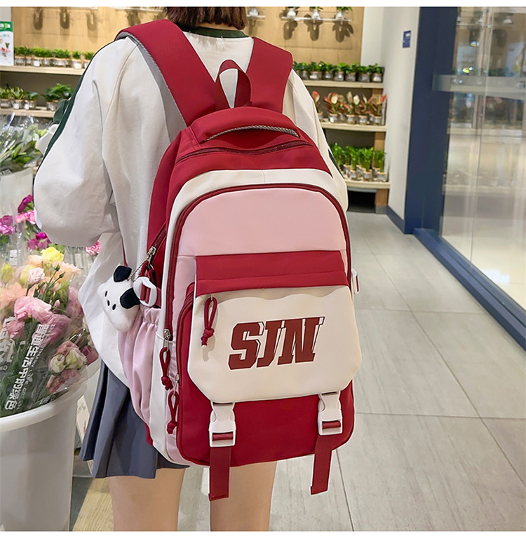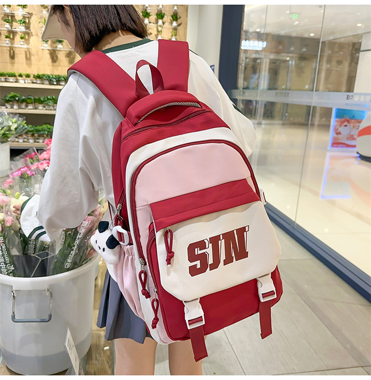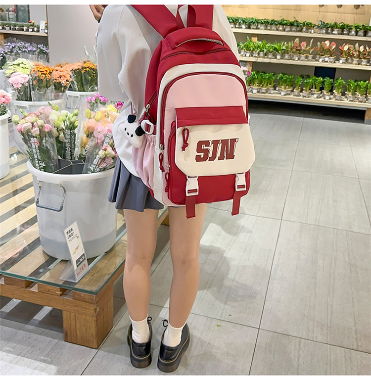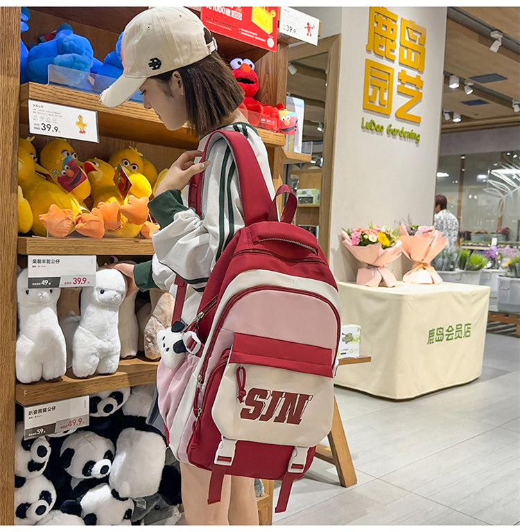撞色书包小众设计休闲双肩包轻便防水耐磨背包