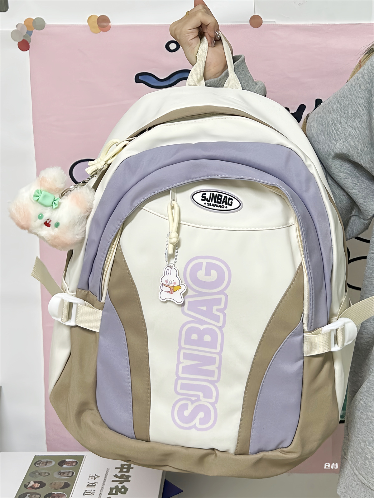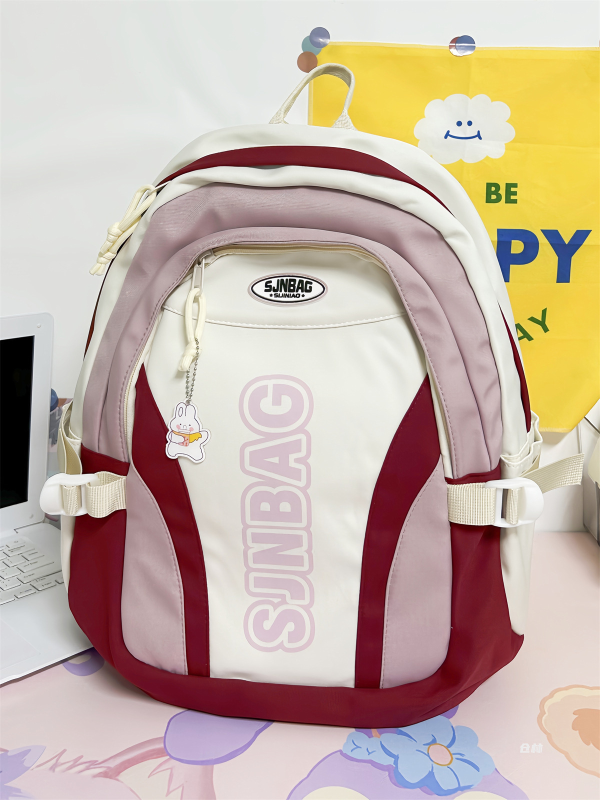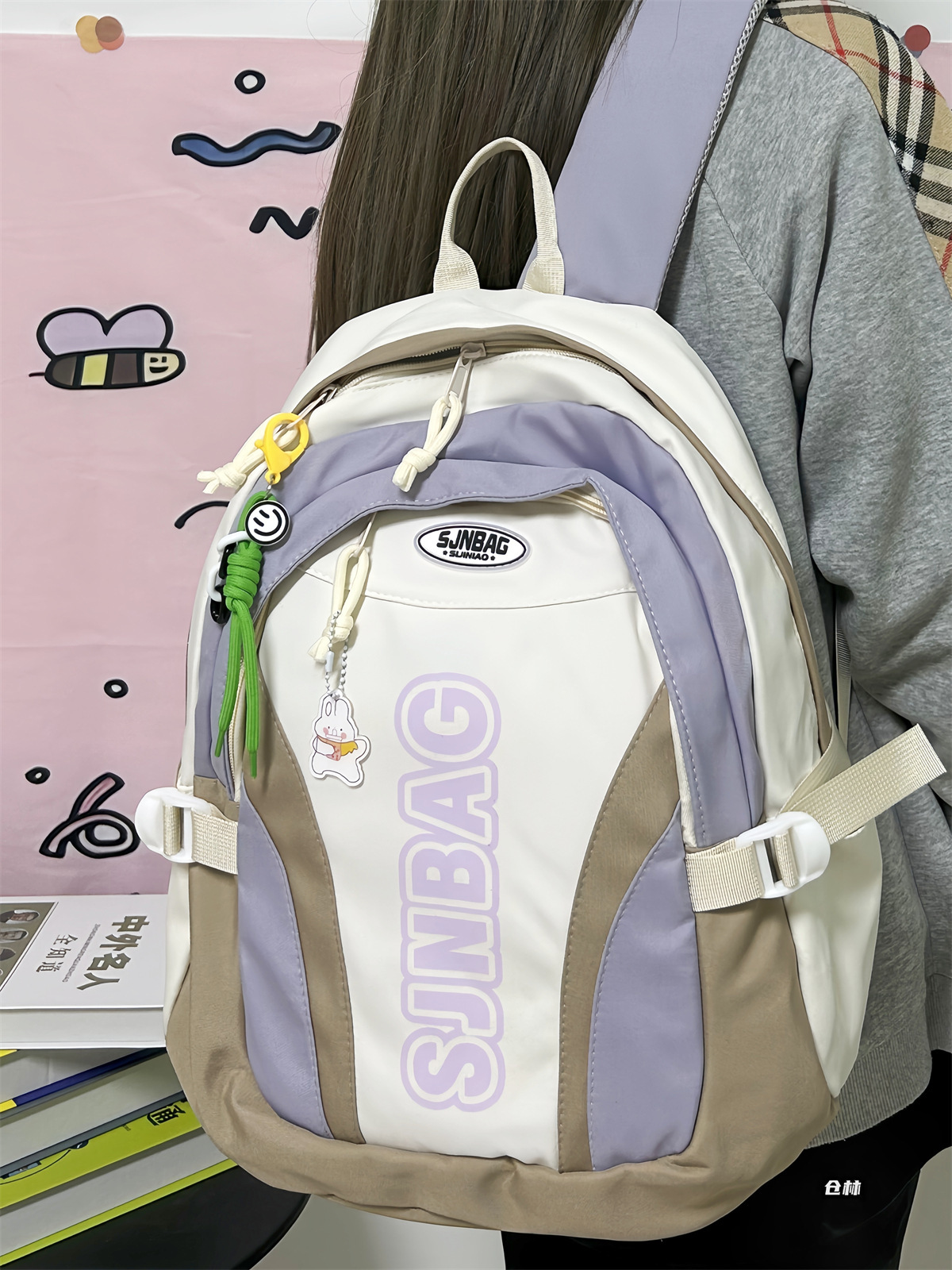 撞色书包小众设计感休闲双肩包轻便防水耐磨背包