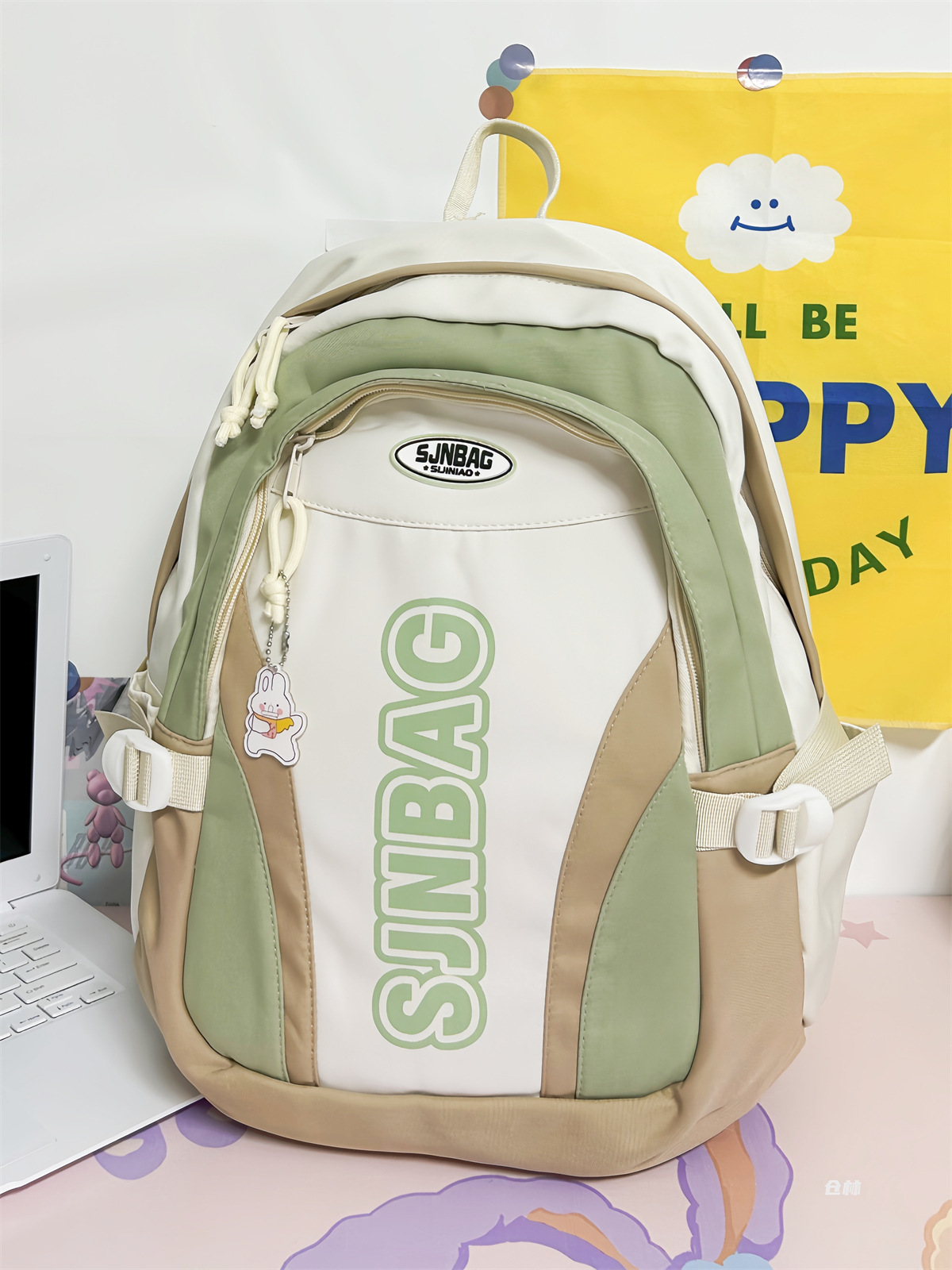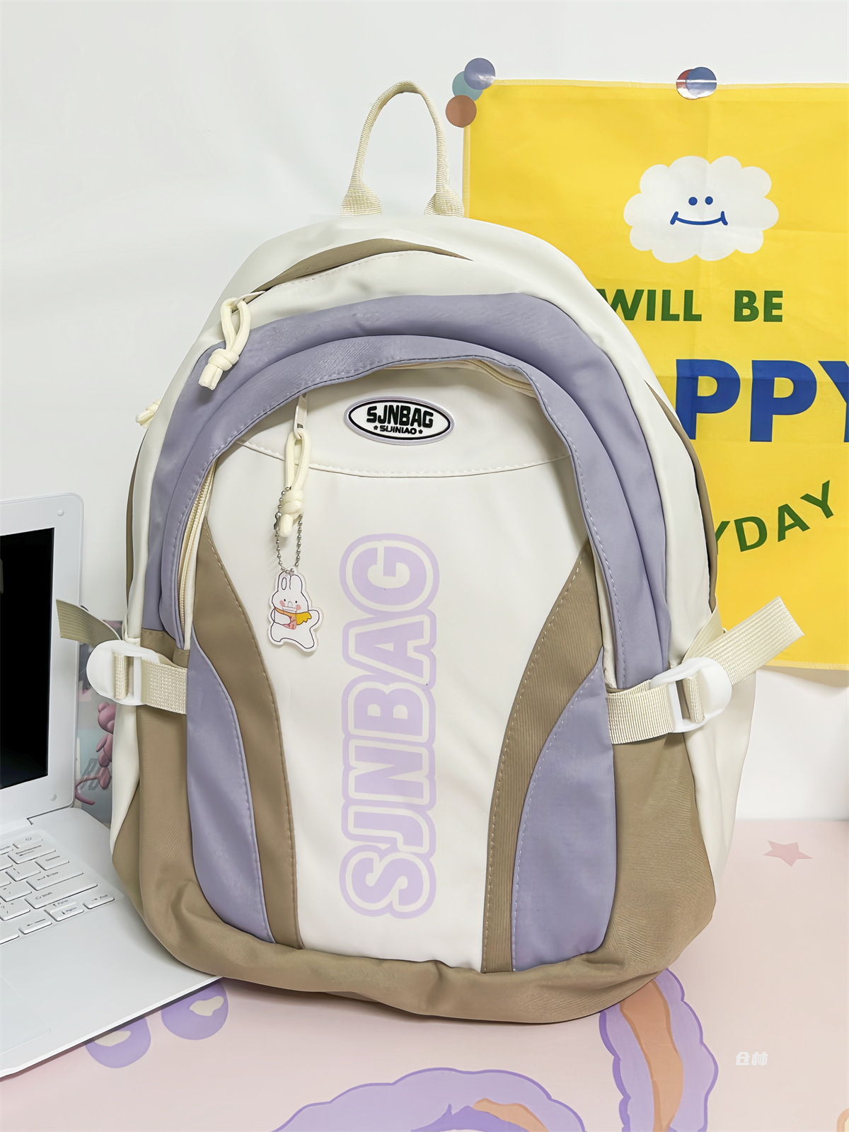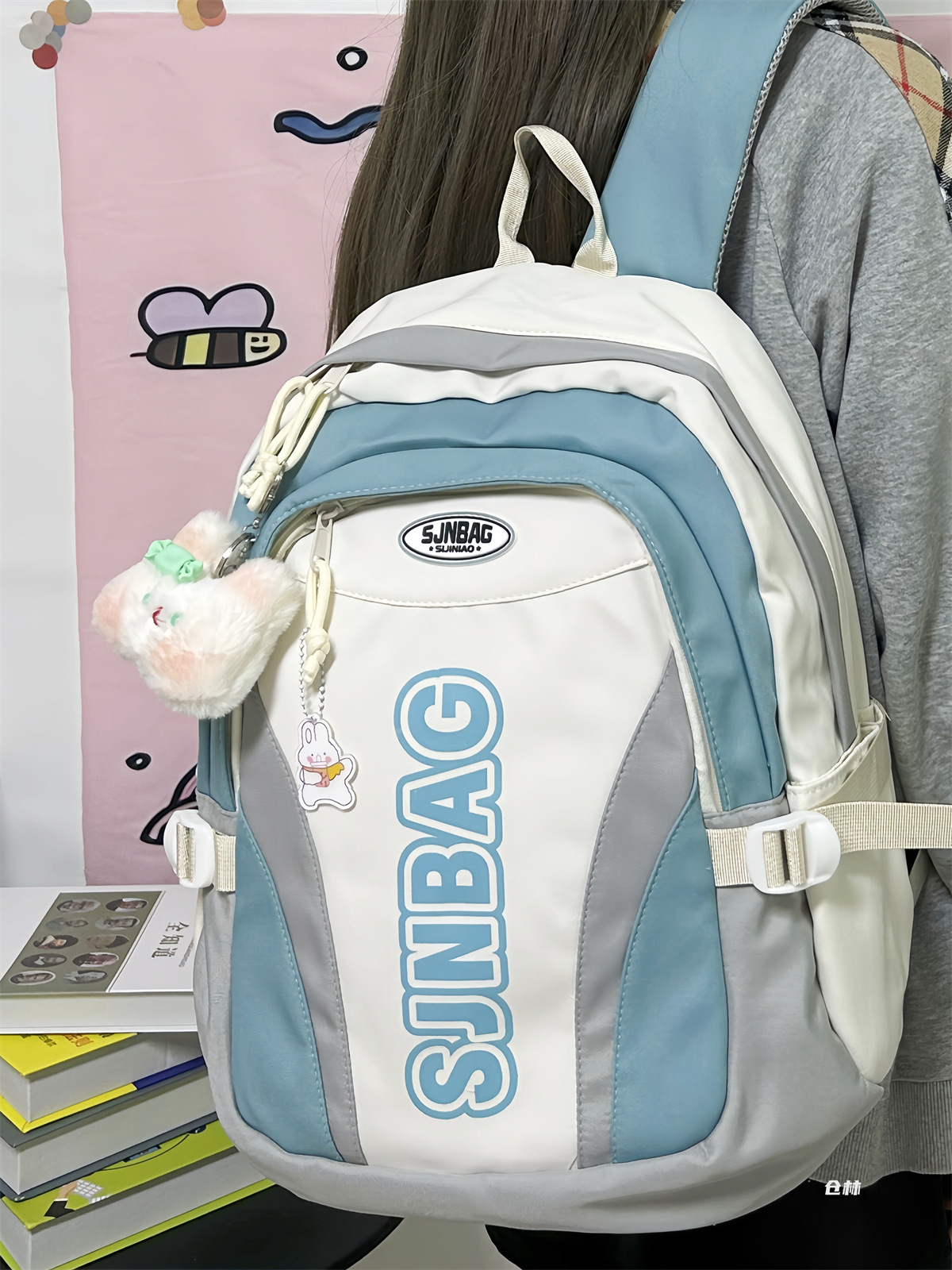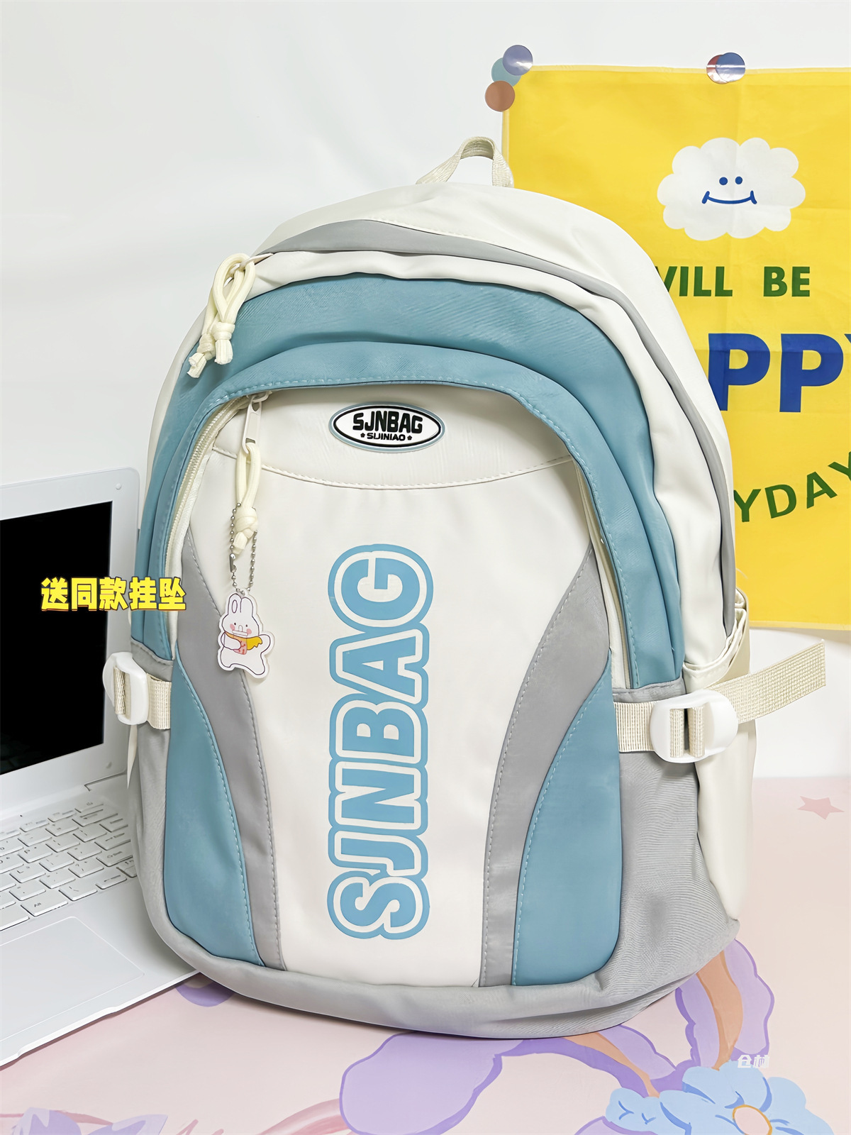 撞色书包小众设计感休闲双肩包轻便防水耐磨背包