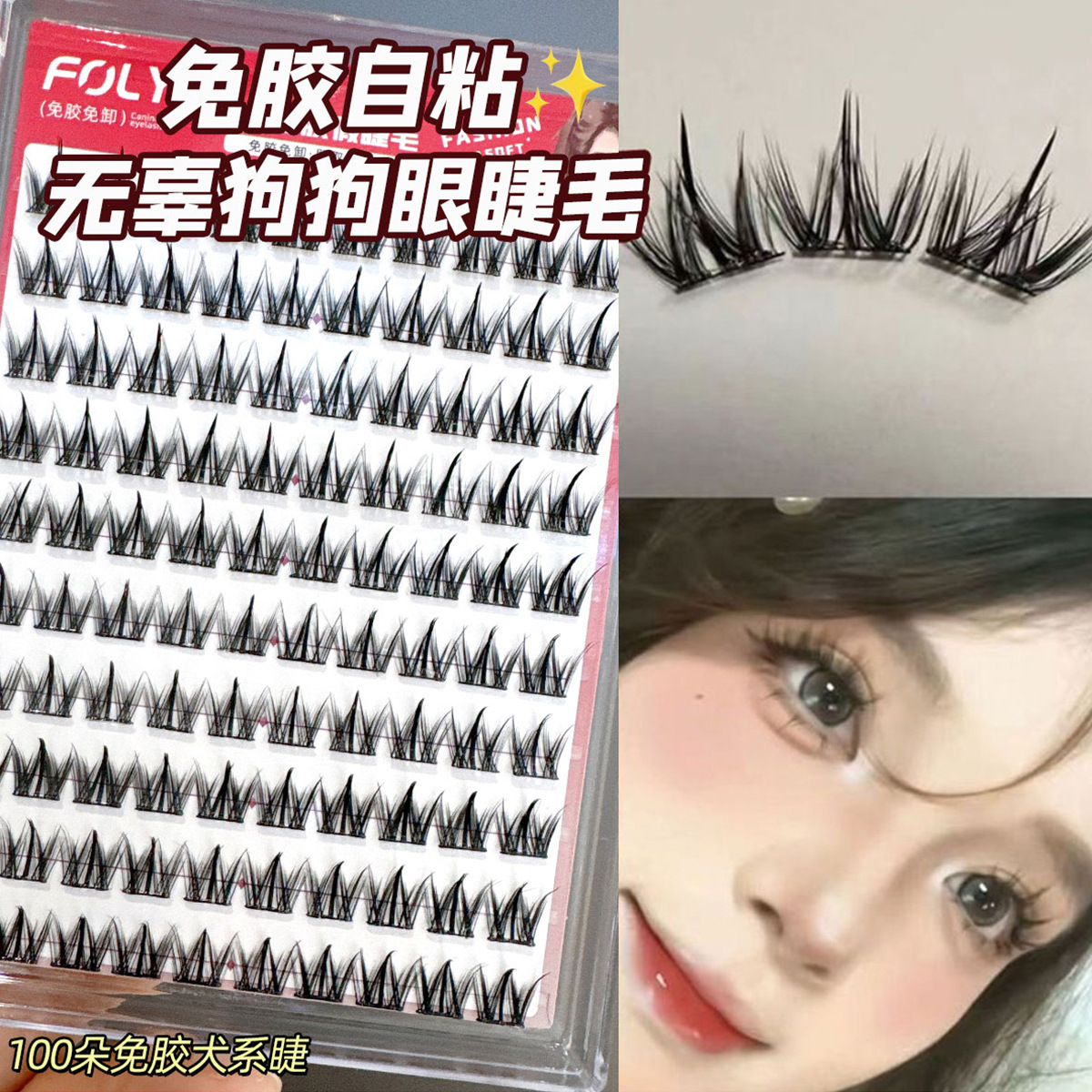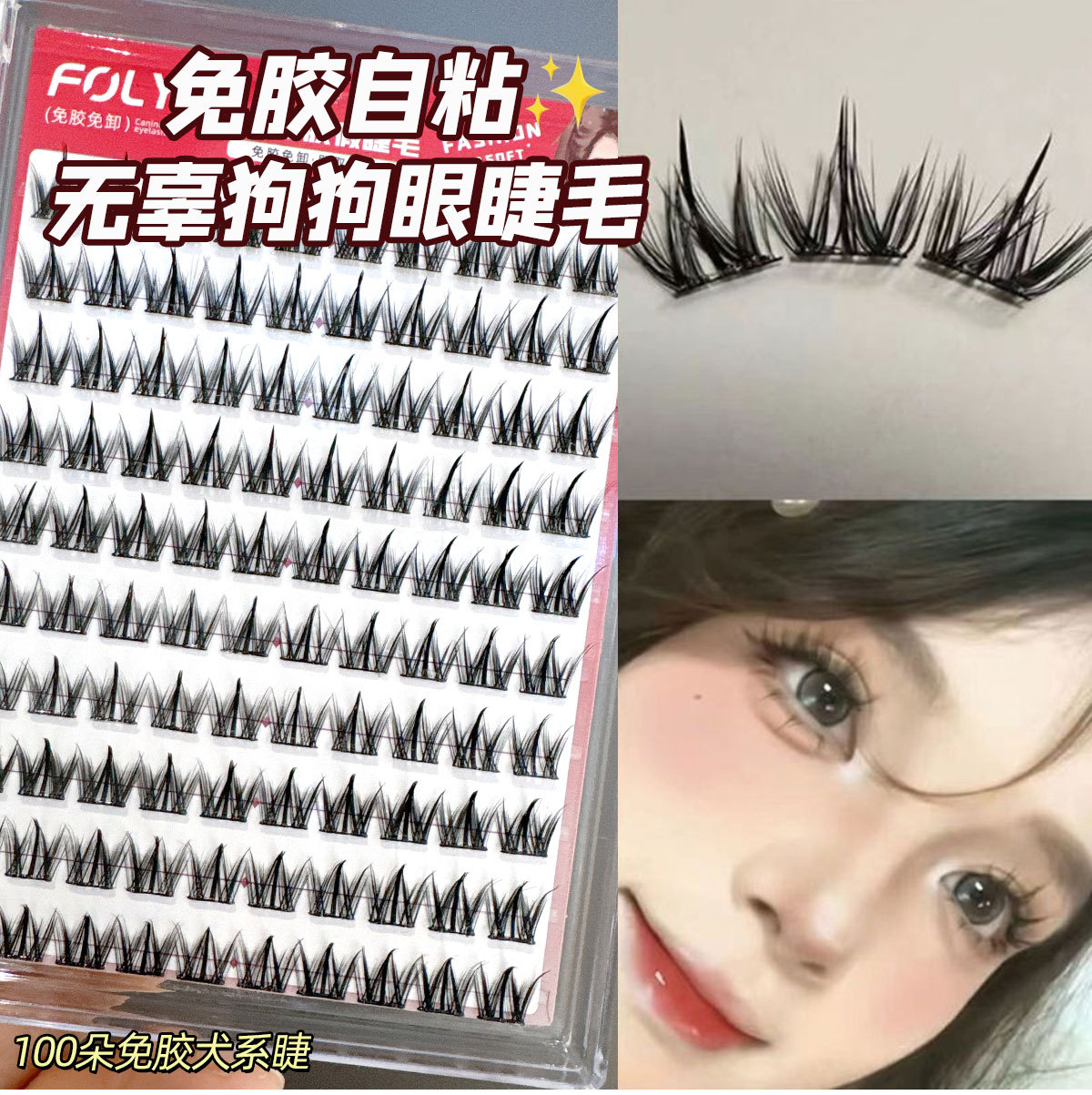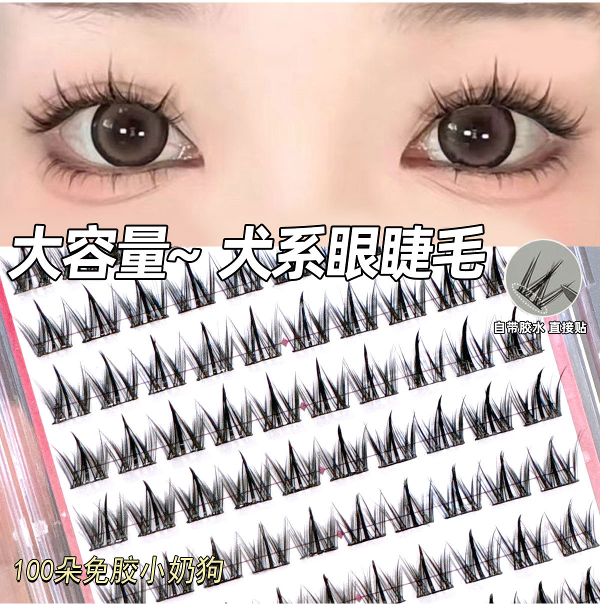 免胶100簇犬系假睫毛懒人小奶狗超软眼睫毛超自然新手假睫毛细梗