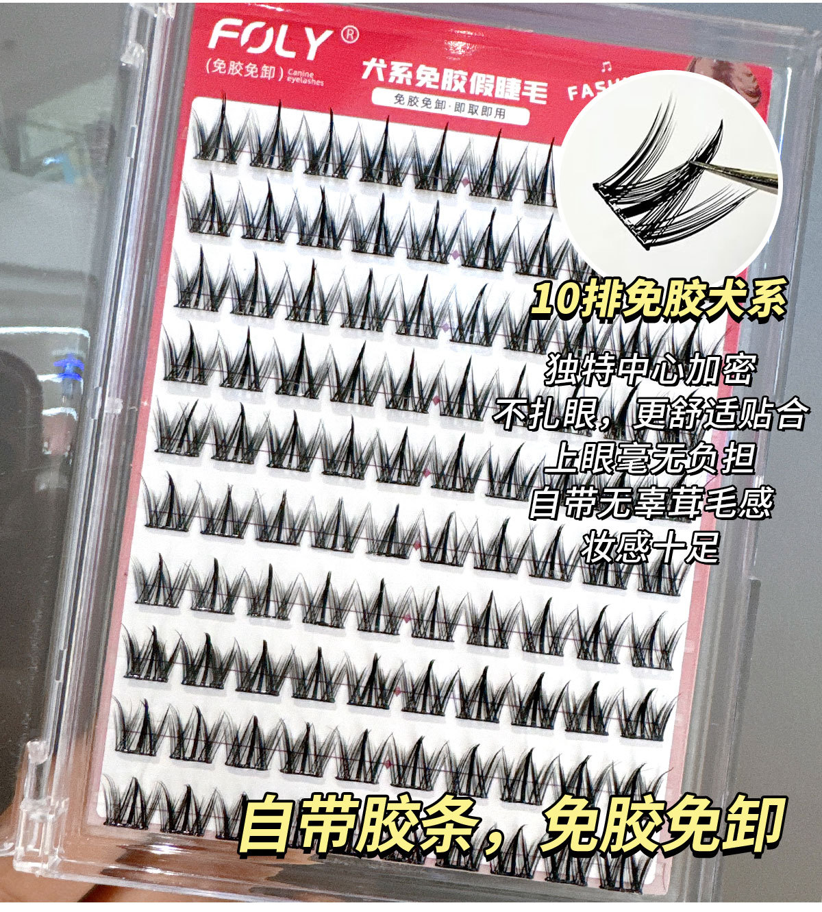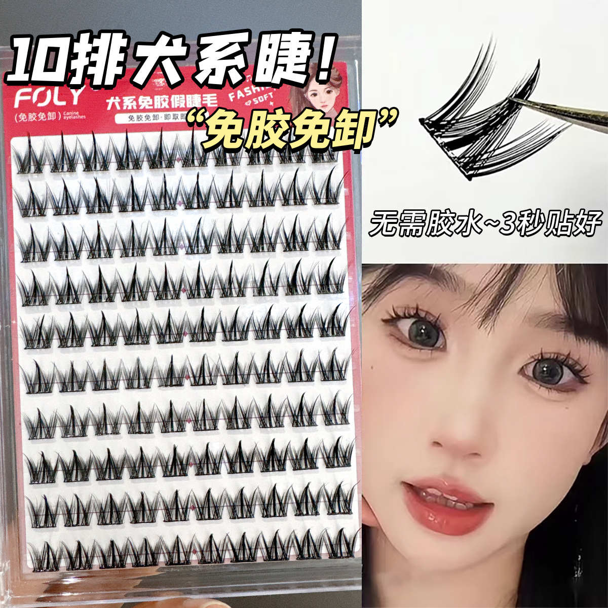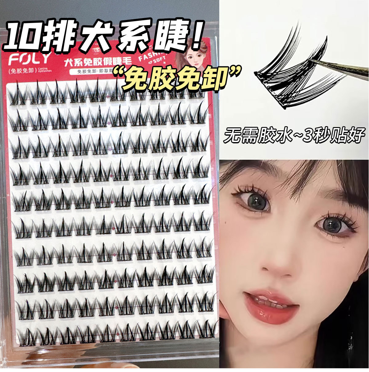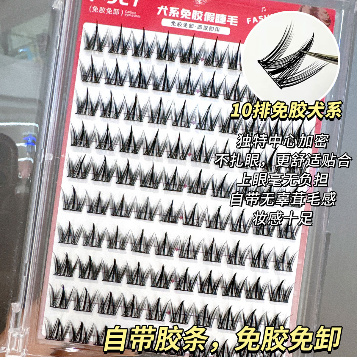 免胶100簇犬系假睫毛懒人小奶狗超软眼睫毛超自然新手假睫毛细梗
