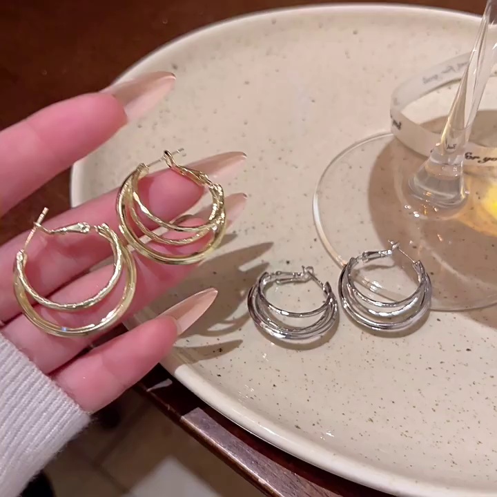 耳环欧美爆款金属感耳圈耳饰小众高级感多层叠戴大圆圈耳环女批发