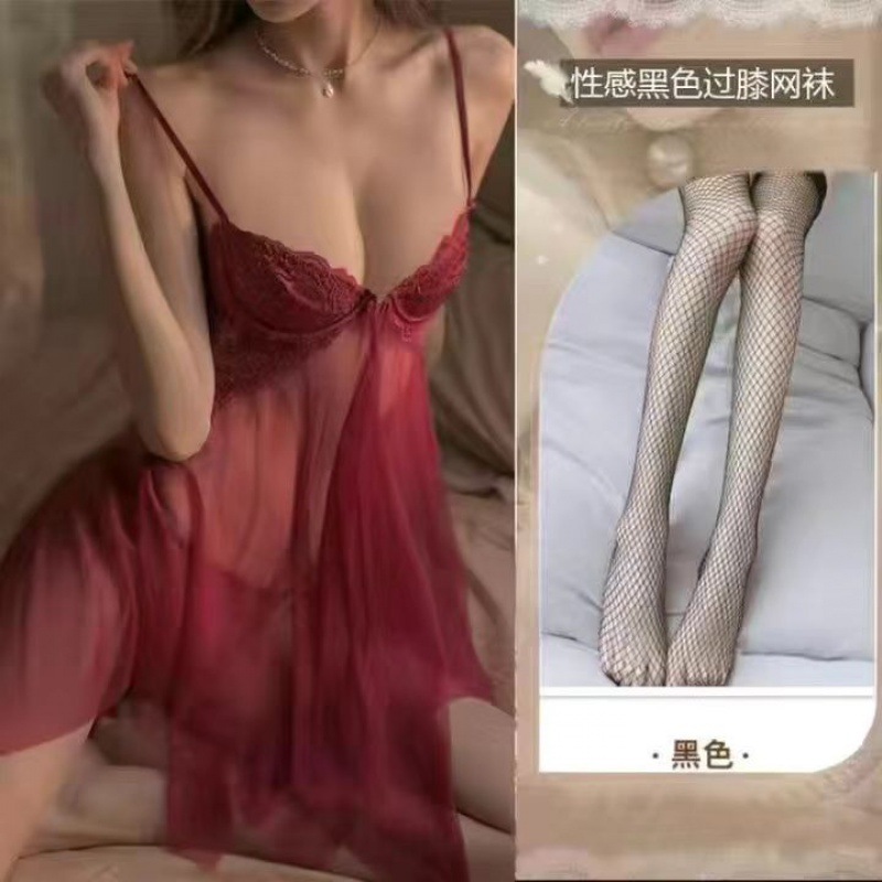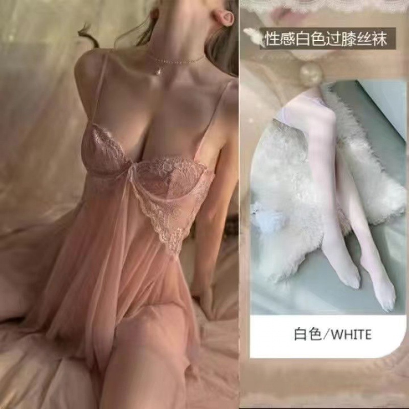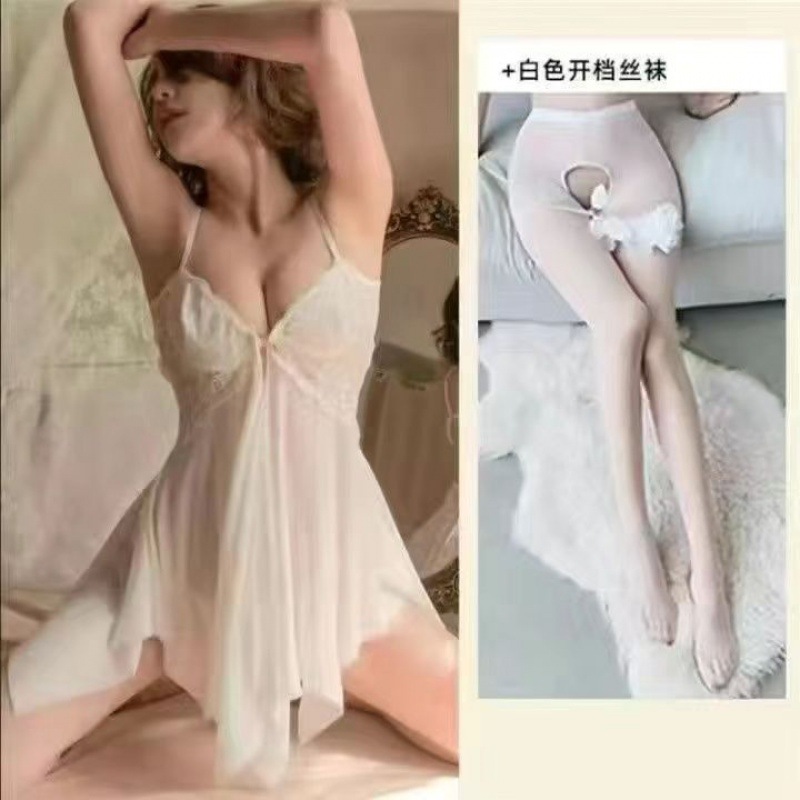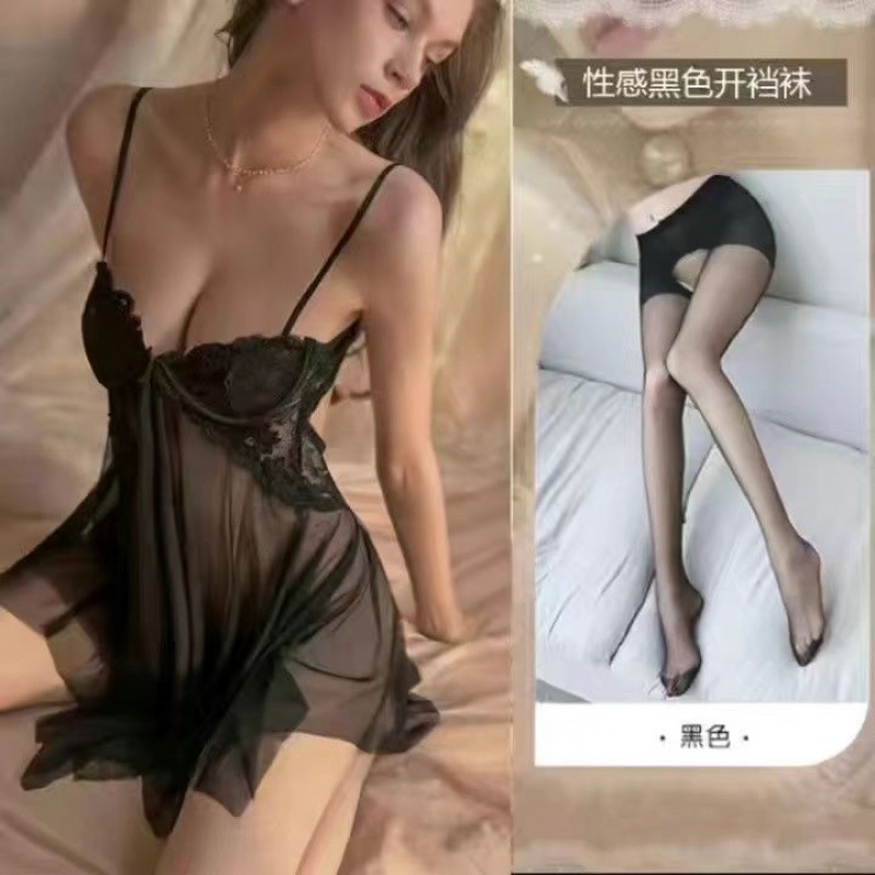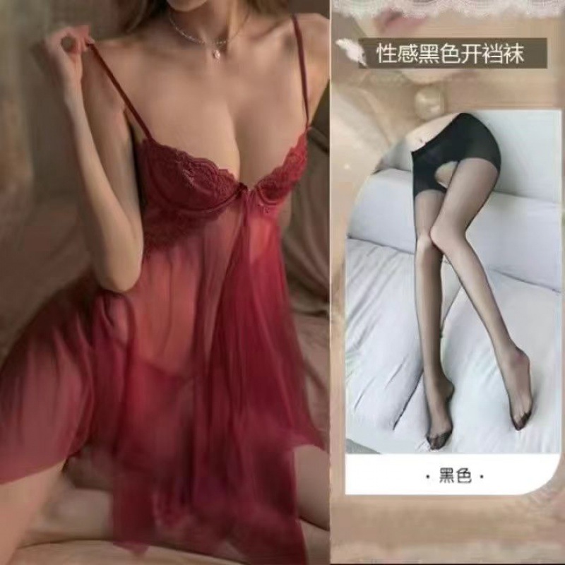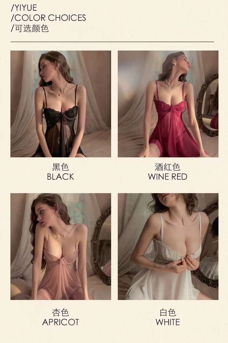 情趣内衣性感漏乳蕾丝透视诱惑睡衣钢托聚拢前开叉睡裙女挑逗睡裙