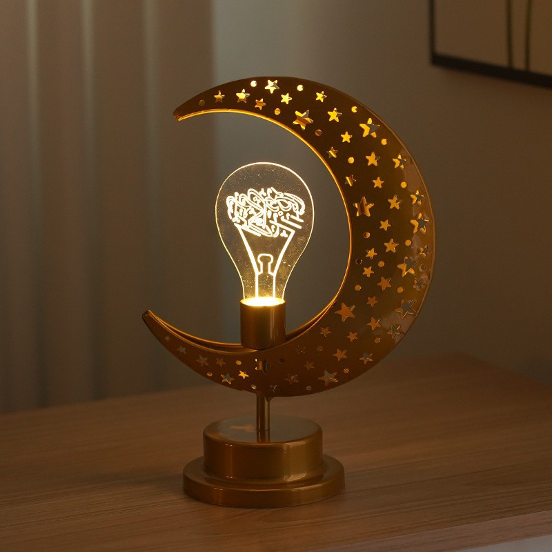 外贸专供led造型灯亚克力铁艺星星月亮小夜灯穆斯林中东节日 台灯