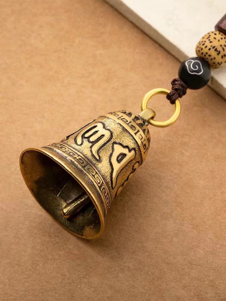 纯黄铜铃铛般若波罗密多心经钥匙扣个性复古挂件创意文玩挂饰批发