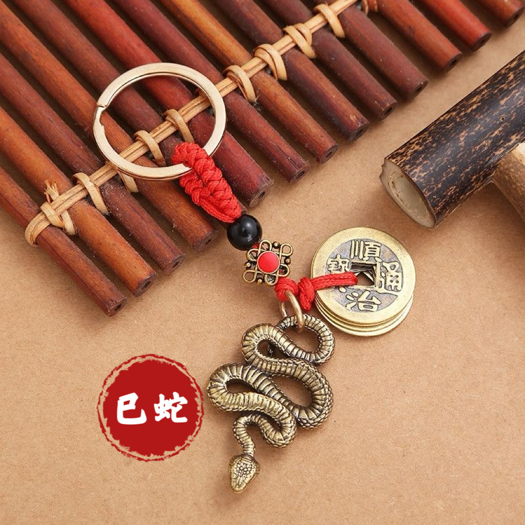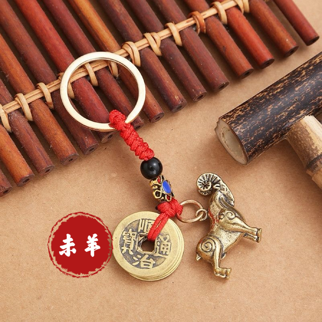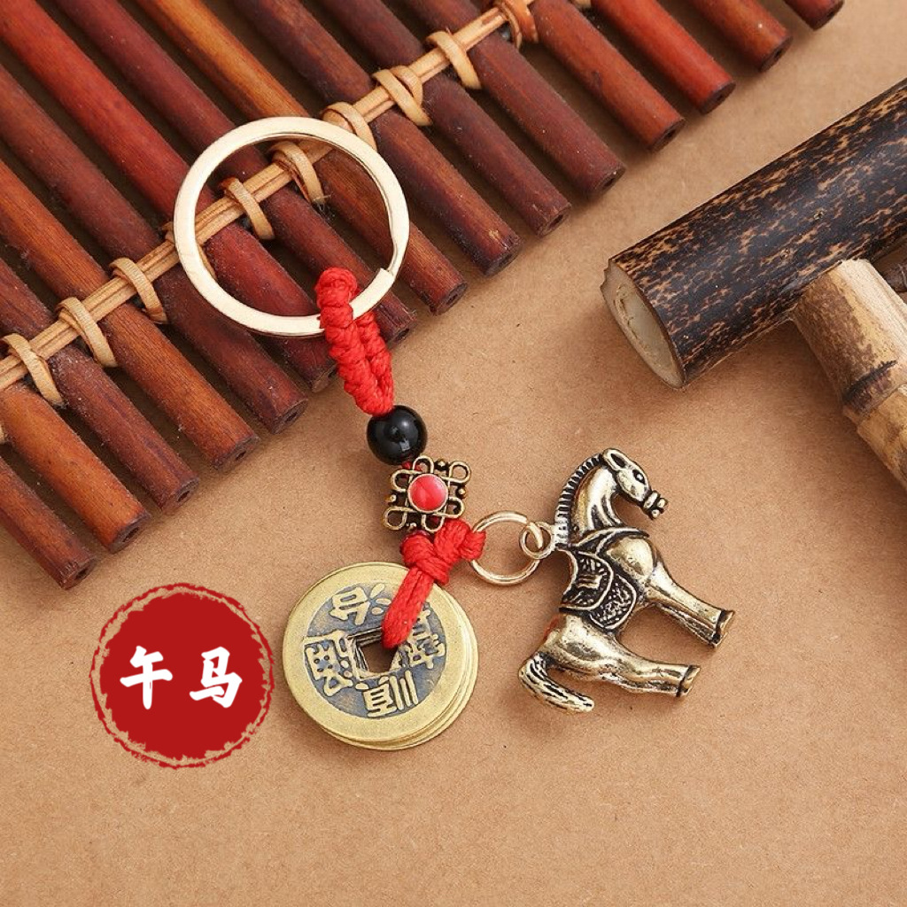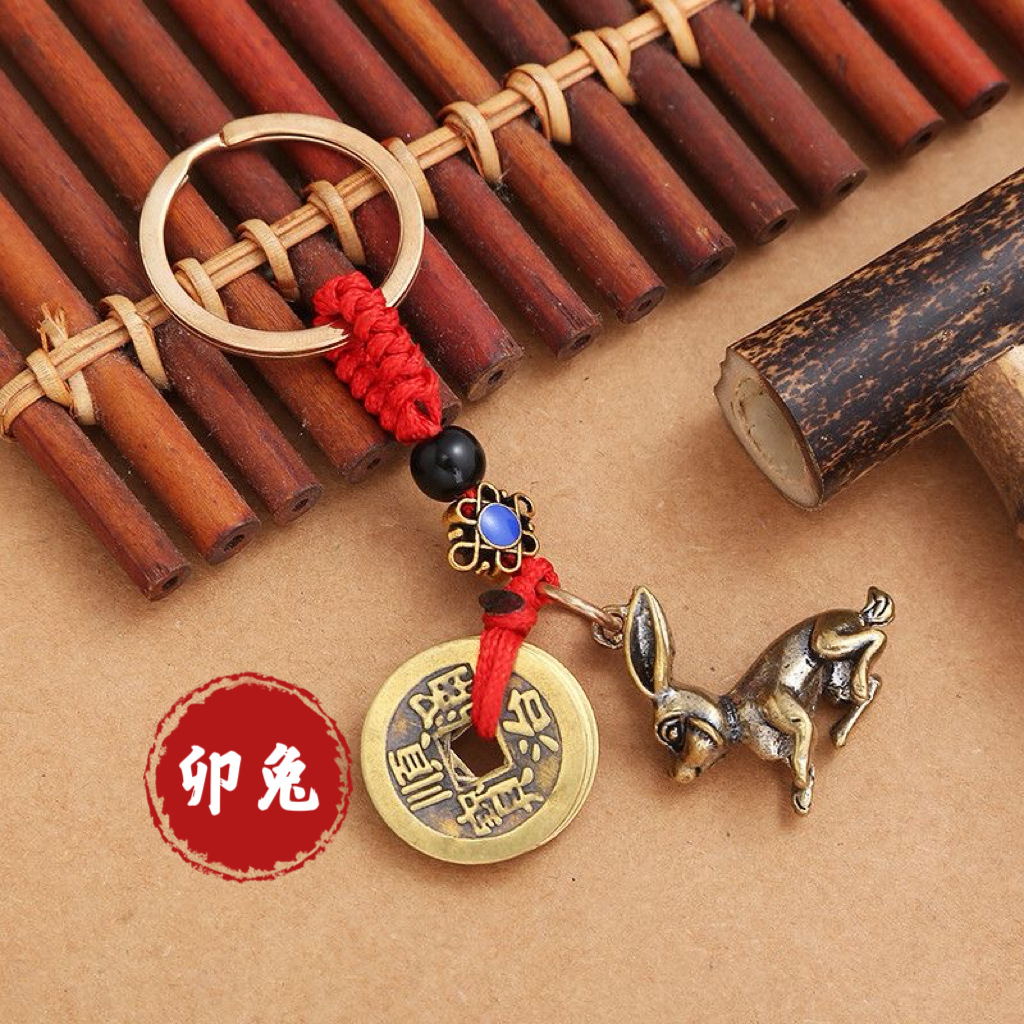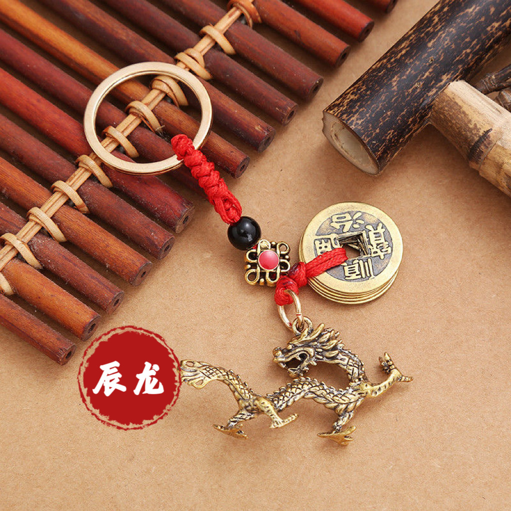 纯黄铜立体十二生肖钥匙扣红绳守护神本命年五帝钱挂件汽车钥匙扣