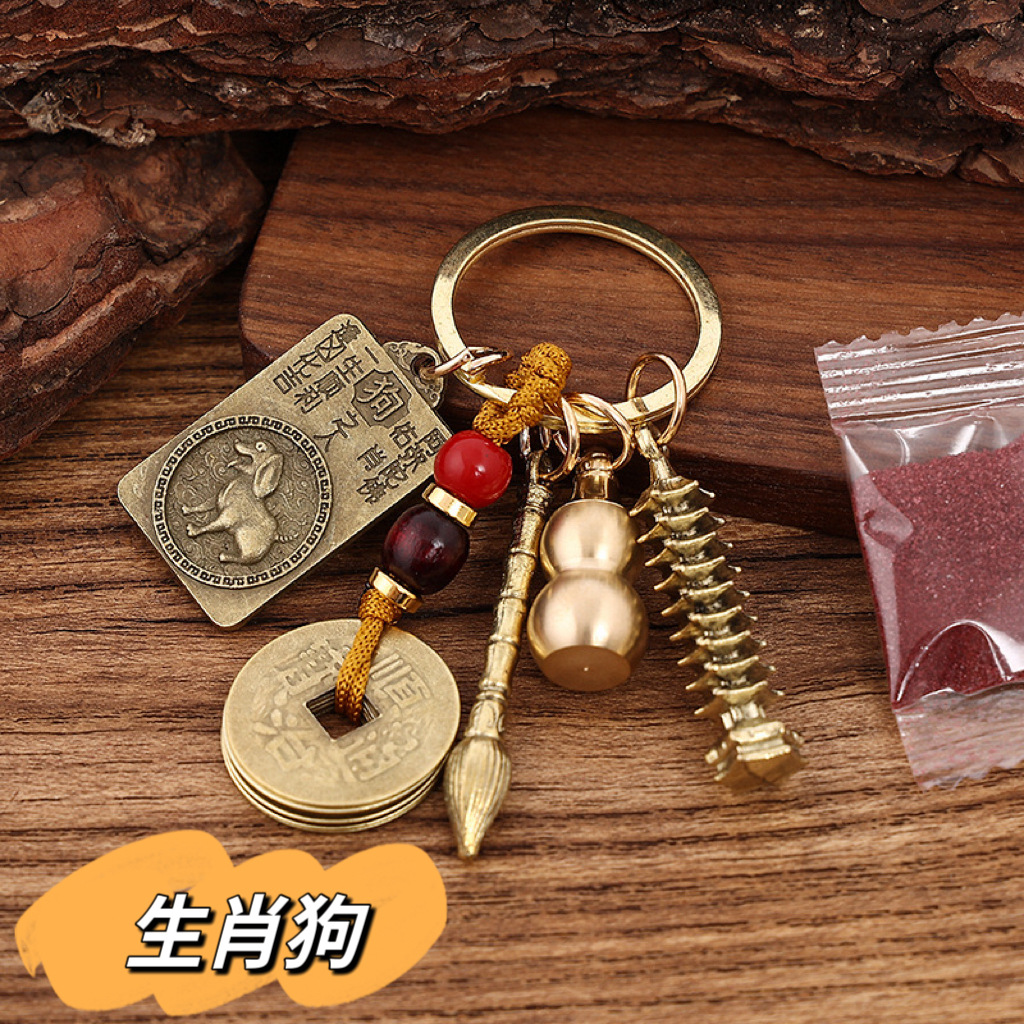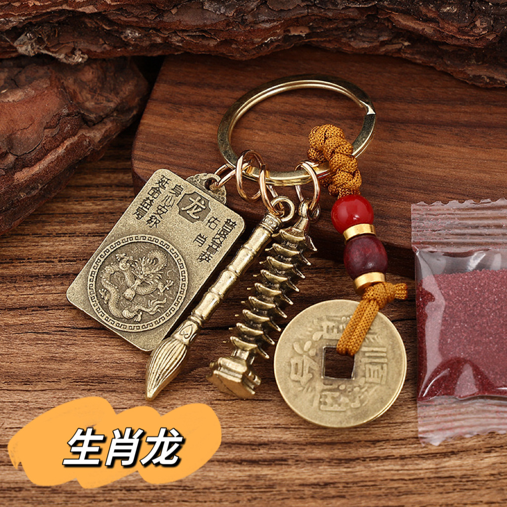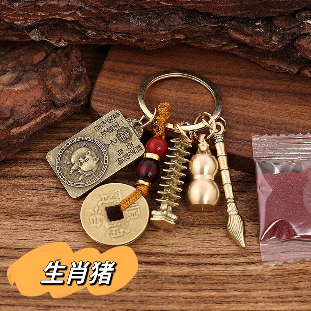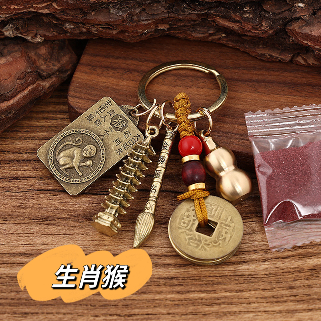 十二生肖钥匙扣黄铜五帝钱八大佛方牌挂饰包包汽车铜饰品