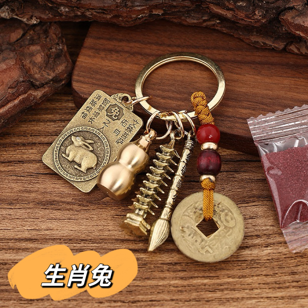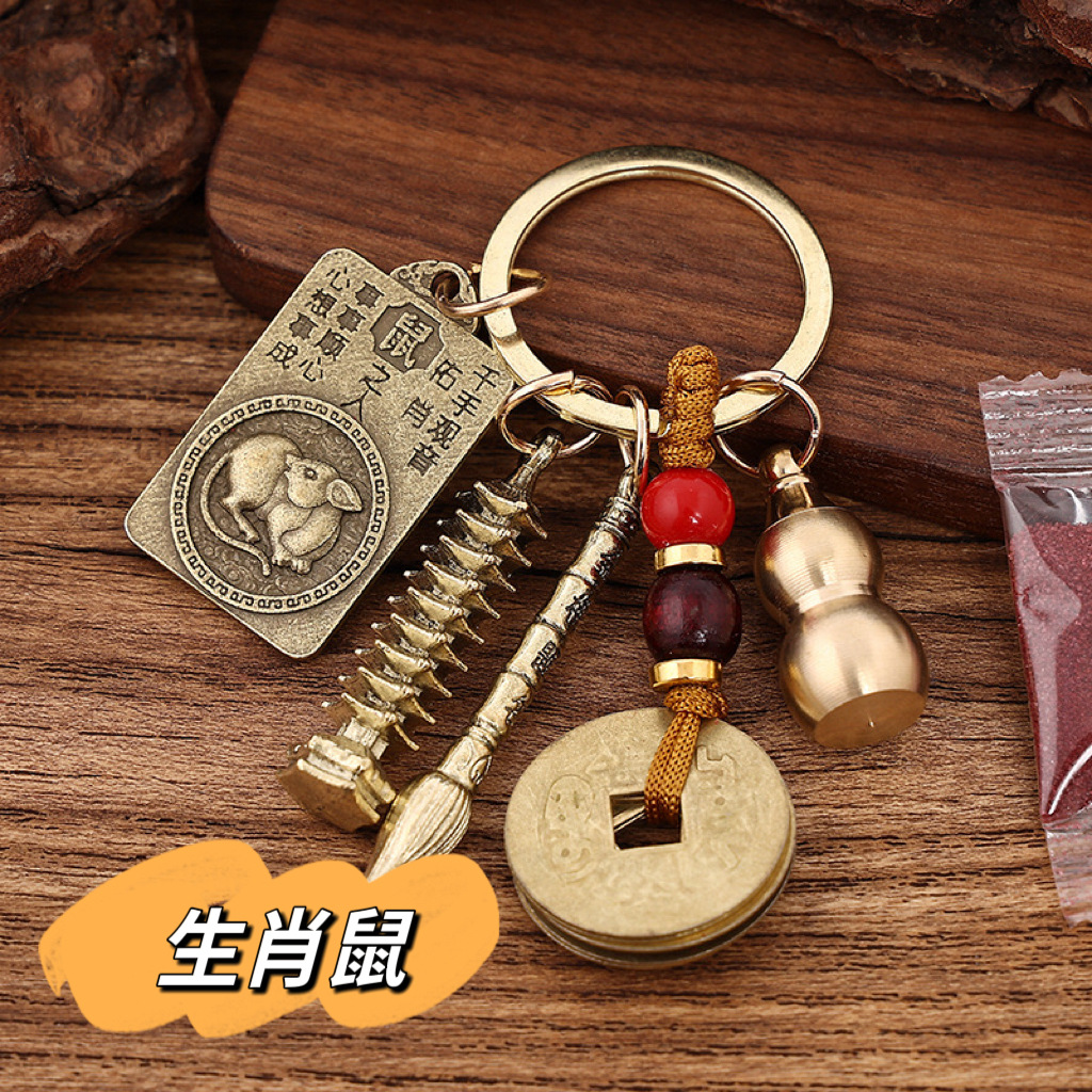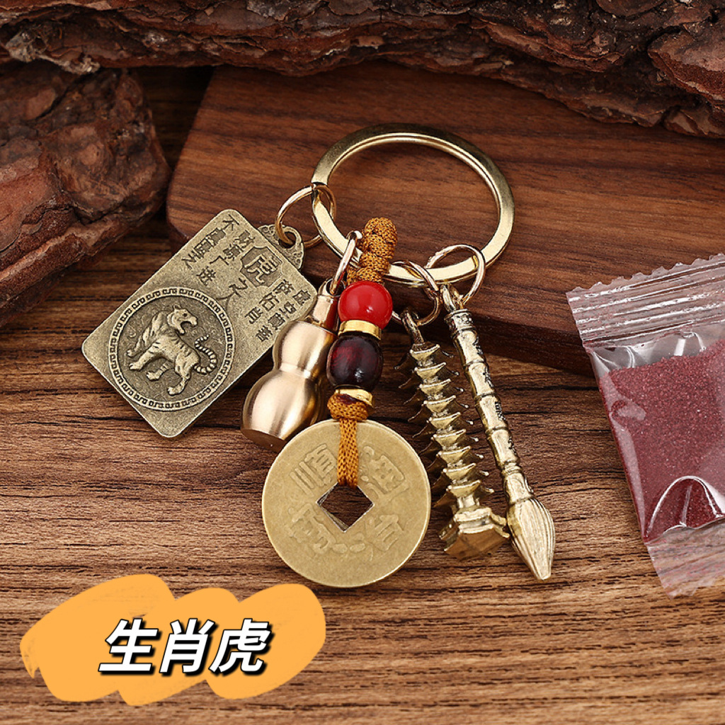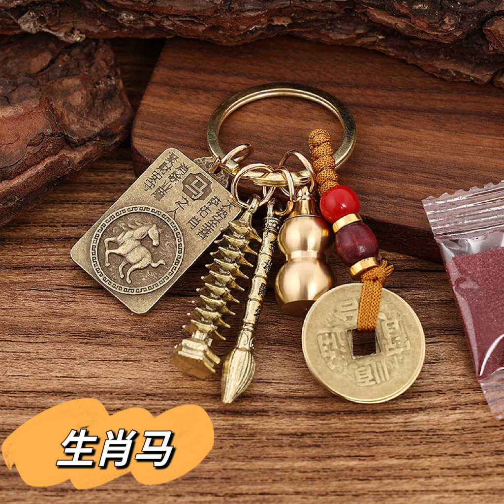 十二生肖钥匙扣黄铜五帝钱八大佛方牌挂饰包包汽车铜饰品