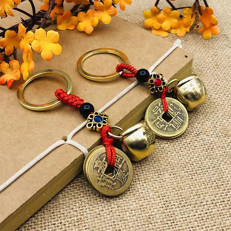 迷你小百福缸黄铜五帝钱钥匙扣米缸挂件裂纹珠绳汽车钥匙配件批发