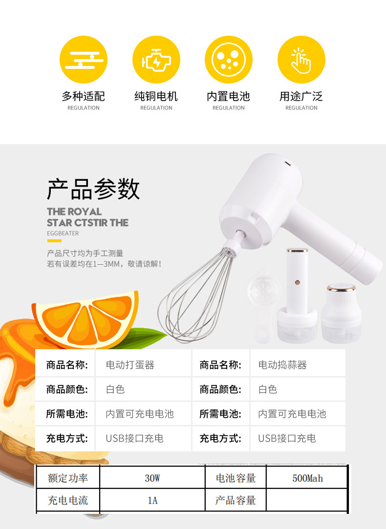 电动打蛋器不锈钢无线电动打蛋器打奶器厨房家用小型充电手持