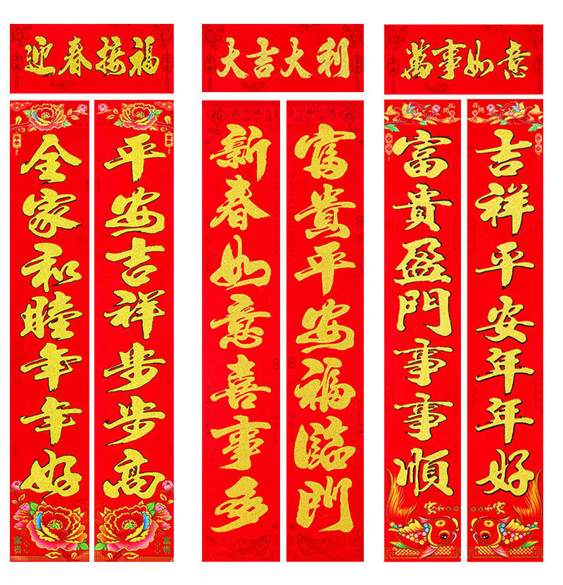 2025蛇年新款铜版纸烫金对联春节地摊年货植绒撒金粉春联厂家批发