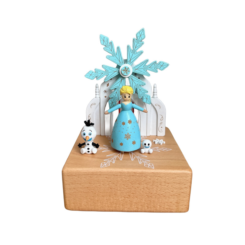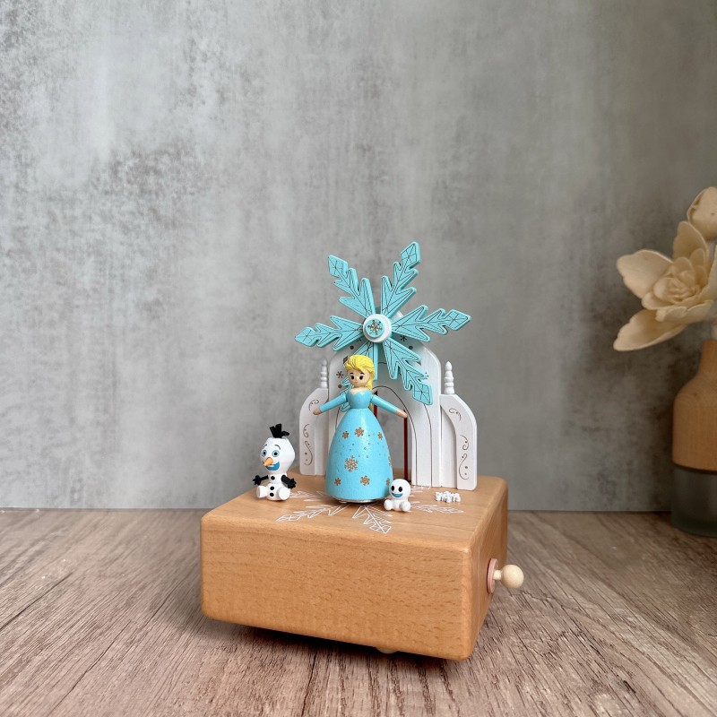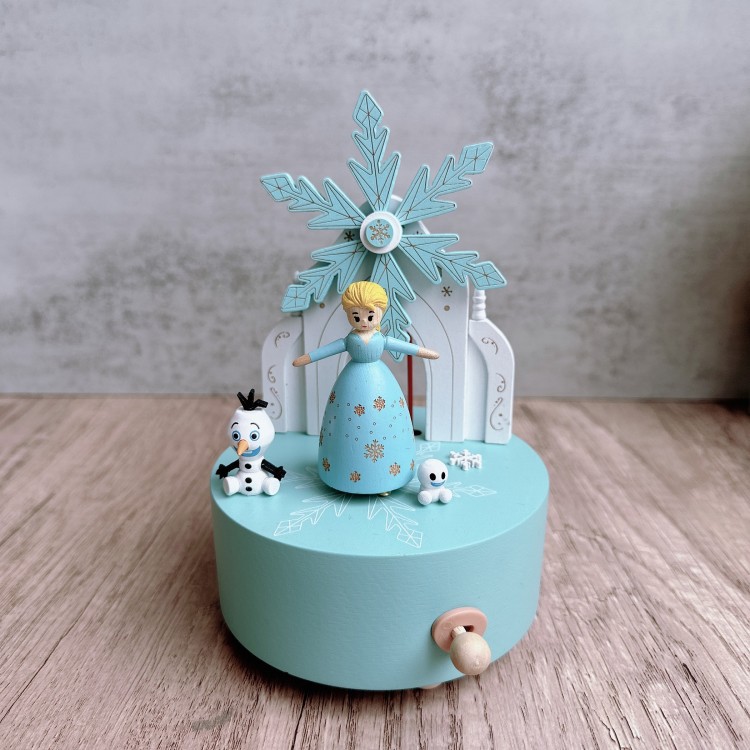 公主小雪人八音盒风车旋转音乐盒木质家居桌面摆件创意礼品工艺品