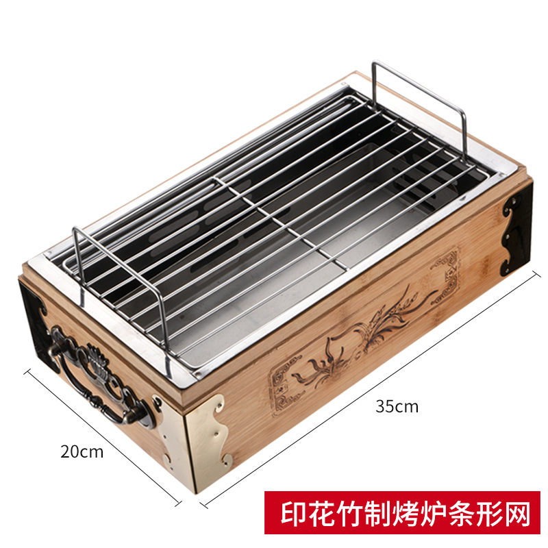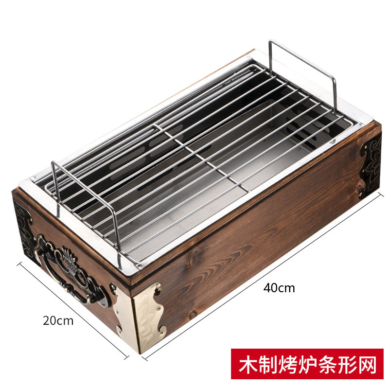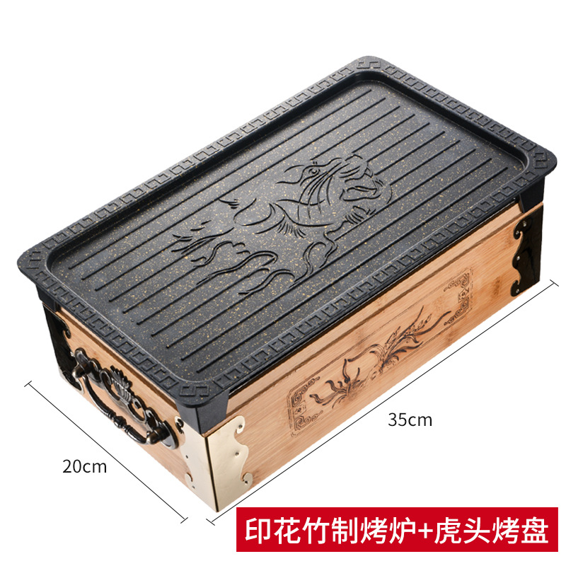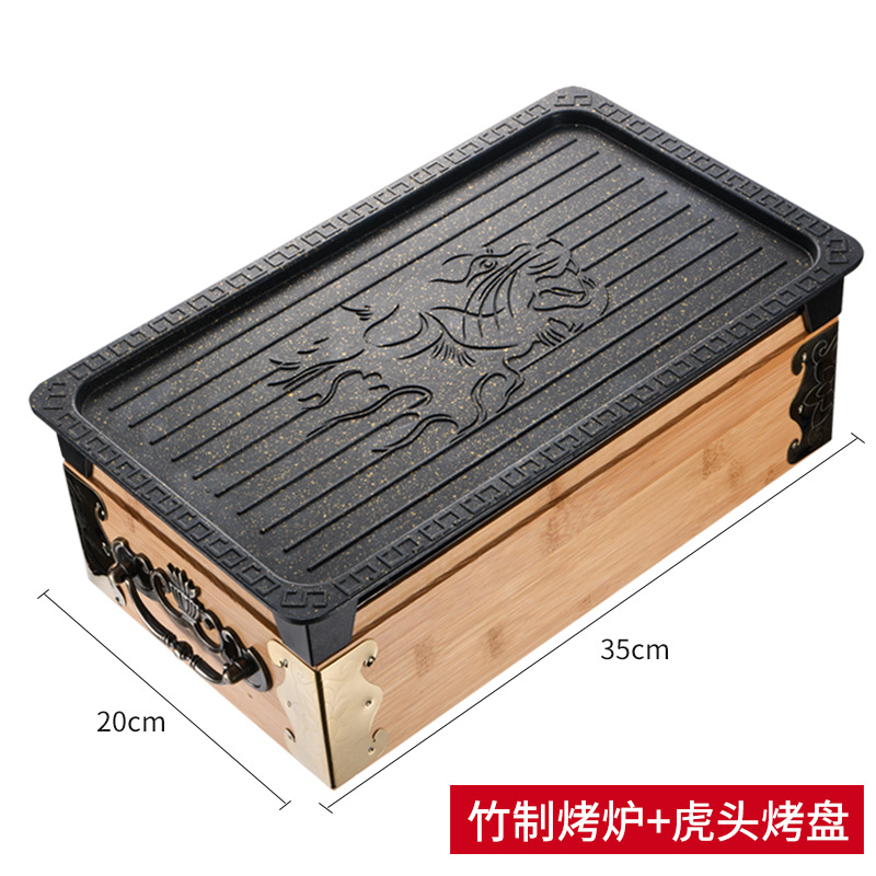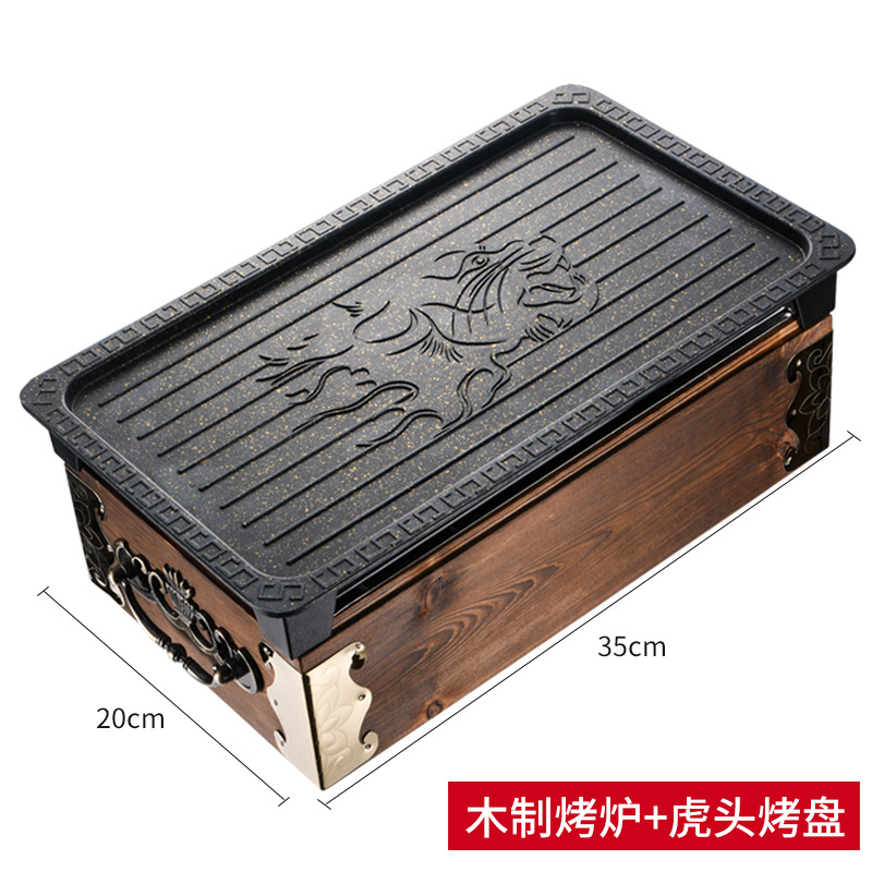 方形木盒烧烤炉烤串保温炉不粘烤肉盘商用木座韩式烤炉方形烤盘