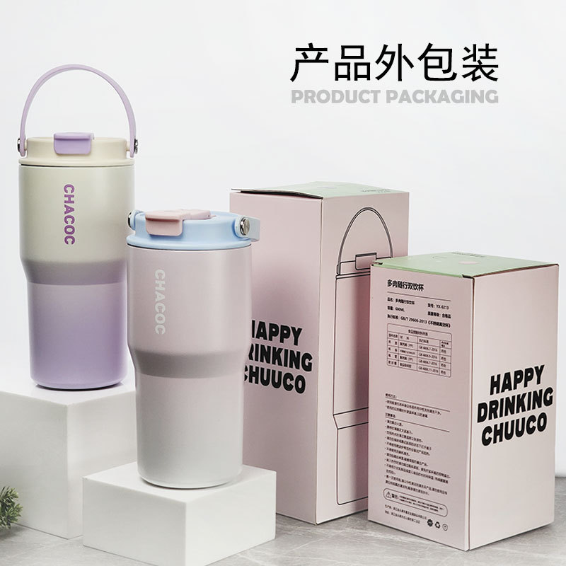 高颜值多肉云朵花茶杯不锈钢保温杯女生双饮料杯带吸管学生水杯子