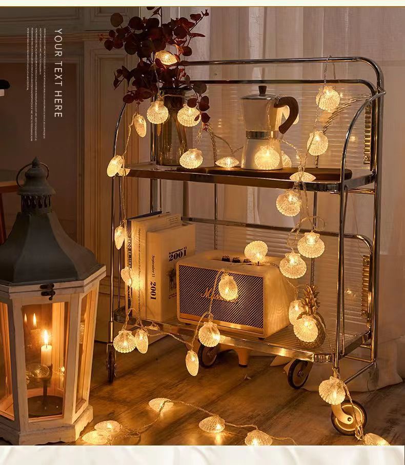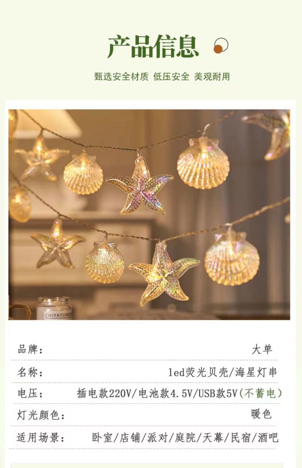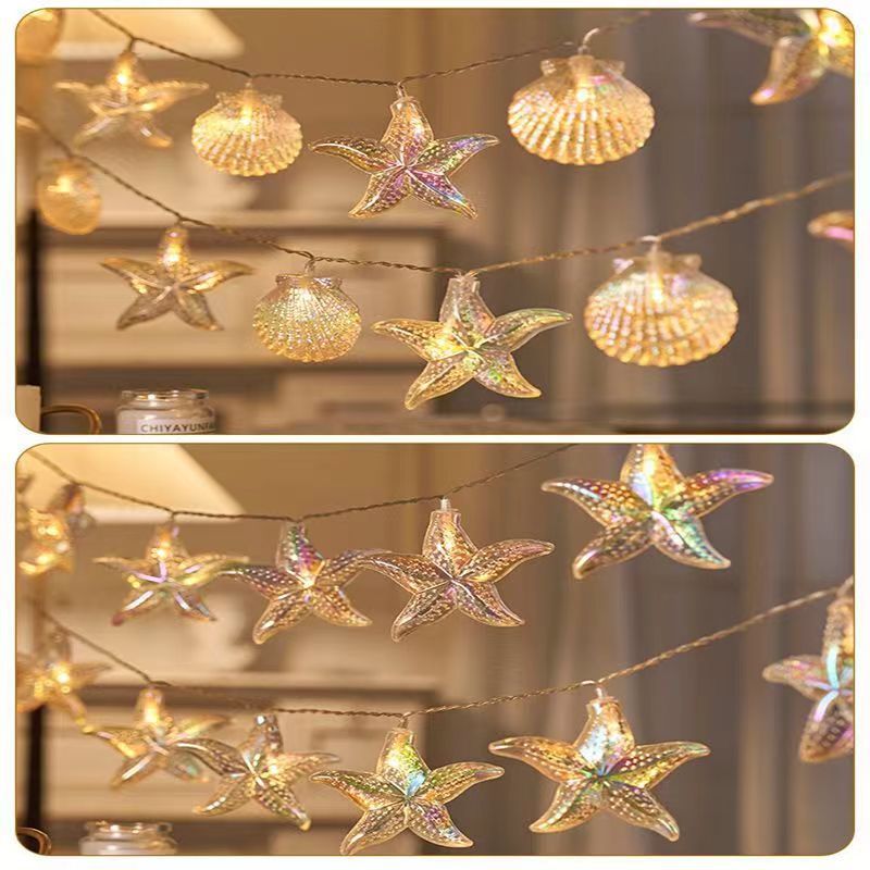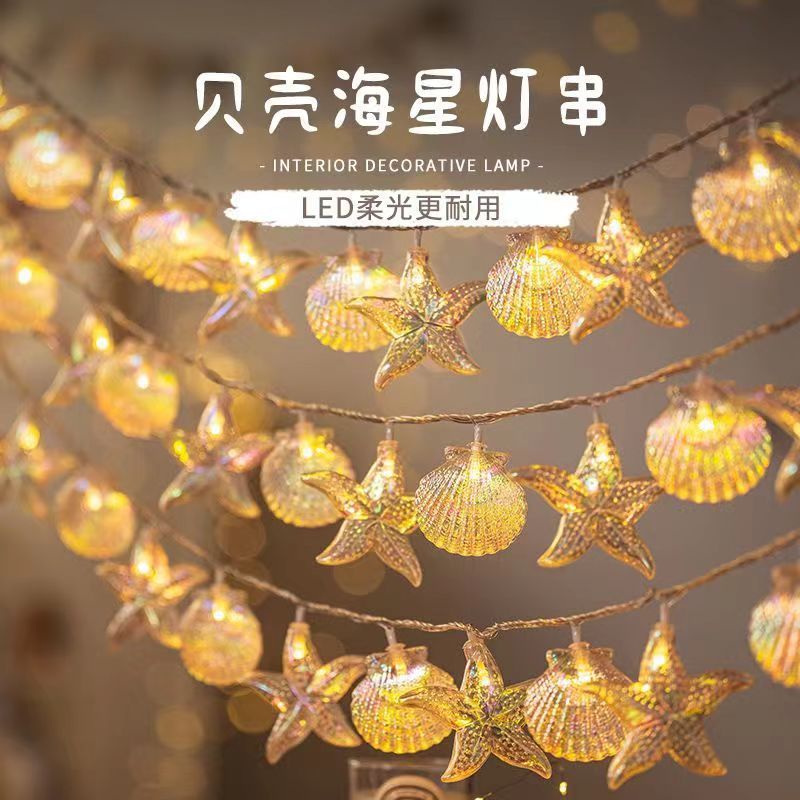 外贸专供led彩灯贝壳星星灯串满天星户外露营布置灯夜市摆摊