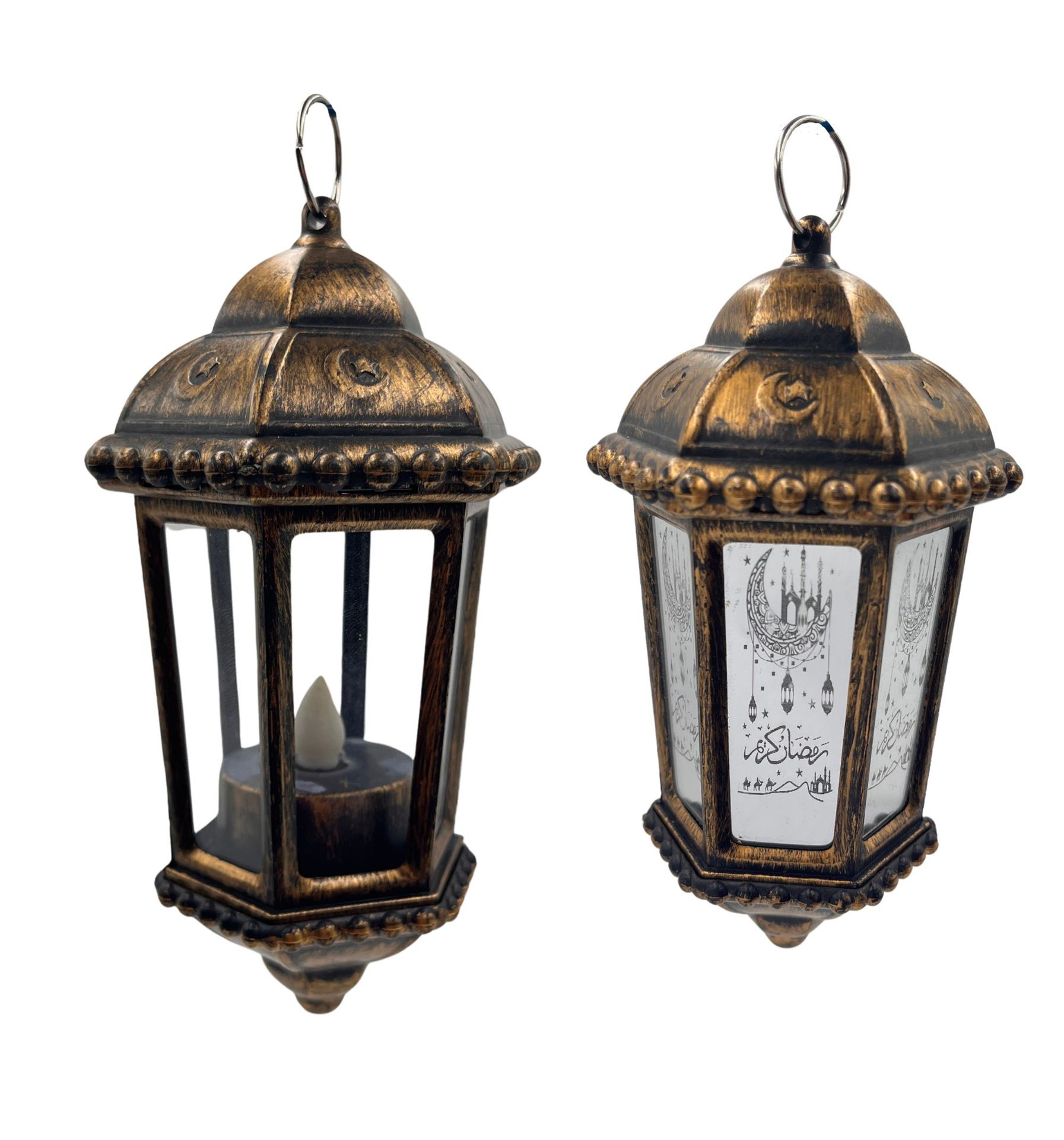 外贸专供热卖LED悬挂六角风灯复古塑料小油灯仿真电子蜡烛灯