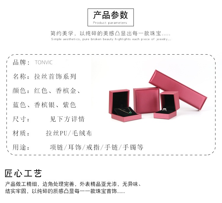 PU皮拉丝高档首饰盒戒指吊坠项链手镯盒珠宝盒首饰包装盒批发现货