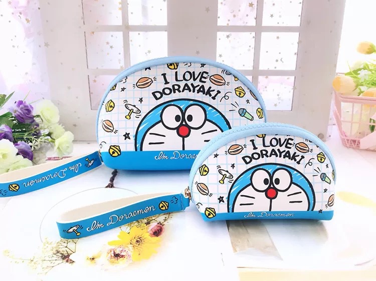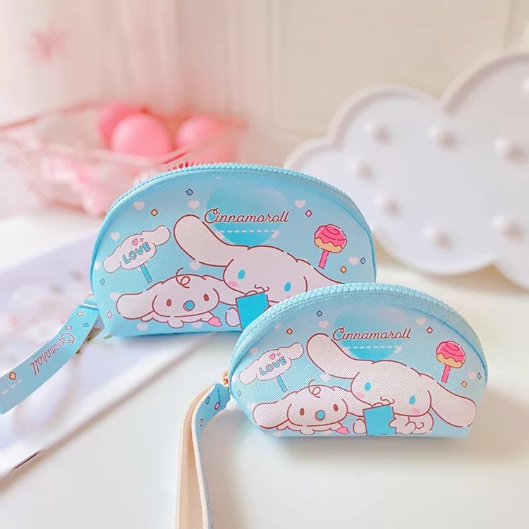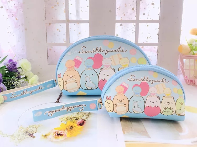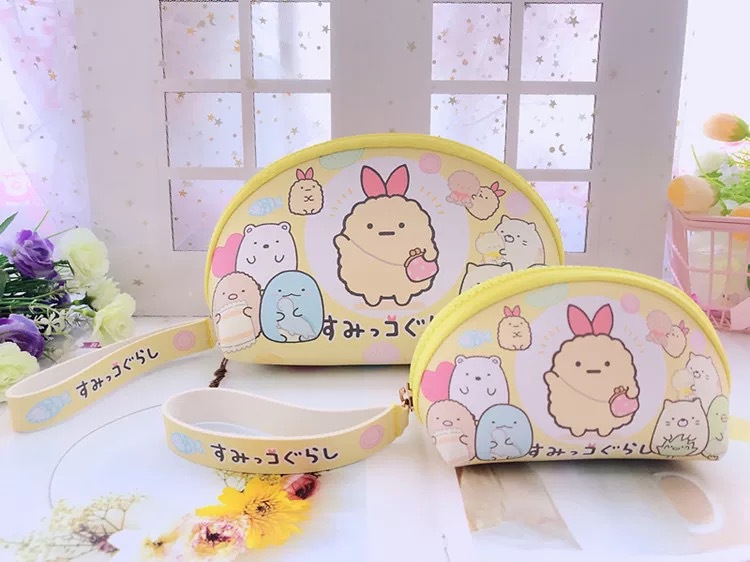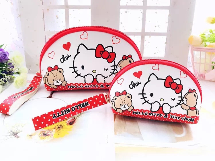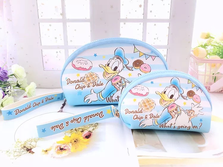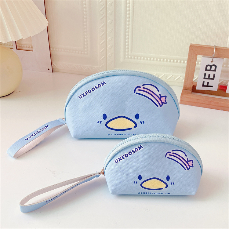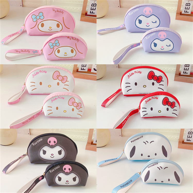 日系PU2件套化妆包+零钱包收纳袋 便携化妆品硬币钥匙手拎整理包