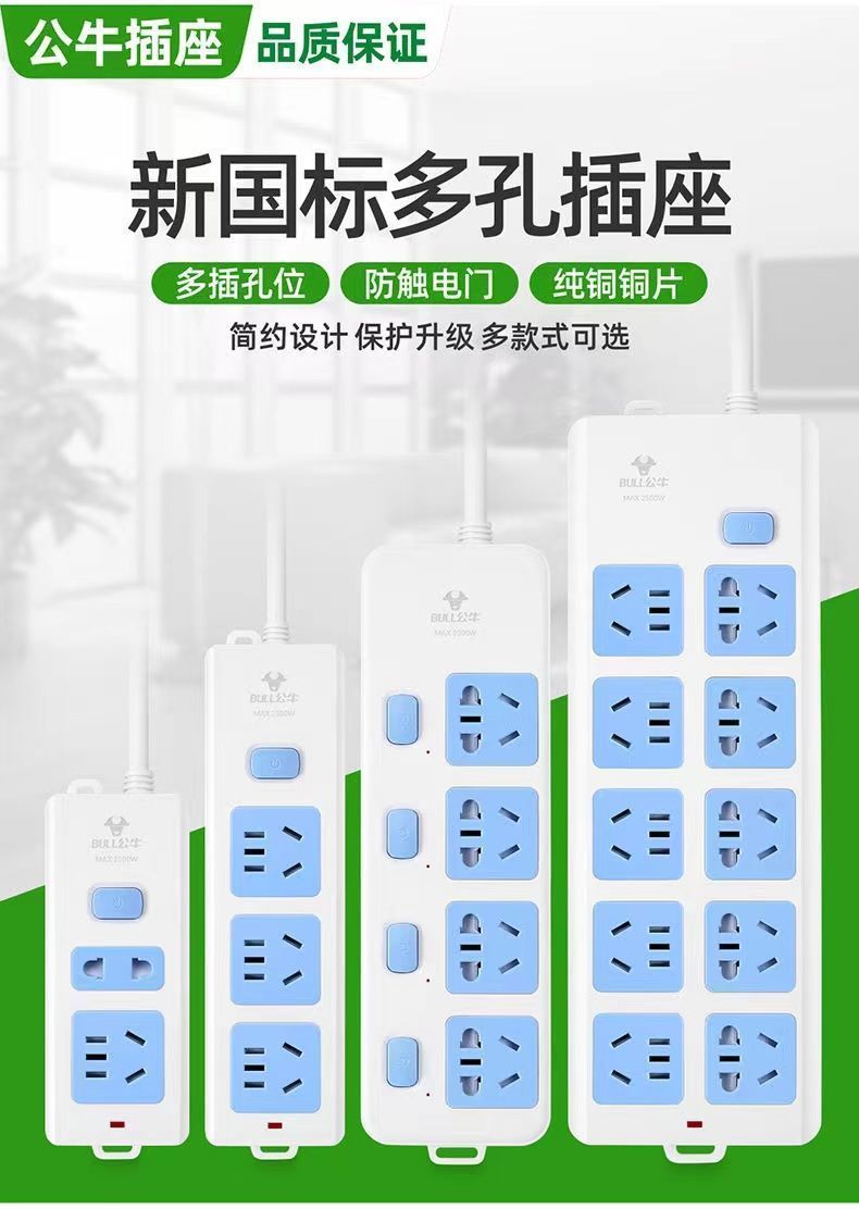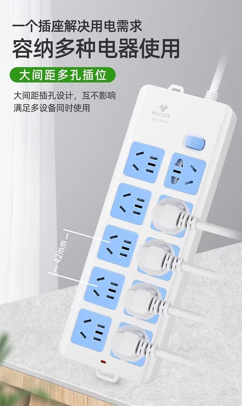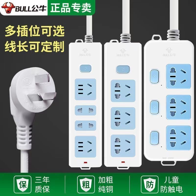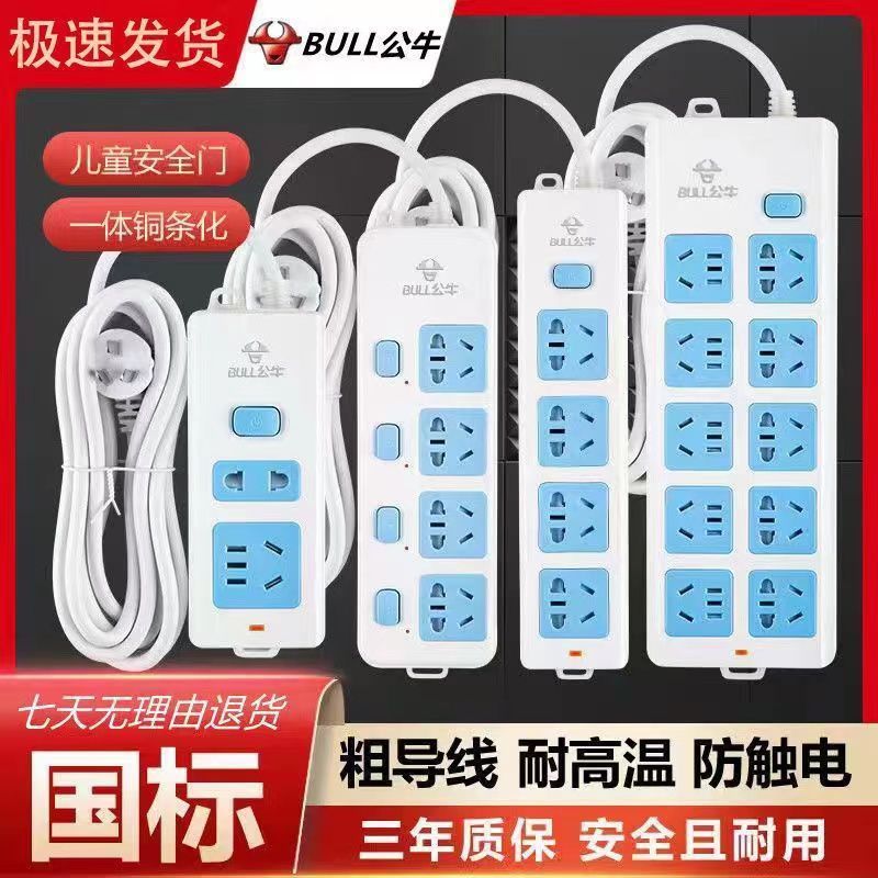 公牛家用插座长线插排带线接线板线板独立开关多孔插板宿舍排插