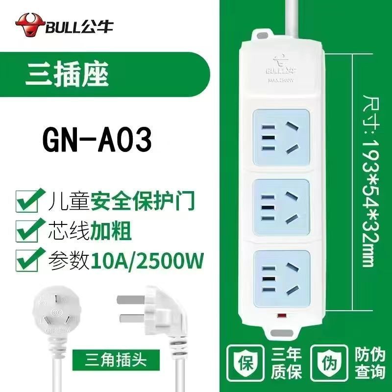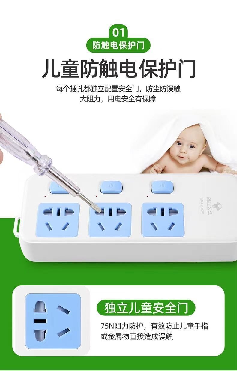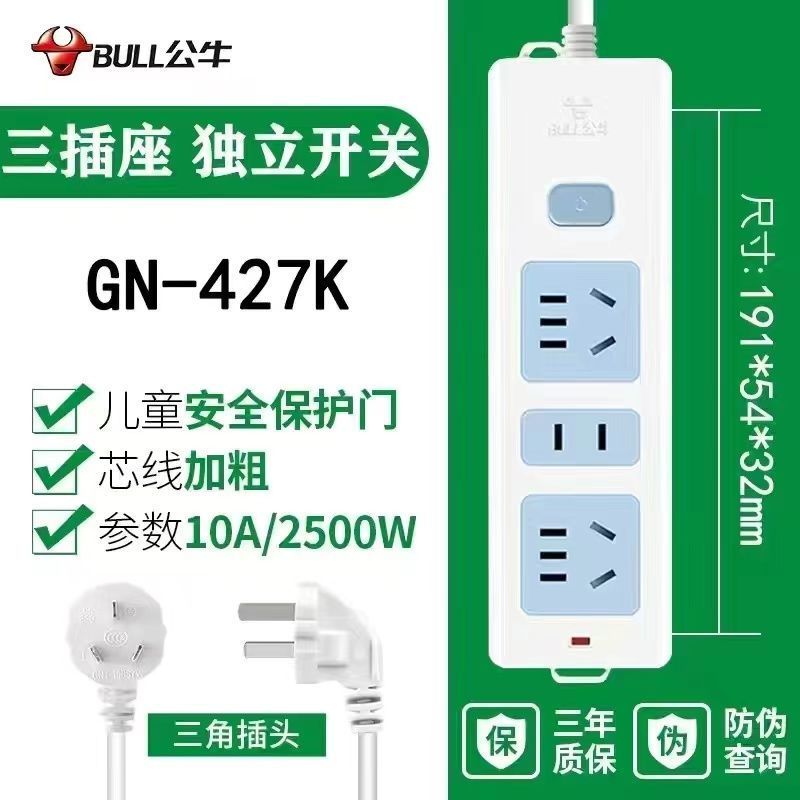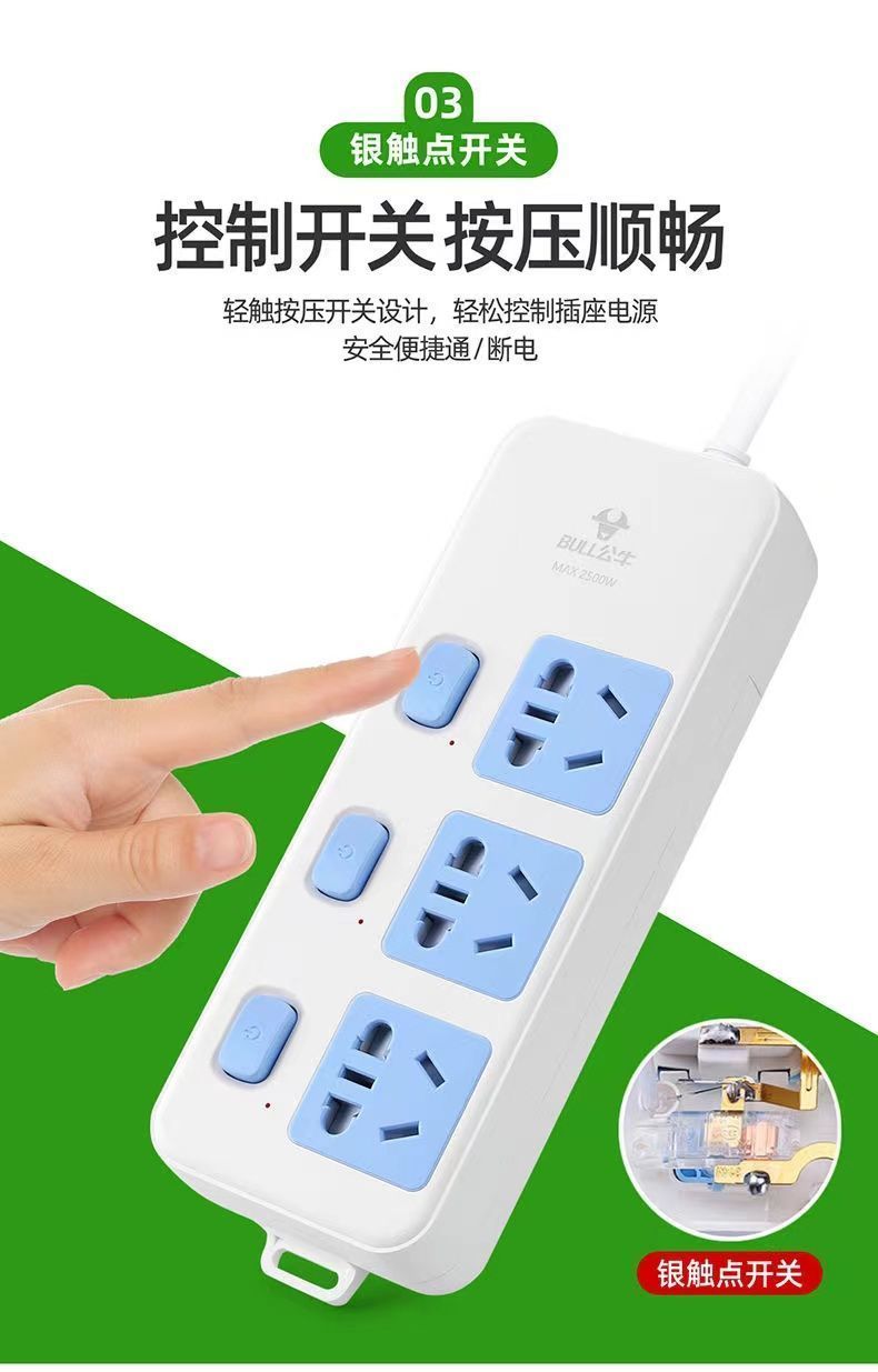 公牛家用插座长线插排带线接线板线板独立开关多孔插板宿舍排插