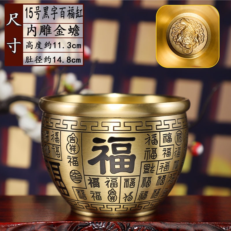 【厂家批发】黄铜百福缸桌面摆件招米财缸小铜器聚宝盆烟灰缸