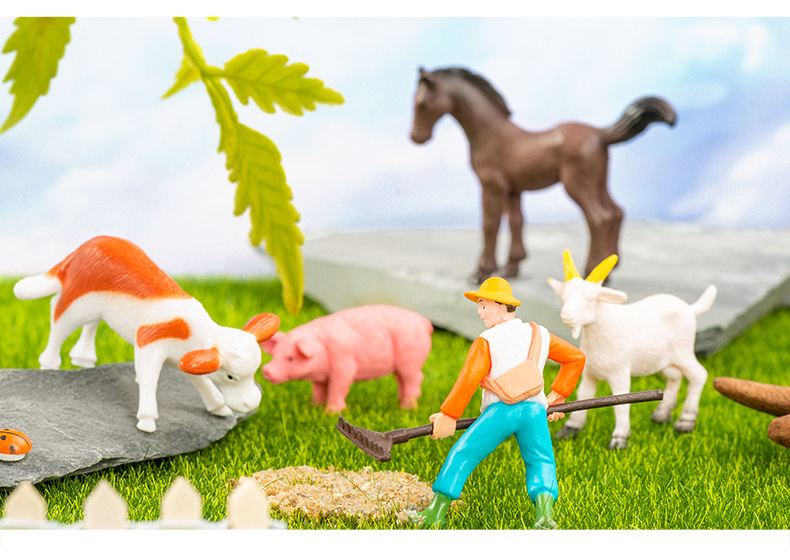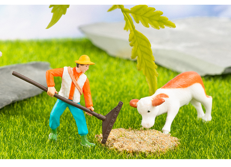 微景观创意农场小摆件可爱多肉小猪小羊农夫盆栽装饰树脂工艺品