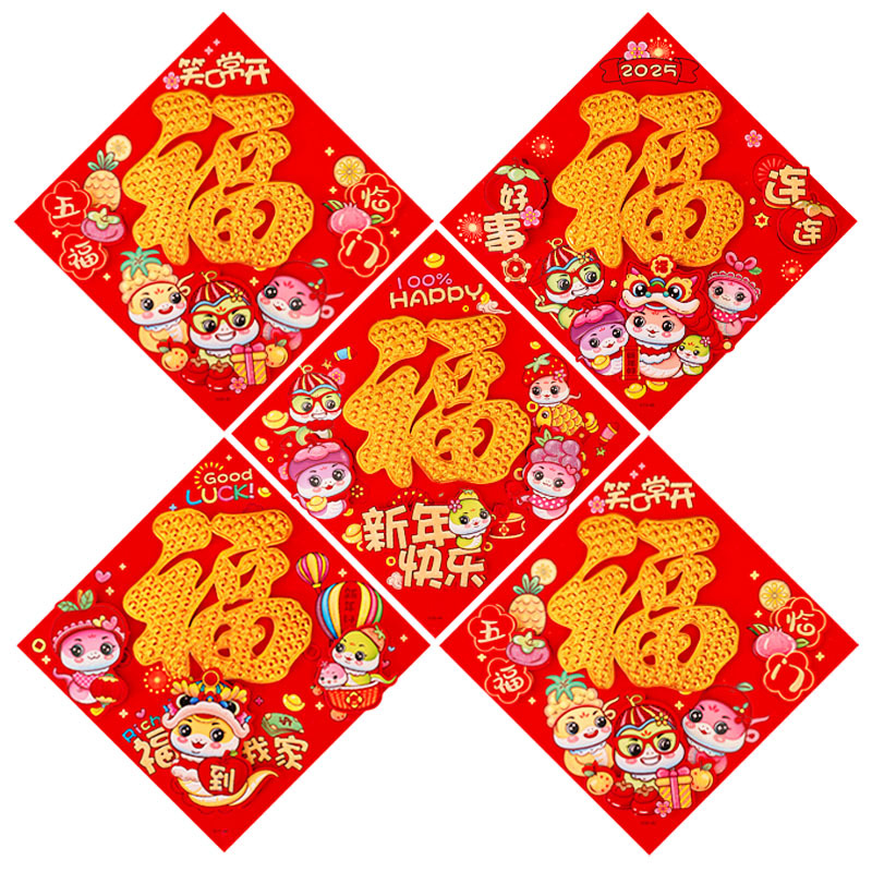 福字 2025蛇年立体植绒福字门贴 新年用品对联贴纸门芯厂家批发