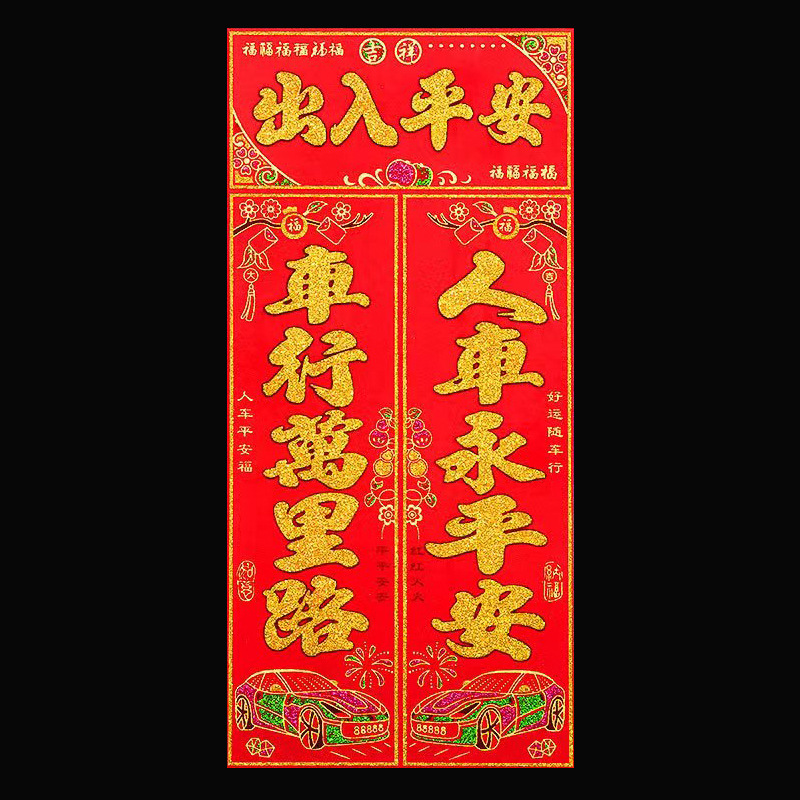 2025蛇年满烫金汽车对联 高档车贴 不干胶车对联汽车装饰品