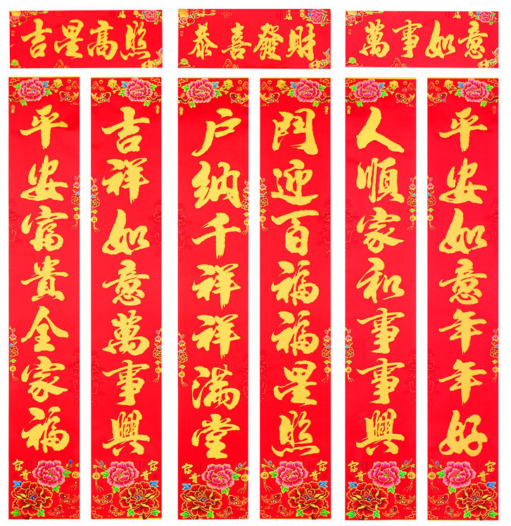 烫金对联=独立包装(OPP袋装)+2个竖联+一个横批