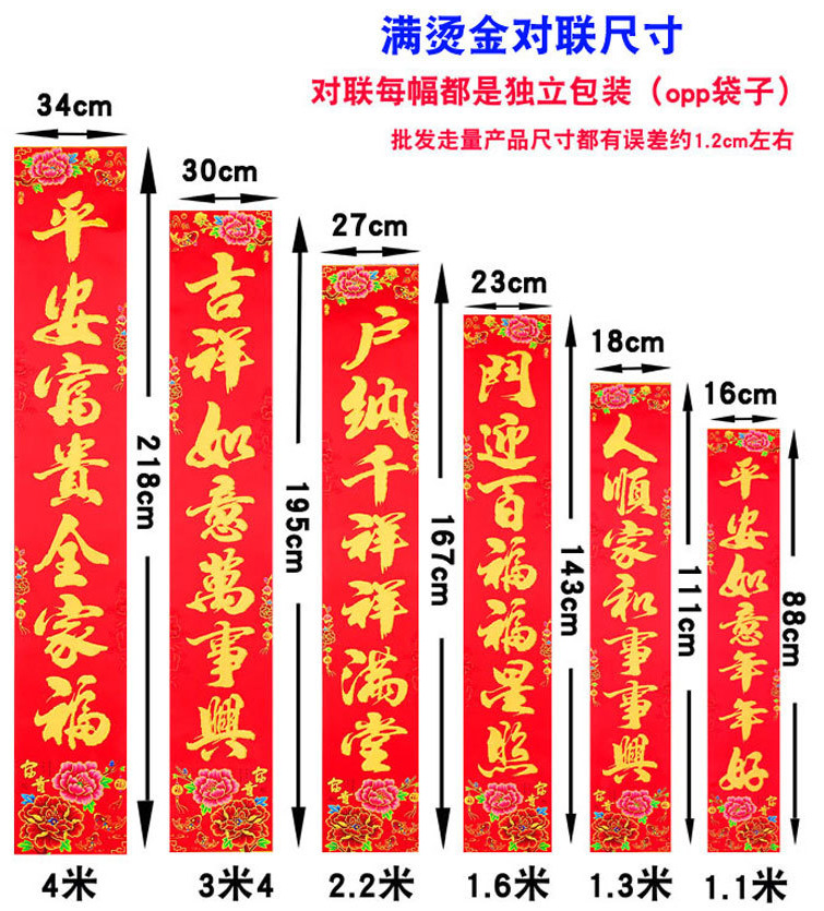 注意:亲 春联多少米是市场称谓,竖联实际尺寸(不包含横批),因款式版面不同尺寸会有所差异,