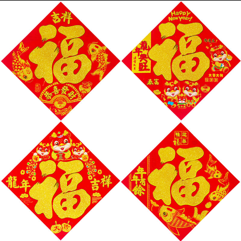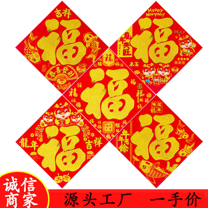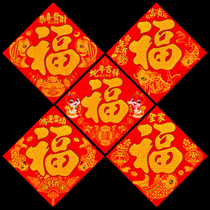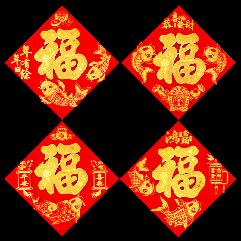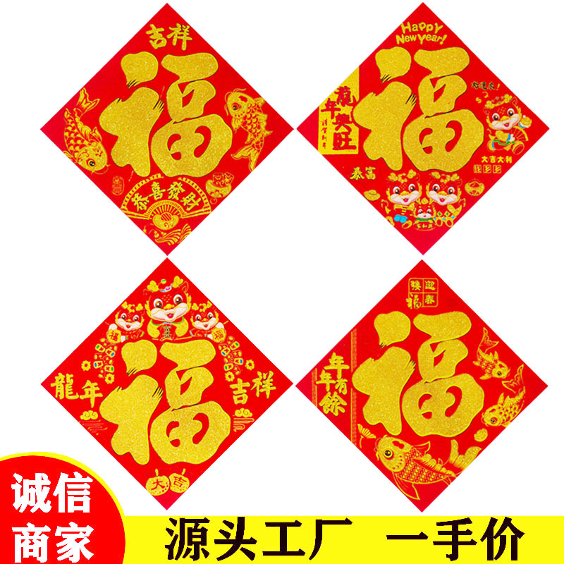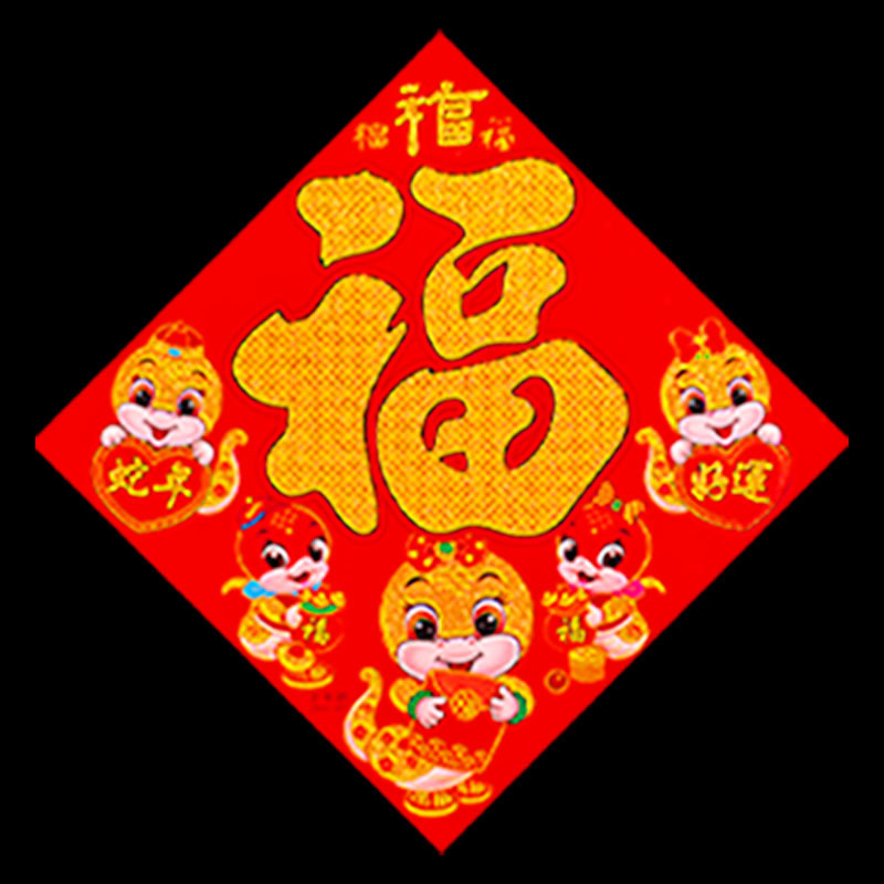 2025蛇年新款高档福字门贴植绒平面立体生肖福新年春节批发家用