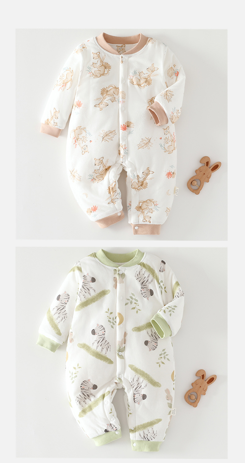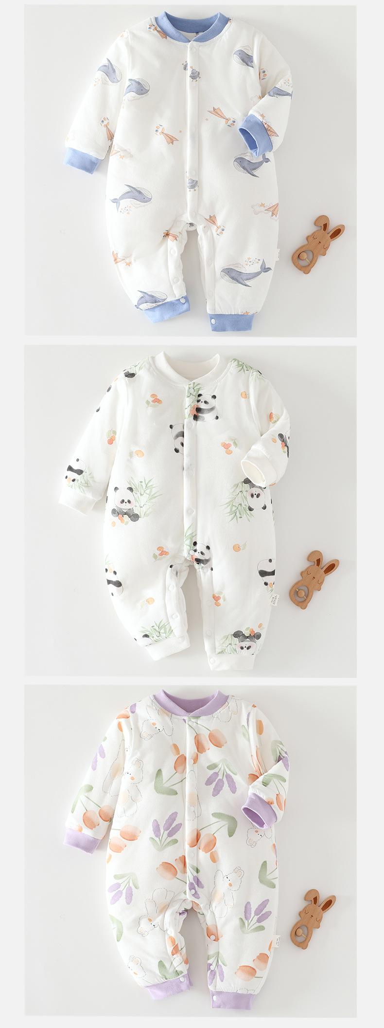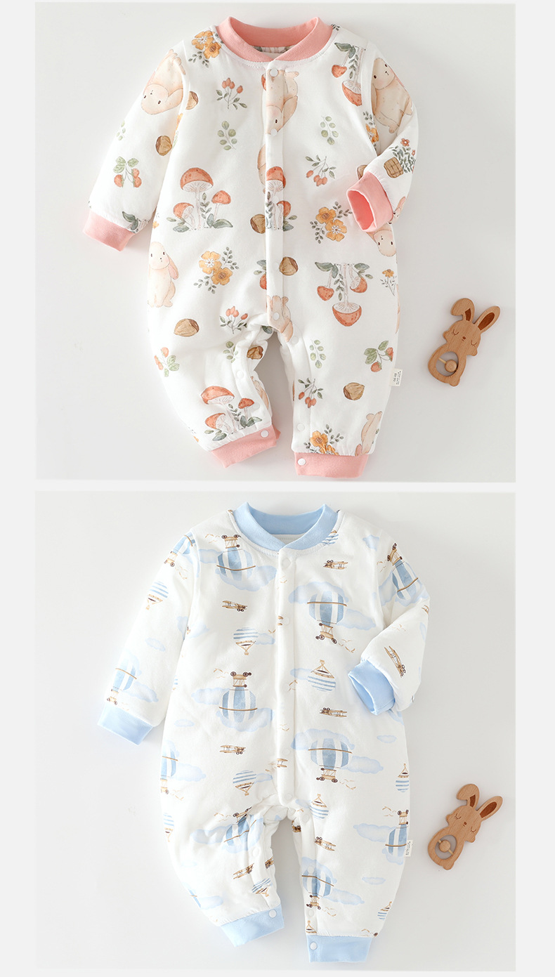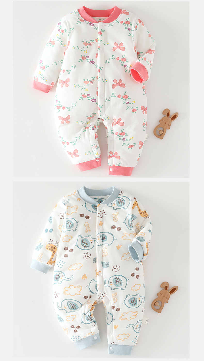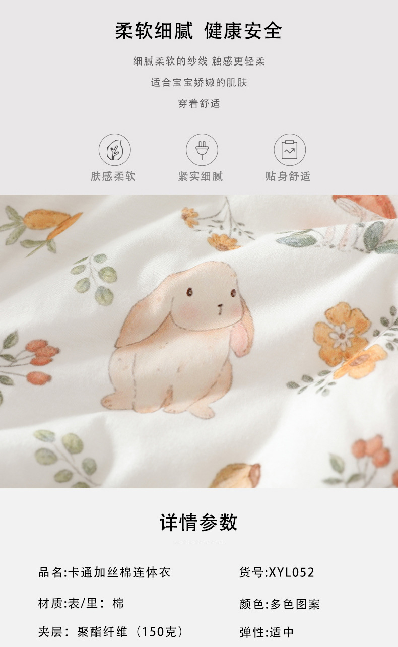 秋冬新款婴幼儿保暖连体衣150g薄棉卡通长袖闭裆哈衣男女宝宝爬服